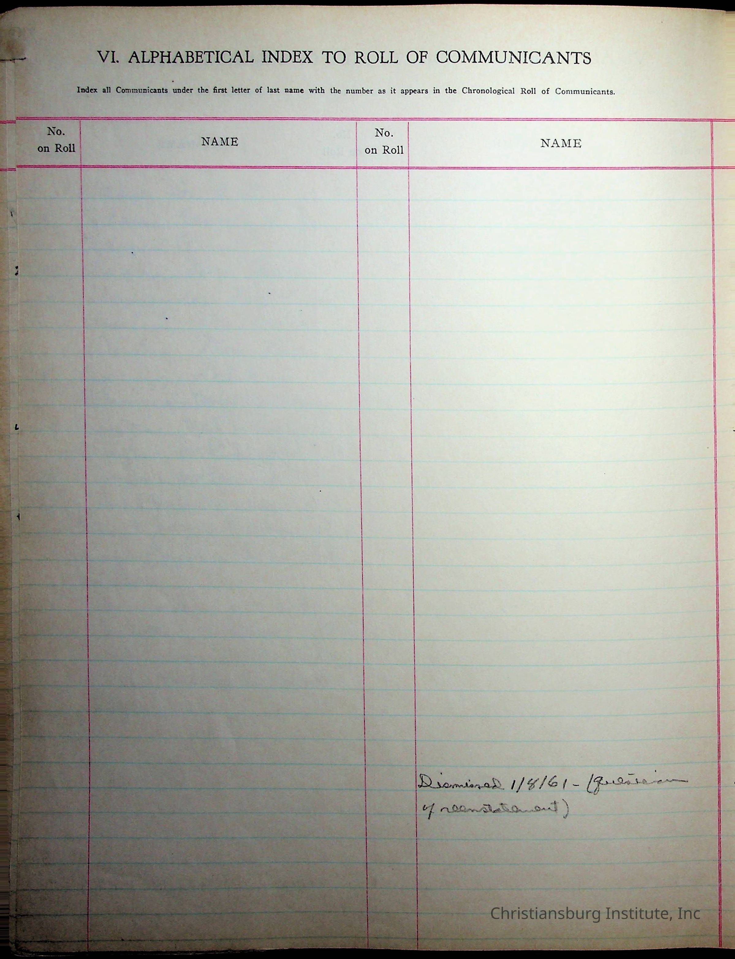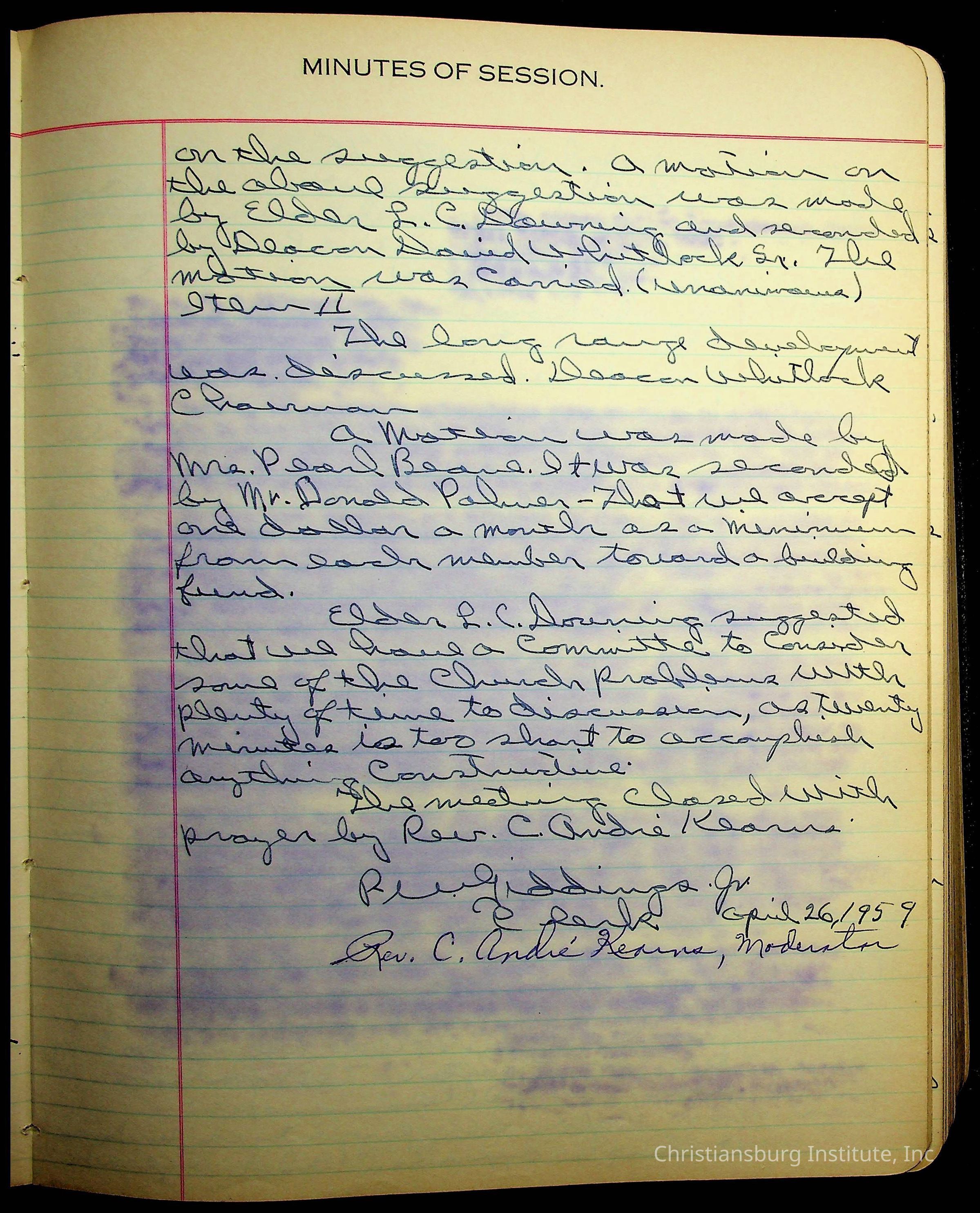 Copyright has been assigned to Christiansburg Institute Museum & Archives by Fifth Avenue Presbyterian Church. For permission to publish materials created by the donor, contact CIMA@christiansburginstitute.com. Materials not created by Fifth Avenue Presbyterian Church may still be under copyright.