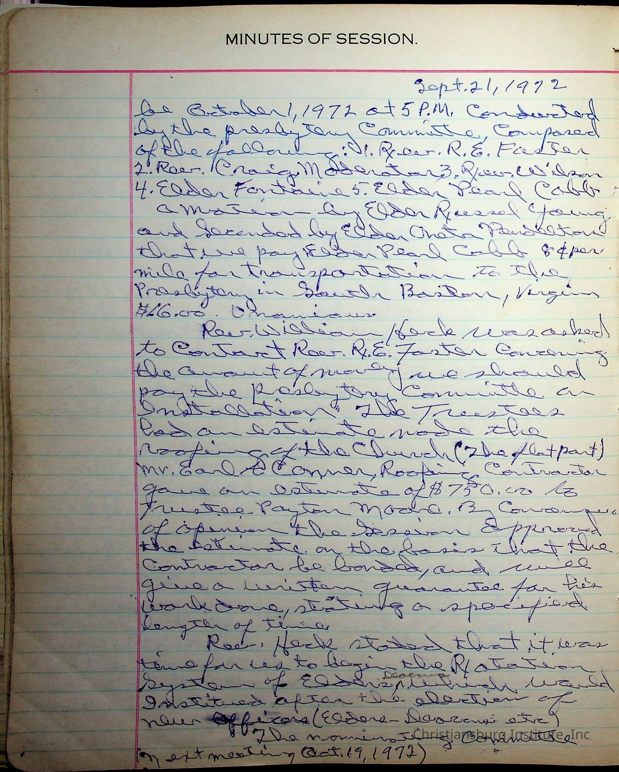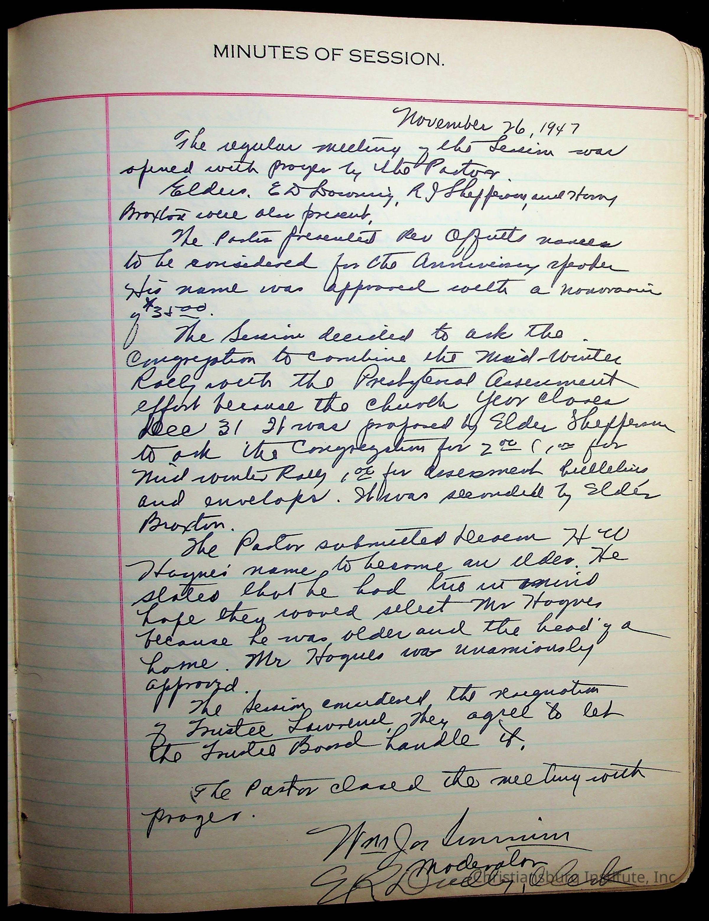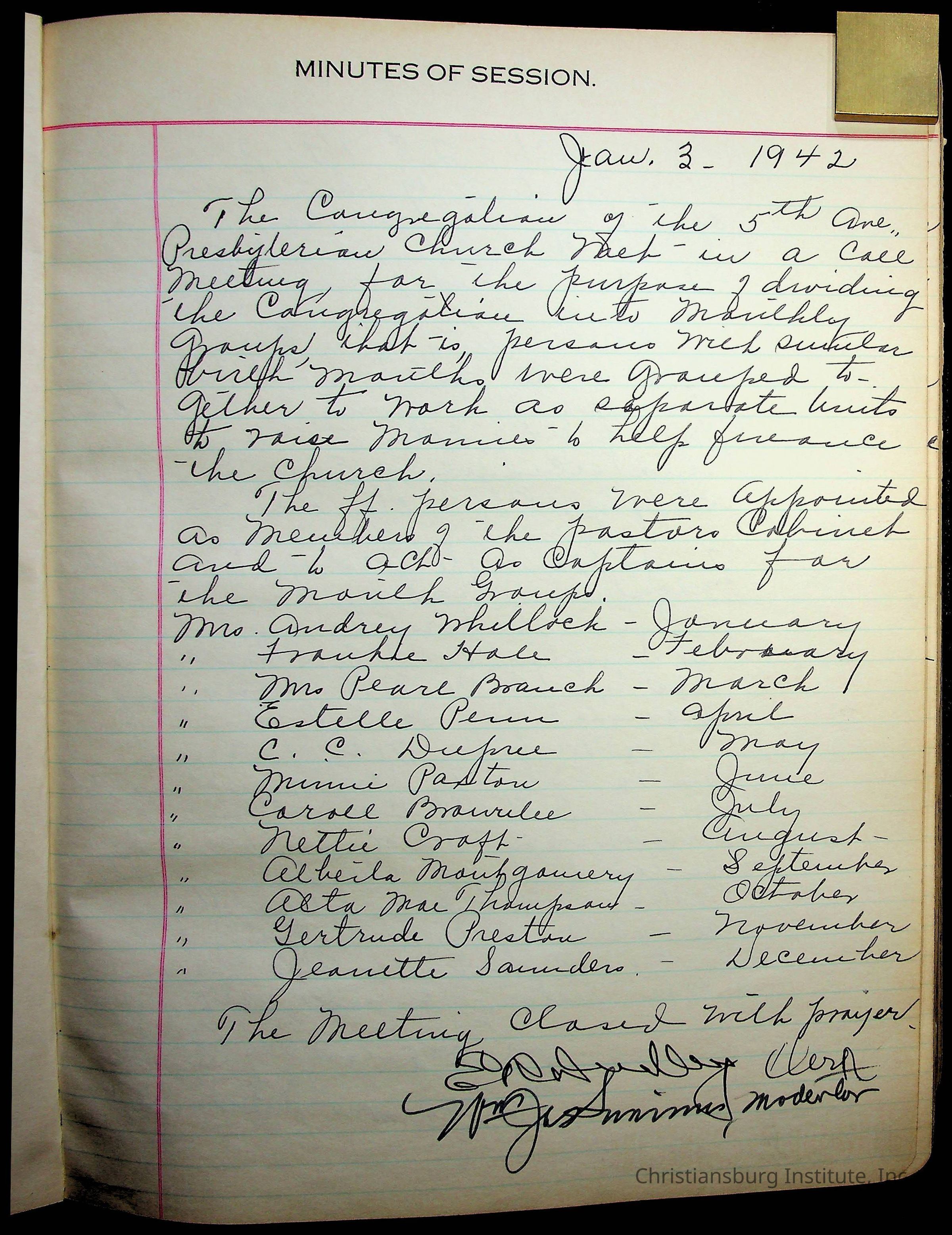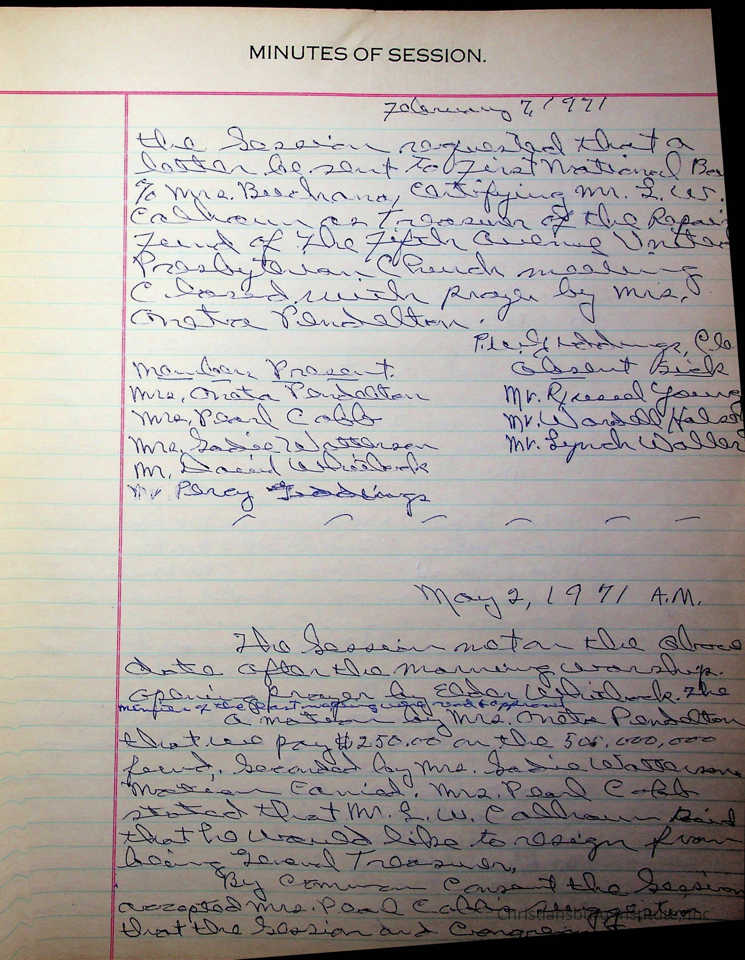 The session minutes for the Fifth Avenue Presbyterian Church from the years 1942-1972.Collection