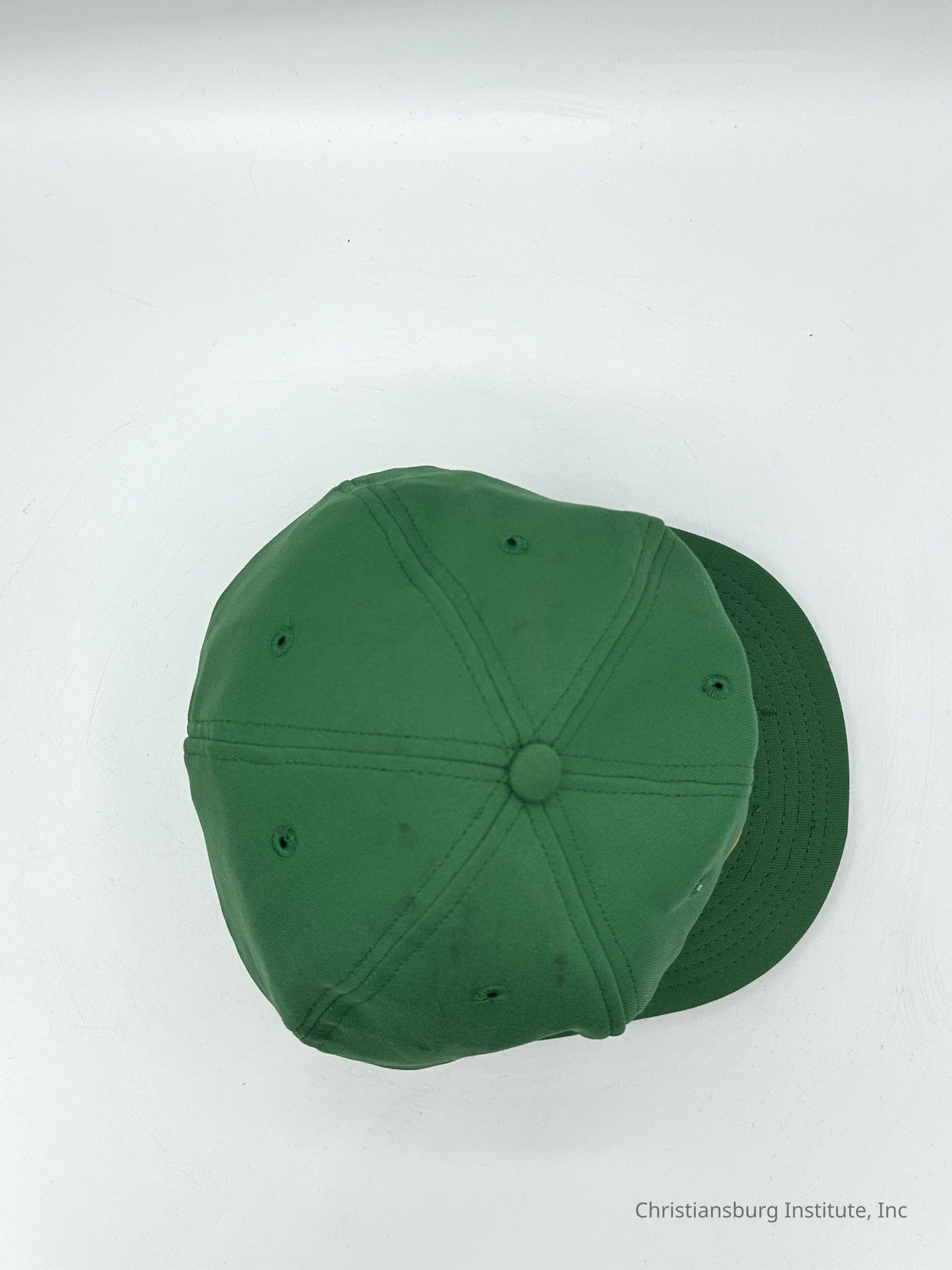 Two green baseball caps made by Stevens Caps with the letters CI on the front of the cap, undated.Collection