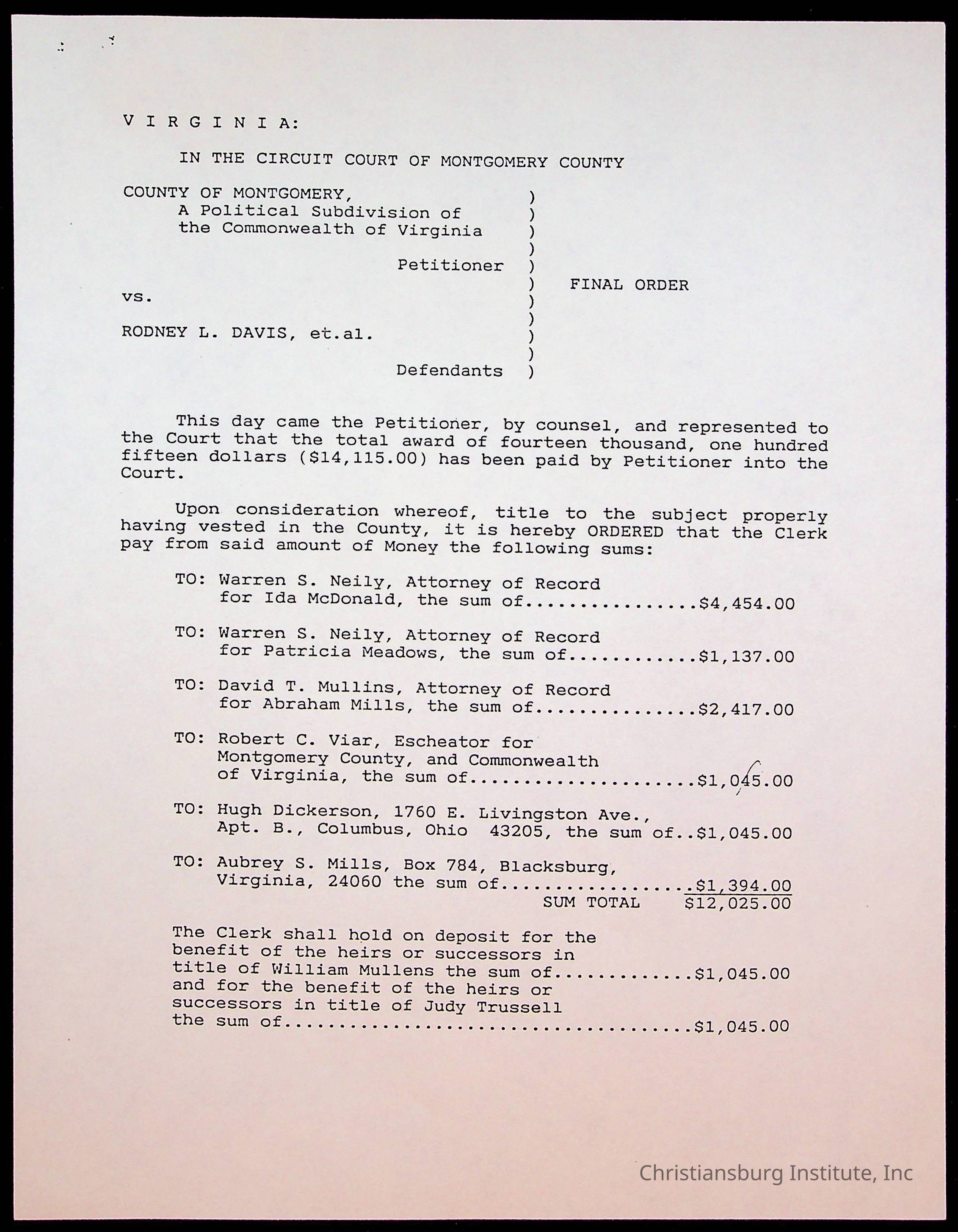 Montgomery County, Davis, Rodney L., Davis, Ann C., Fine, Elizabeth C.