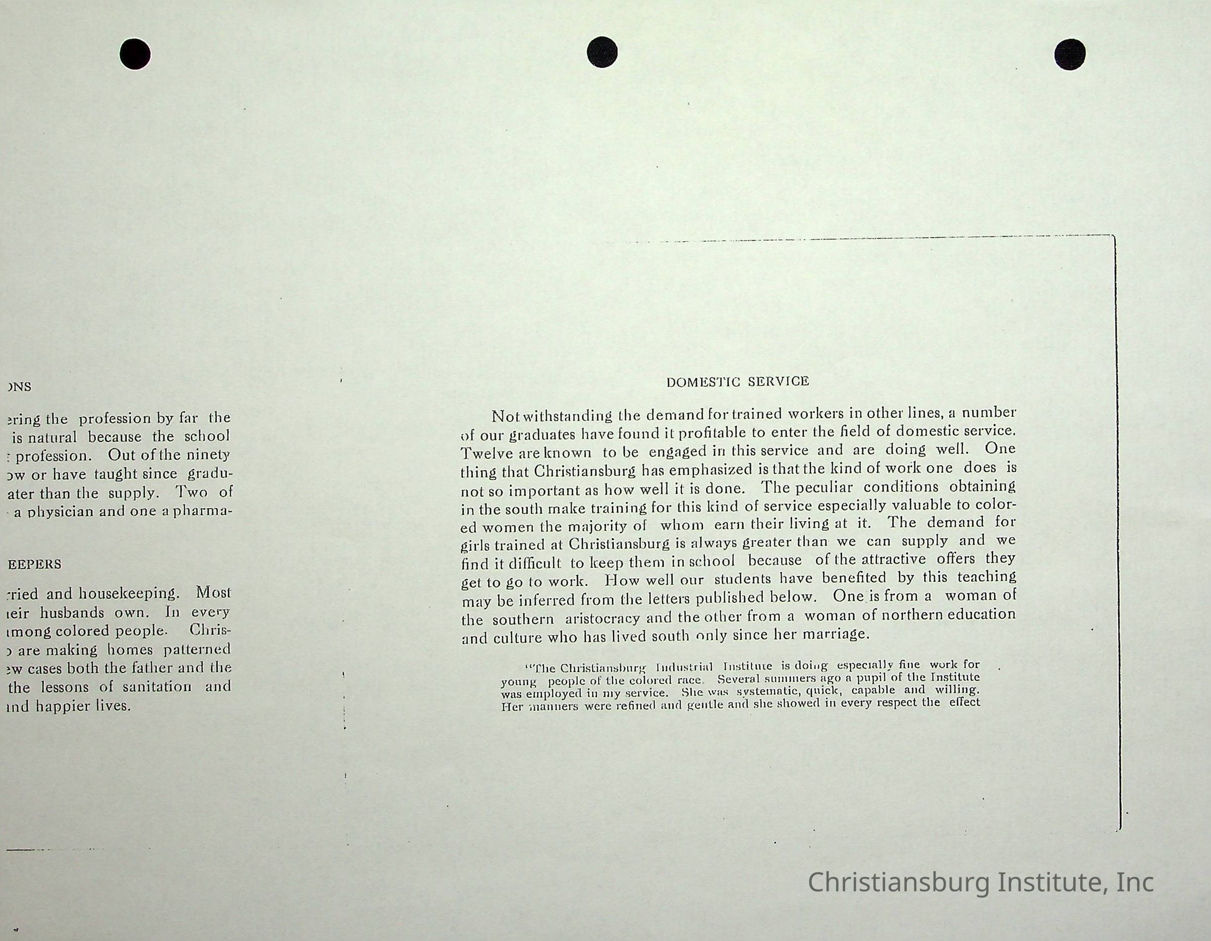 Copyright has been assigned to Christiansburg Institute Museum & Archives. For permission to publish materials created by the donor, contact CIMA@christiansburginstitute.com. Materials not created by Christiansburg Institute Museum and Archives may still be under copyright.
