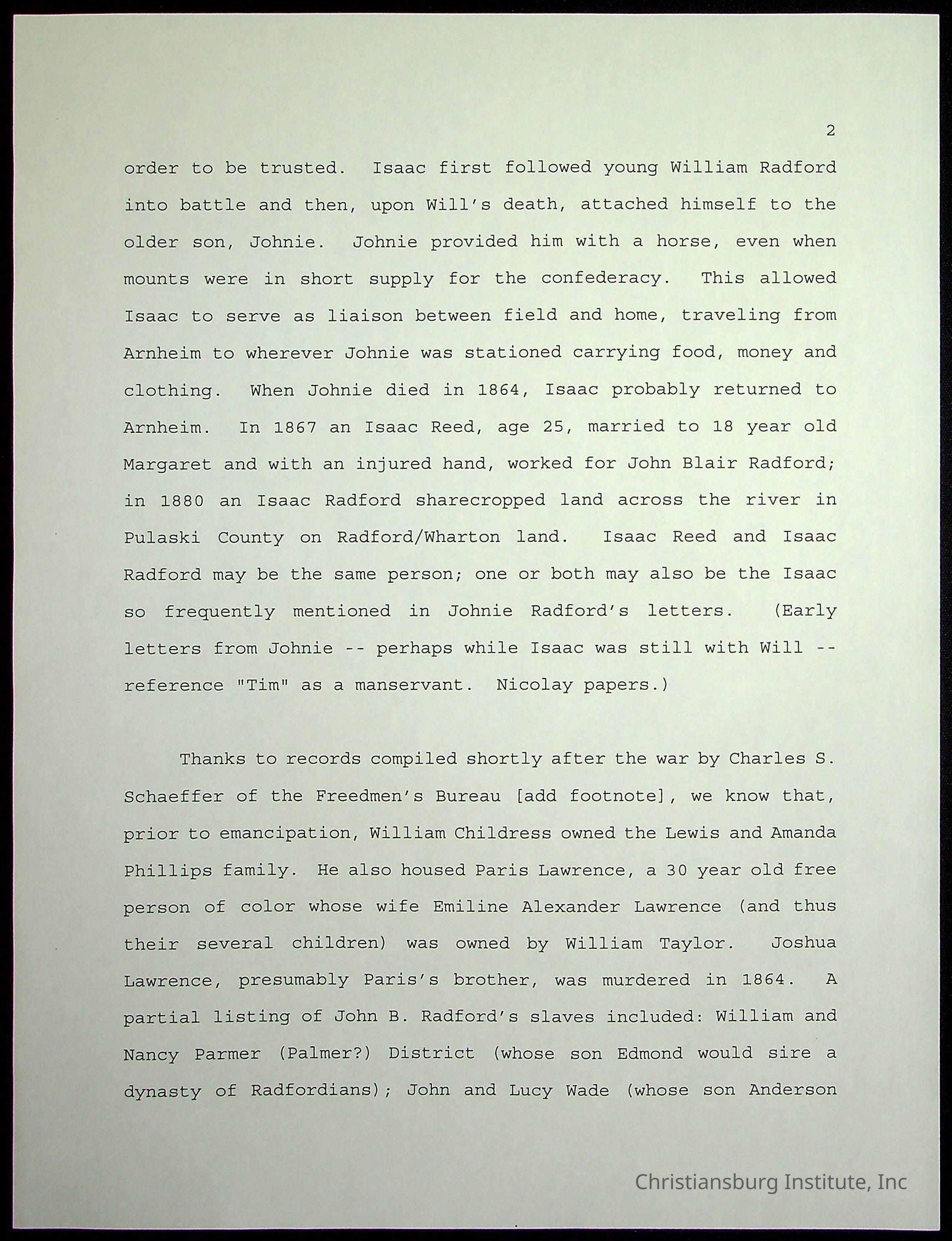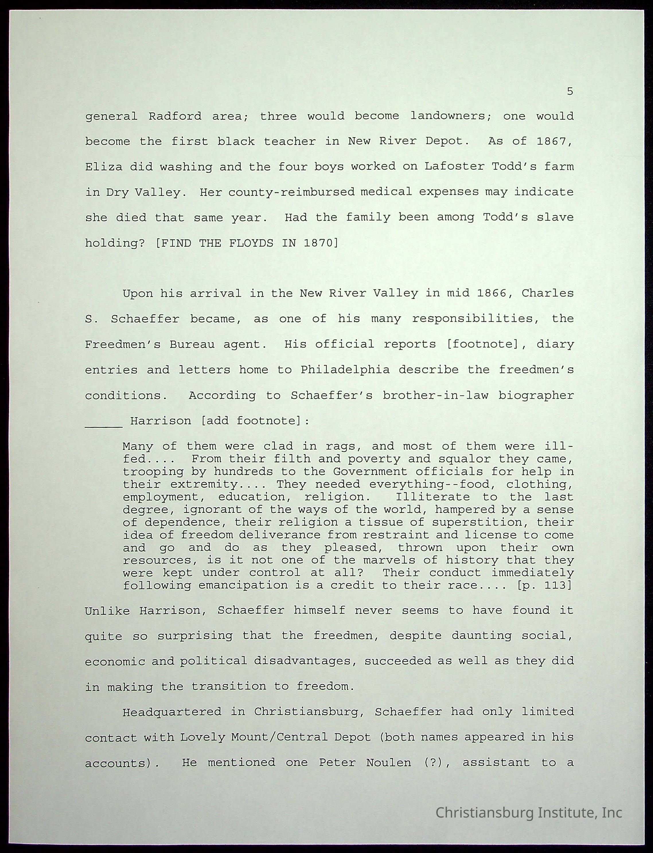 Farm Land, Boom Town, Village: A History of Belspring, Virginia, 1750-1940, The Reports of Charles S. Schaeffer from the Virginia counties of Montgomery and Pulaski, with additional information on the counties of Floyd, Giles, Craig, Wythe, and Roanoke., Ingles Ferry Ledgers (1840s-1880s), These people lived in a pleasant valley, Making their mark: Black Families of New River Depot, 1870-1940., Whartons’ Town New River Depot, 1870-1940., Radford’s Early Black Residents, 1880-1925