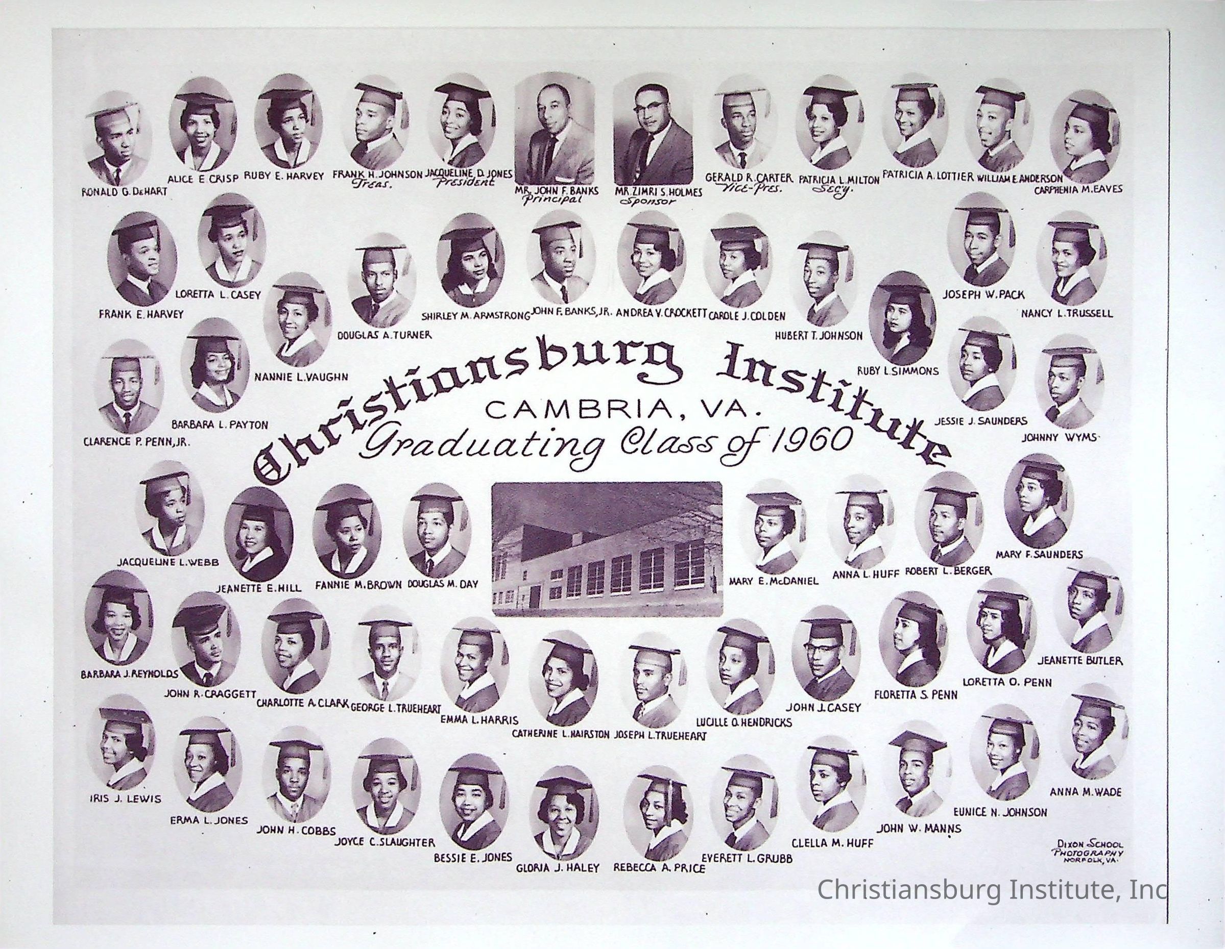 A photograph of the Christiansburg Institute graduating class of 1960.Collection