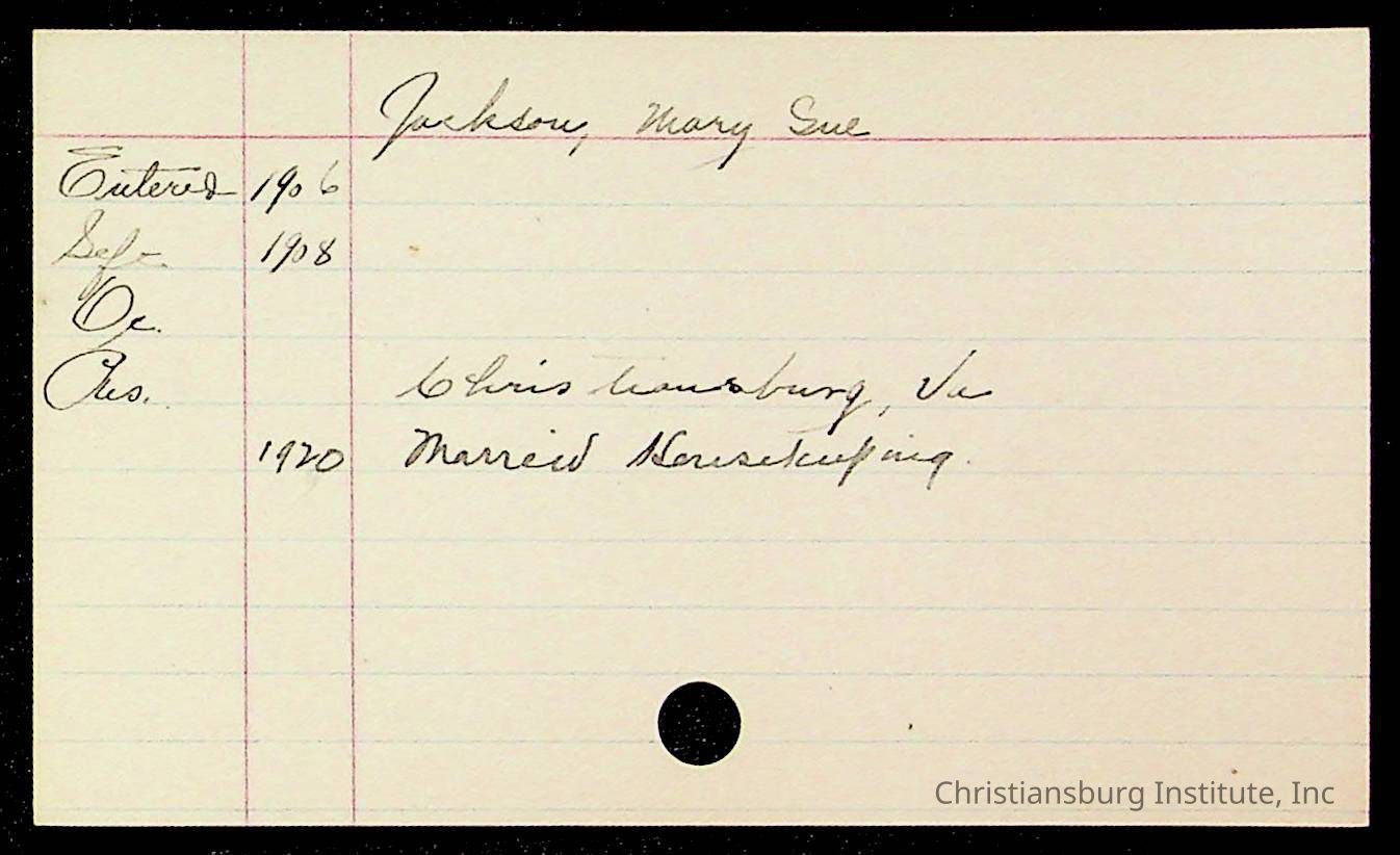 Copyright has been assigned to Christiansburg Institute Museum & Archives by Montgomery County Public Schools. For permission to publish materials created by the donor, contact CIMA@christiansburginstitute.com. Materials not created by Christiansburg Industrial Institute may still be under copyright.