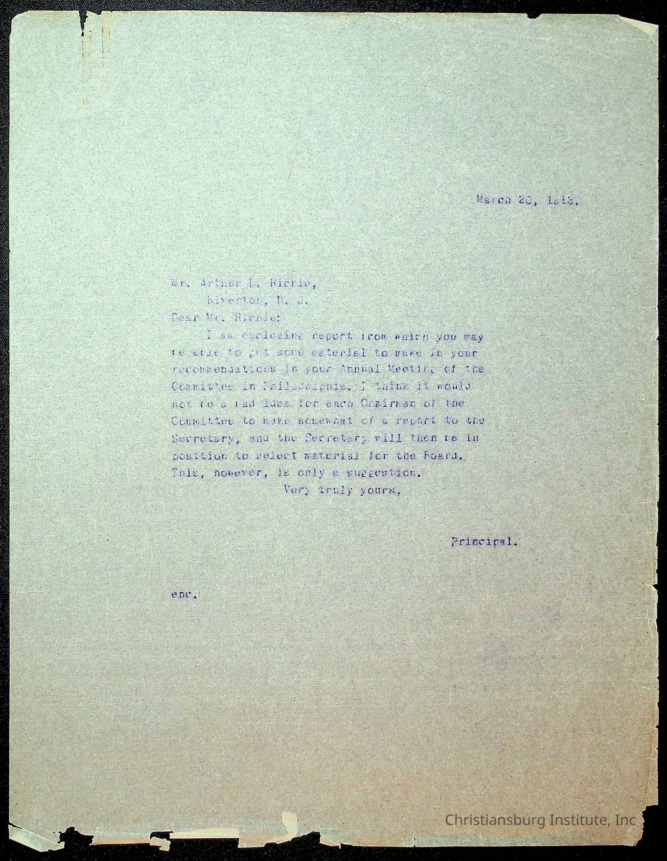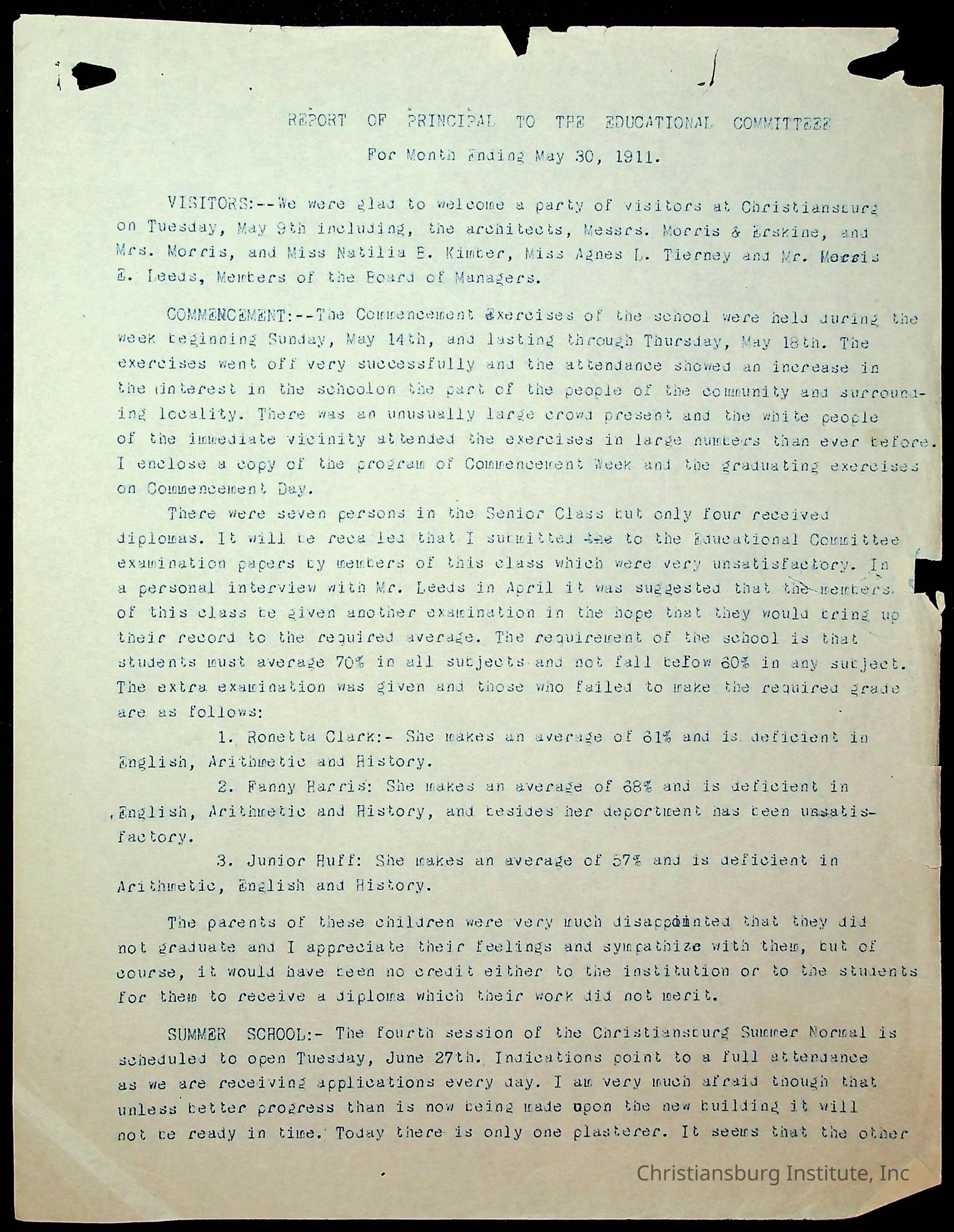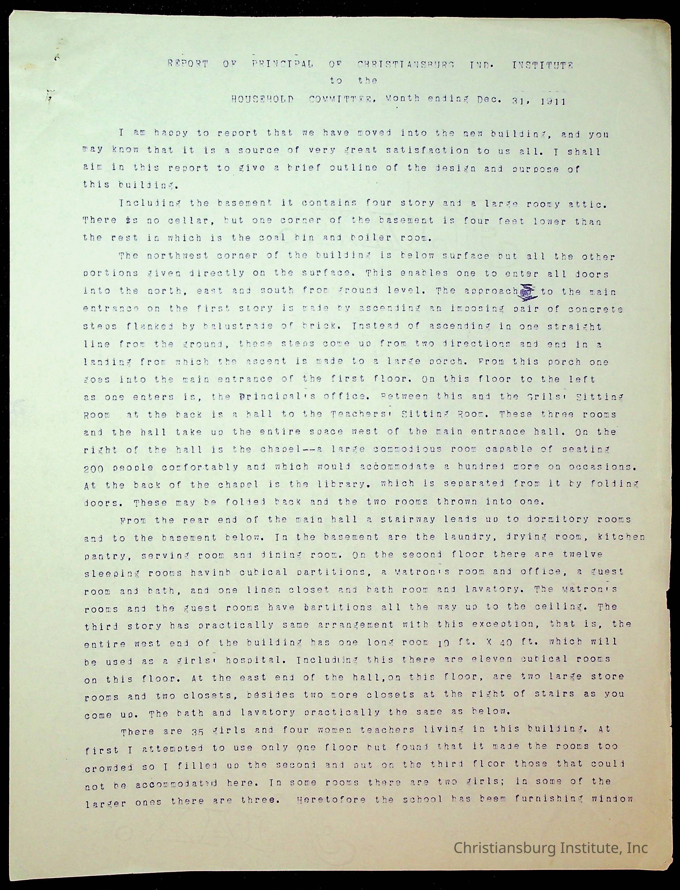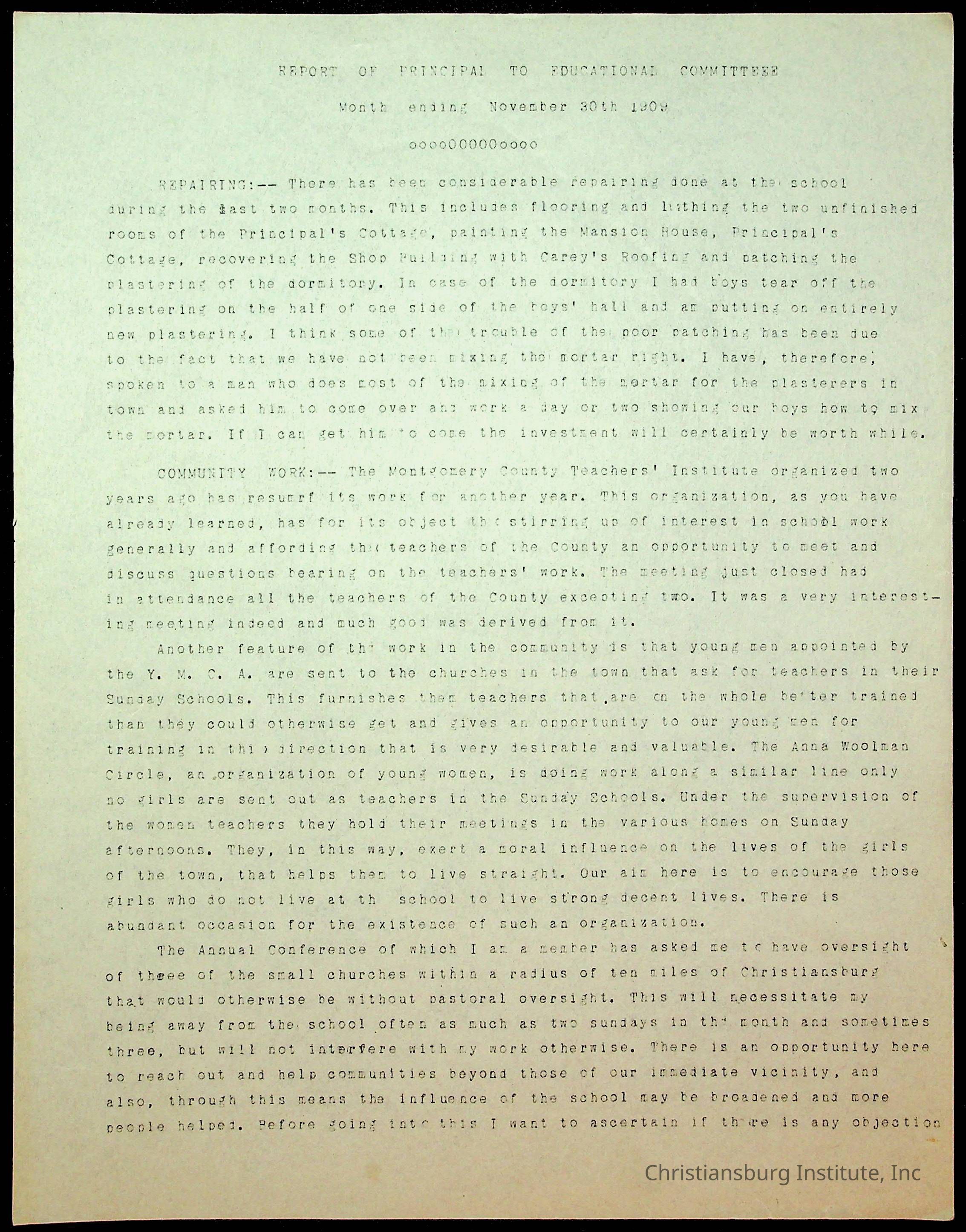 An archive of reports from the principals of Christiansburg Institute circa 1900s.