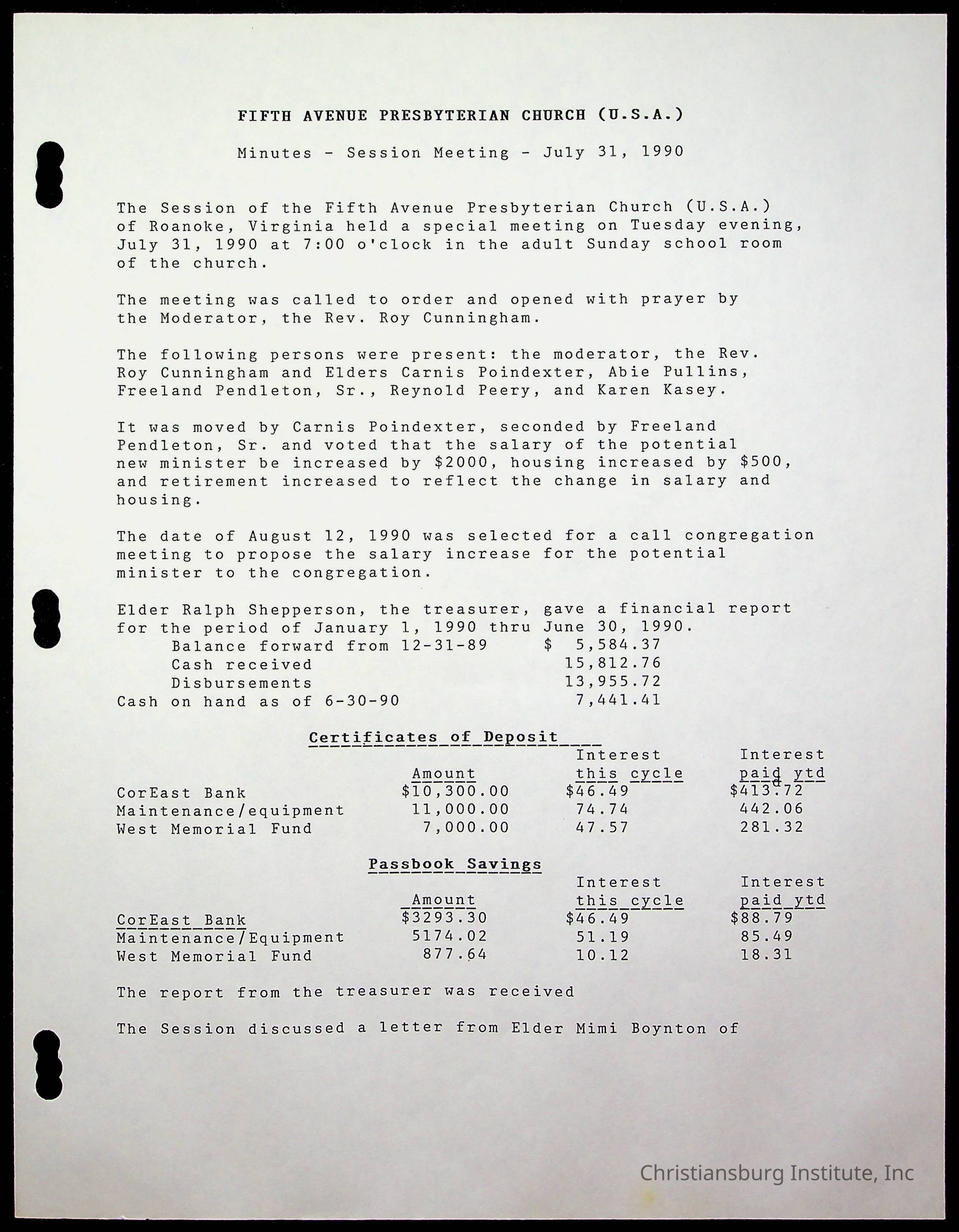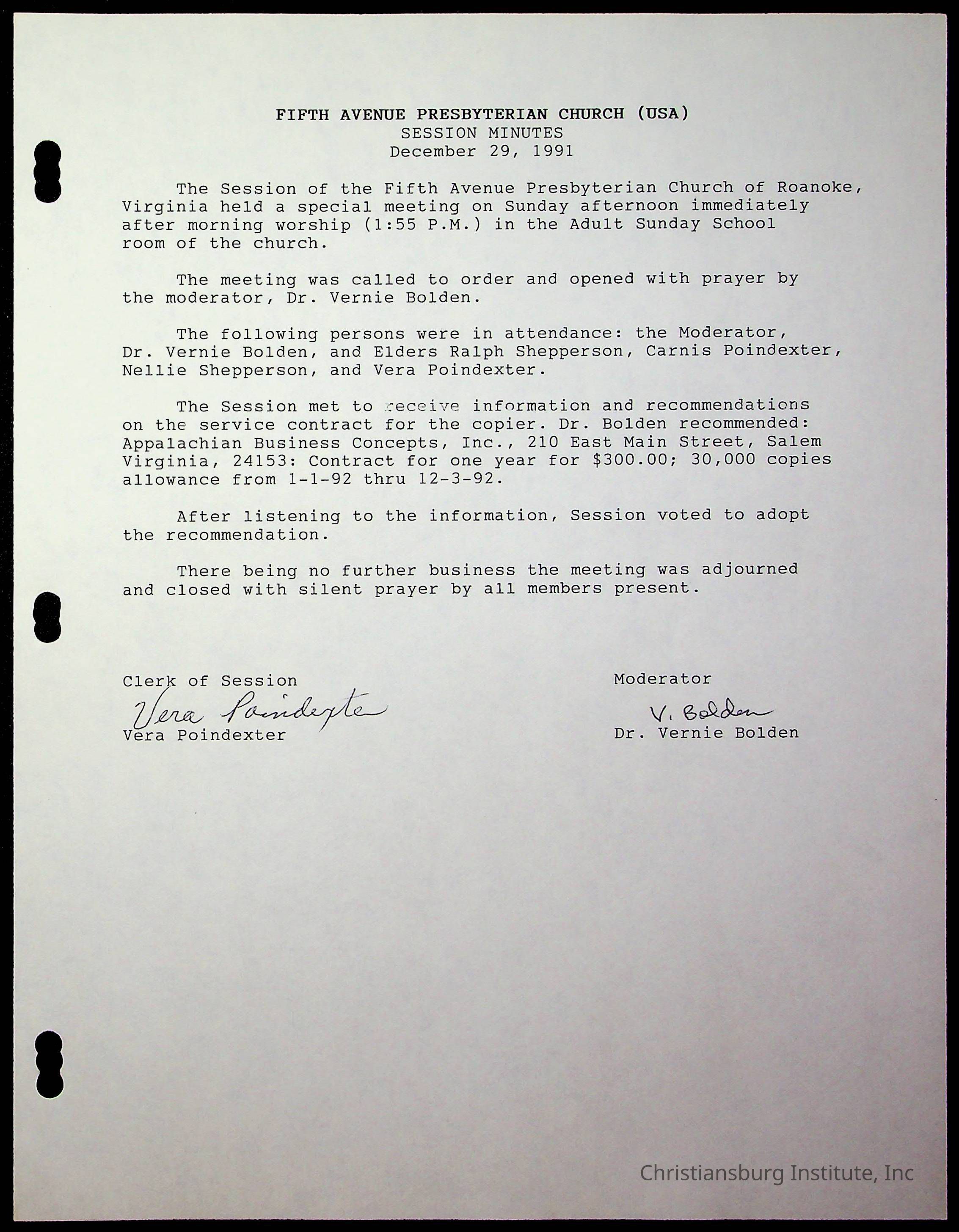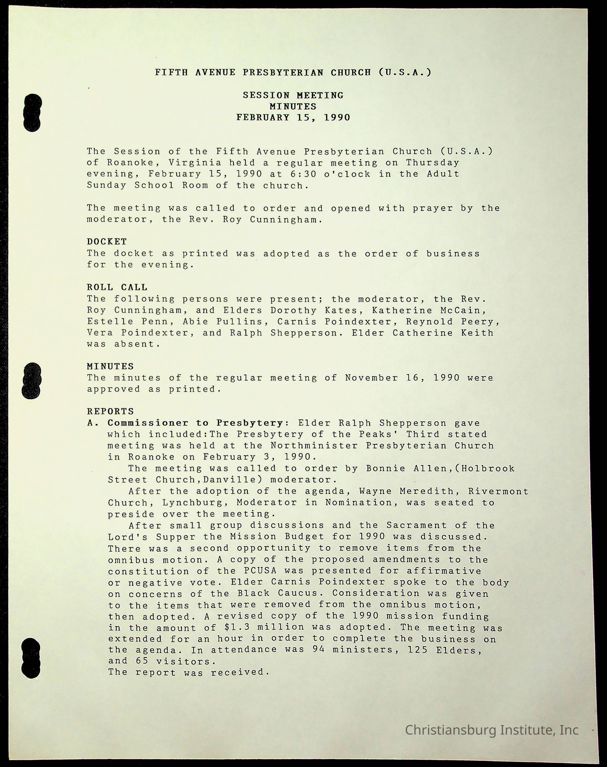 The session minutes for the Fifth Avenue Presbyterian Church from the years 1989-1994.Collection