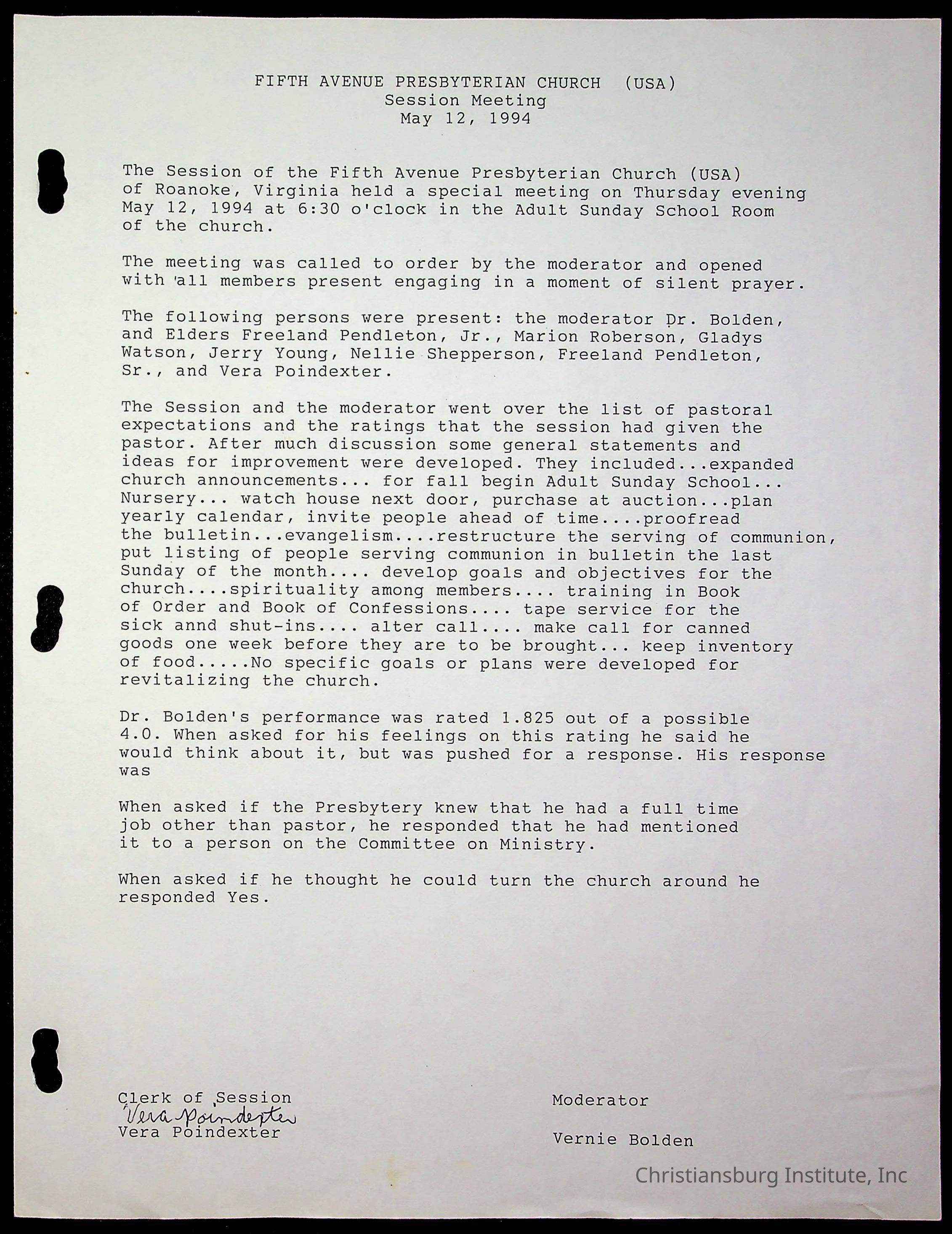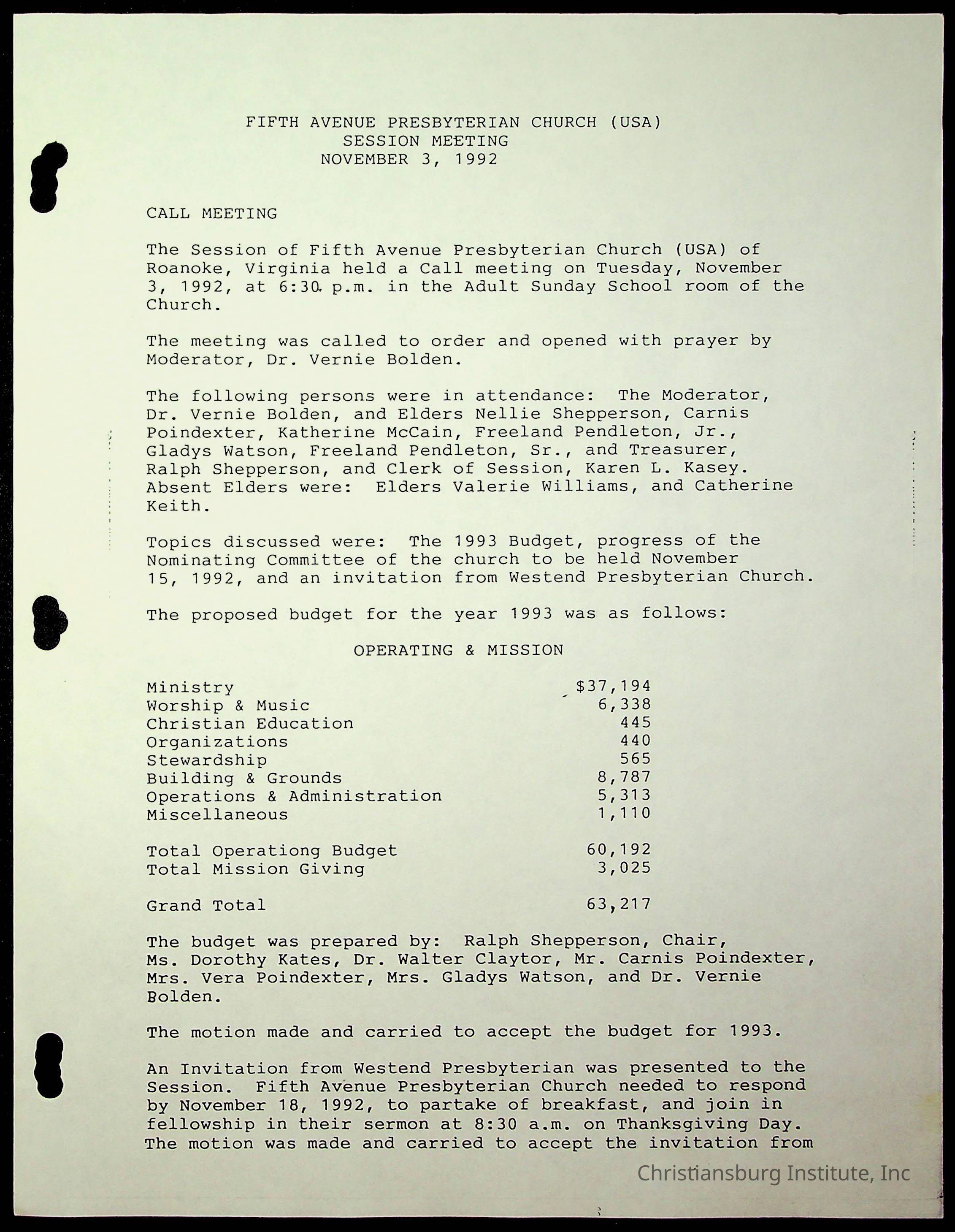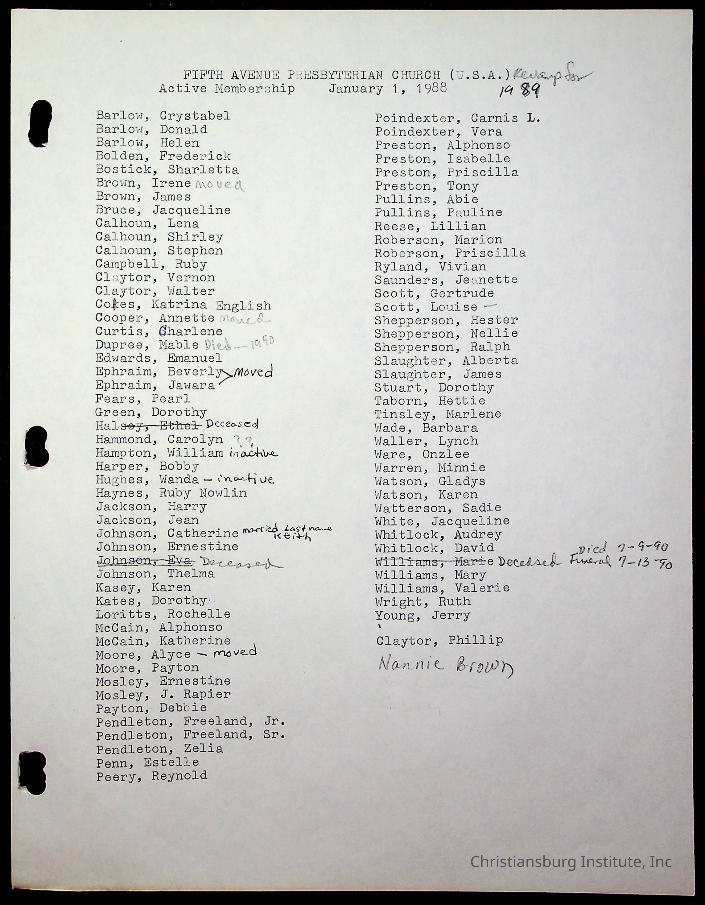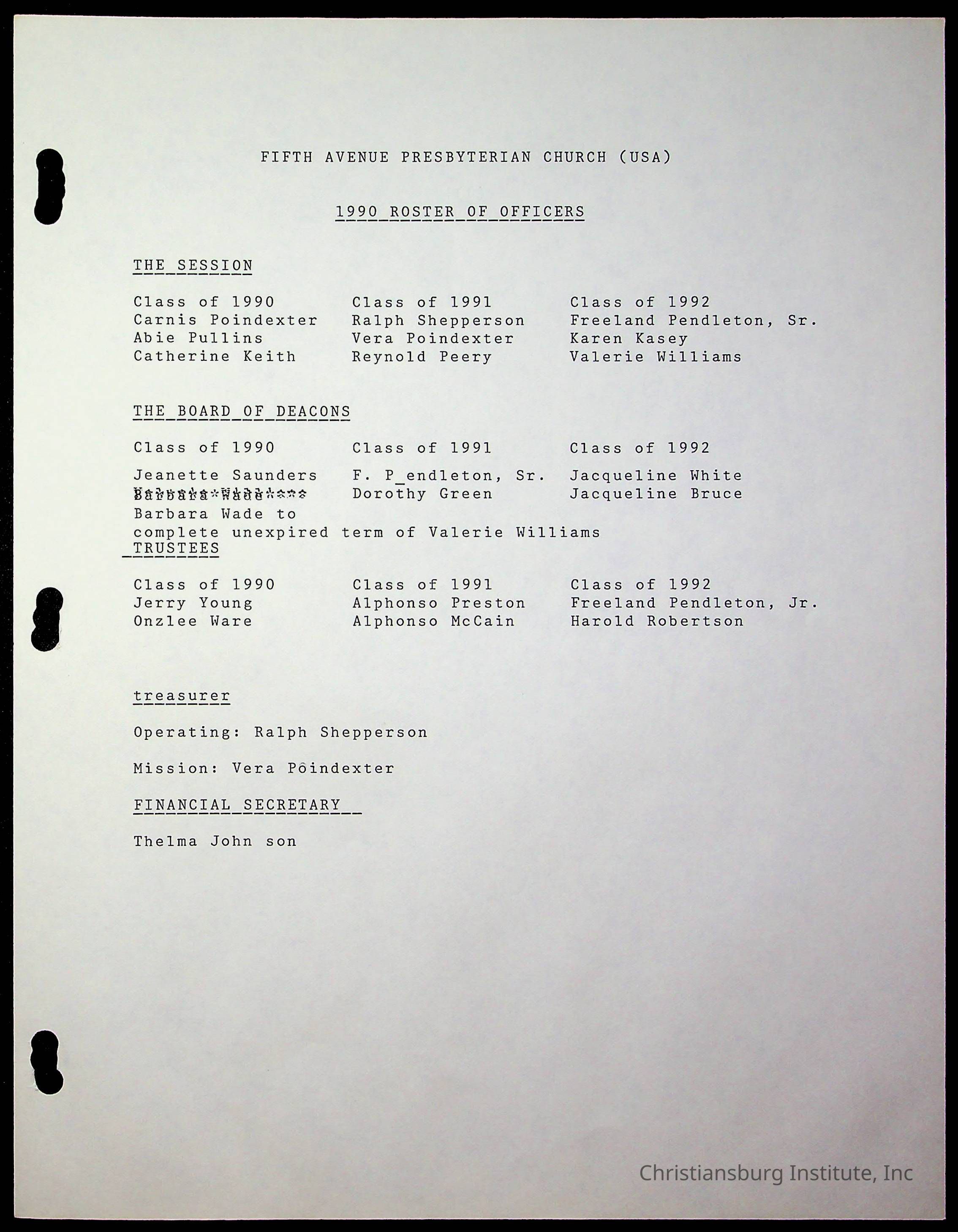 Copyright has been assigned to Christiansburg Institute Museum & Archives by Fifth Avenue Presbyterian Church. For permission to publish materials created by the donor, contact CIMA@christiansburginstitute.com. Materials not created by Fifth Avenue Presbyterian Church may still be under copyright.