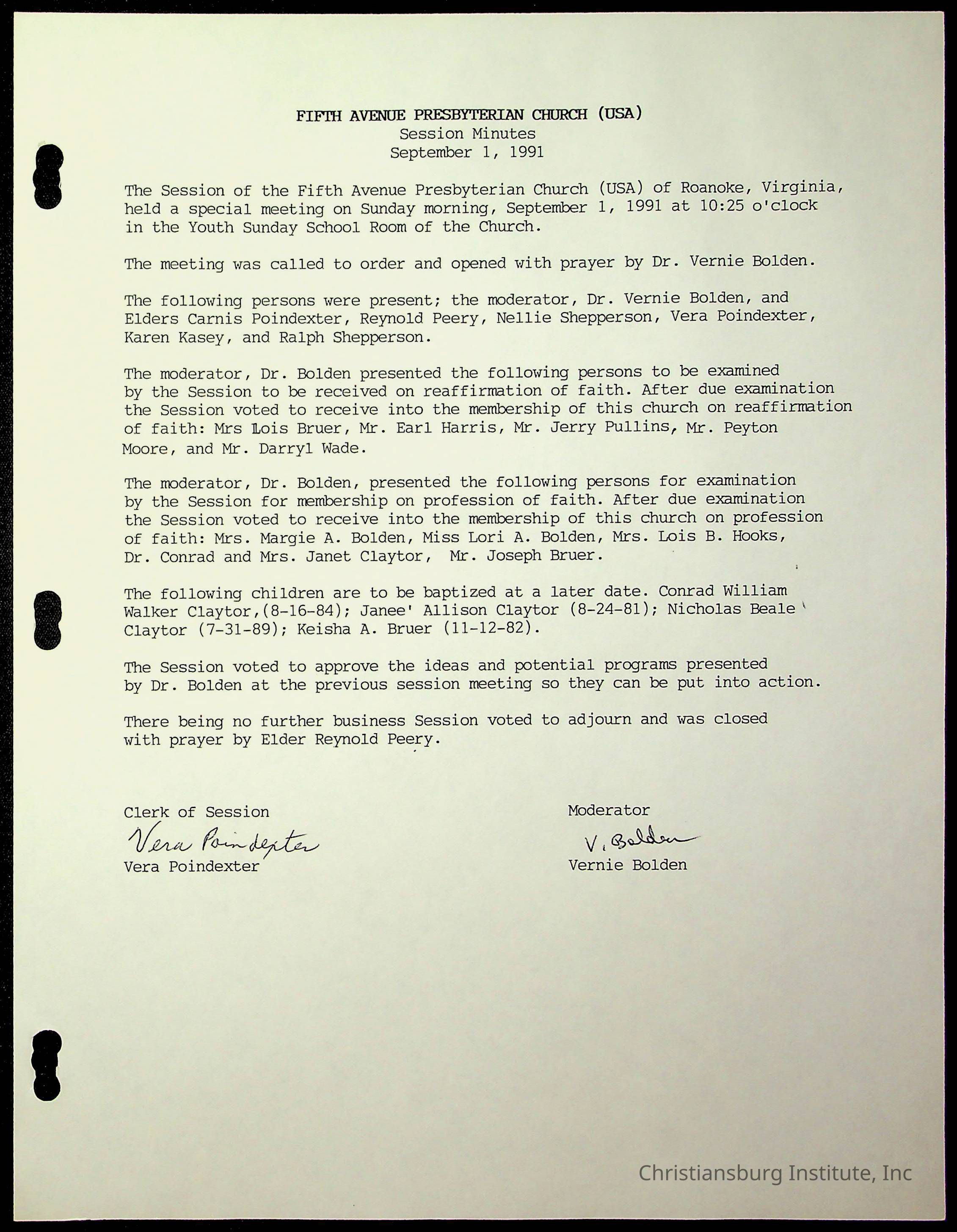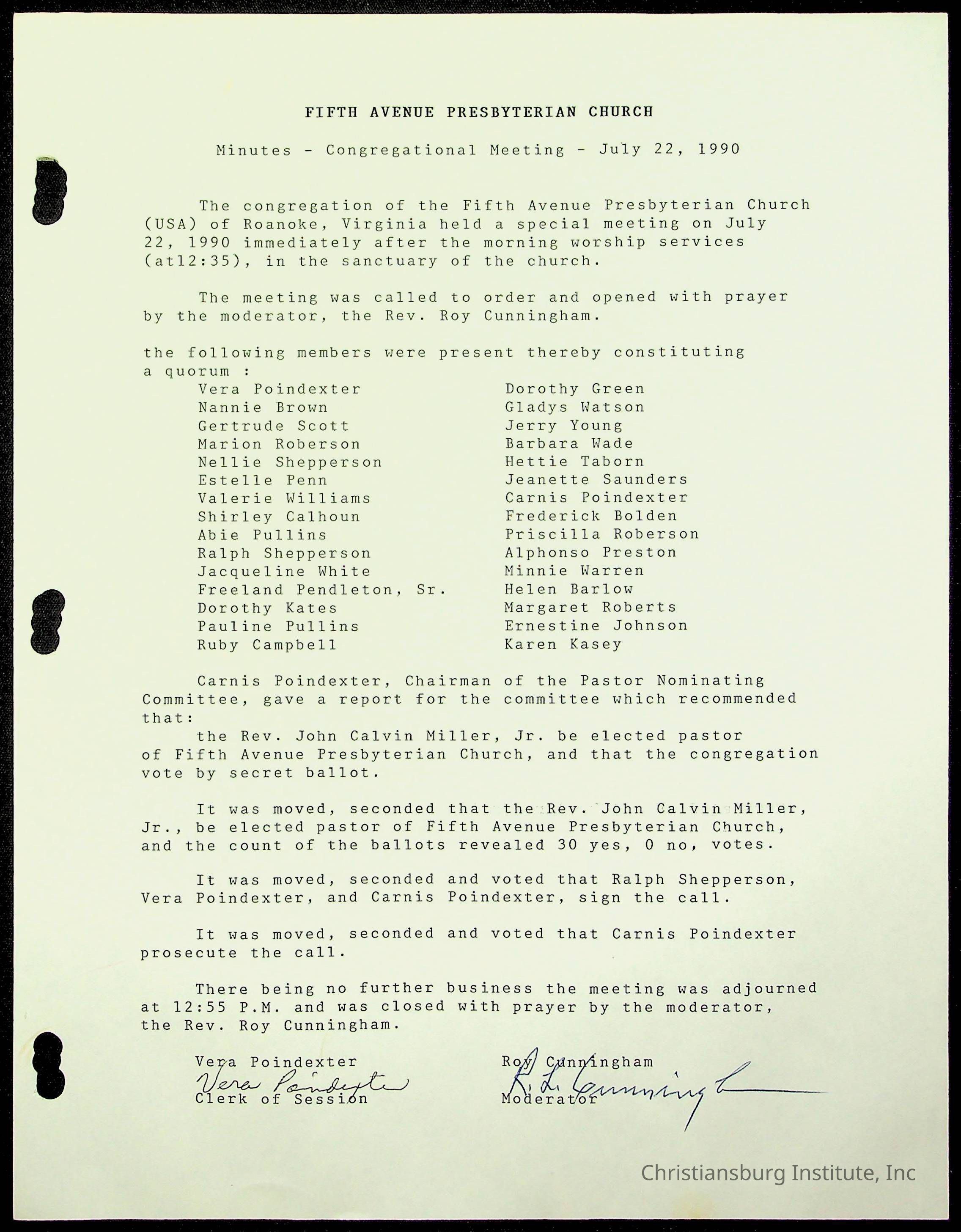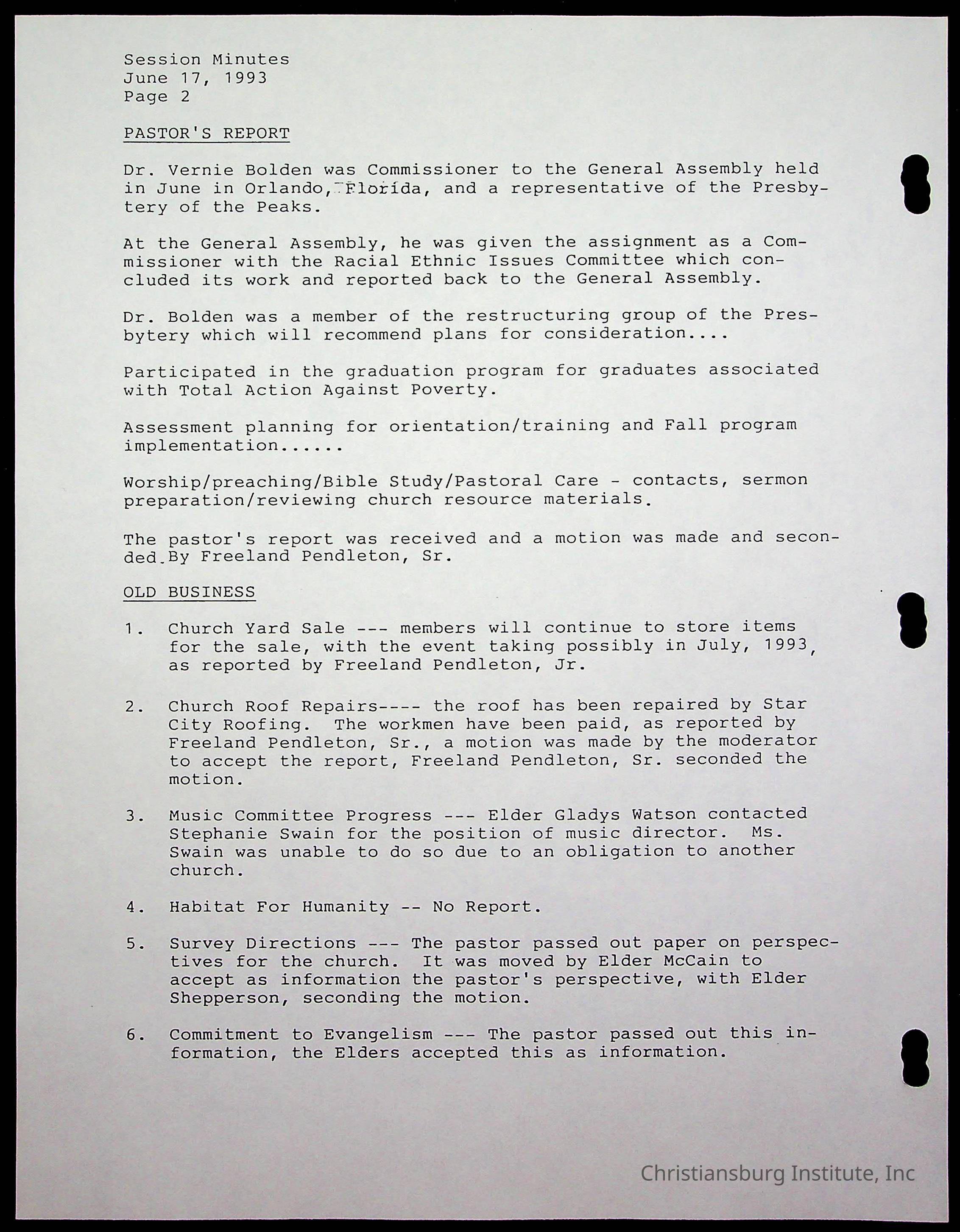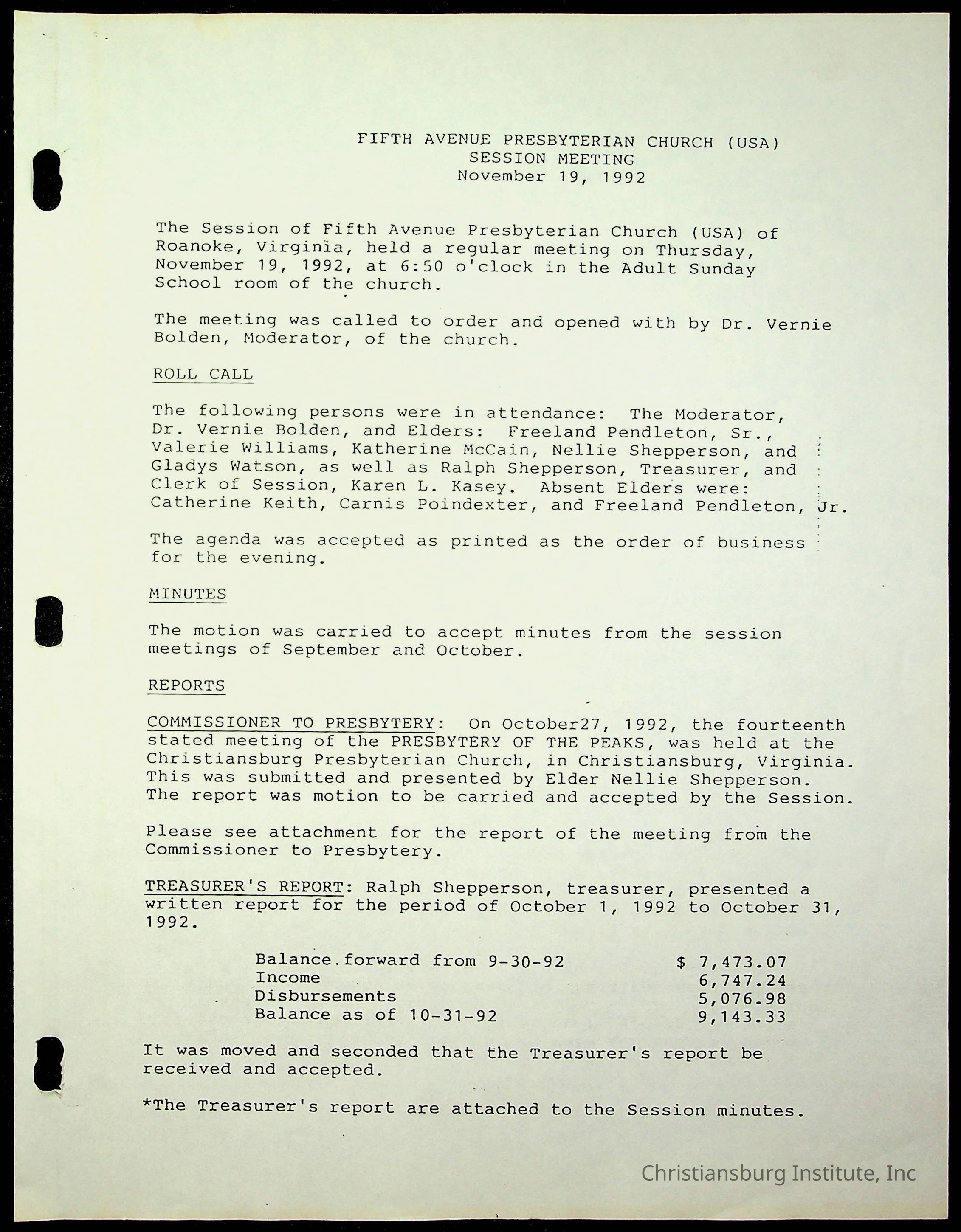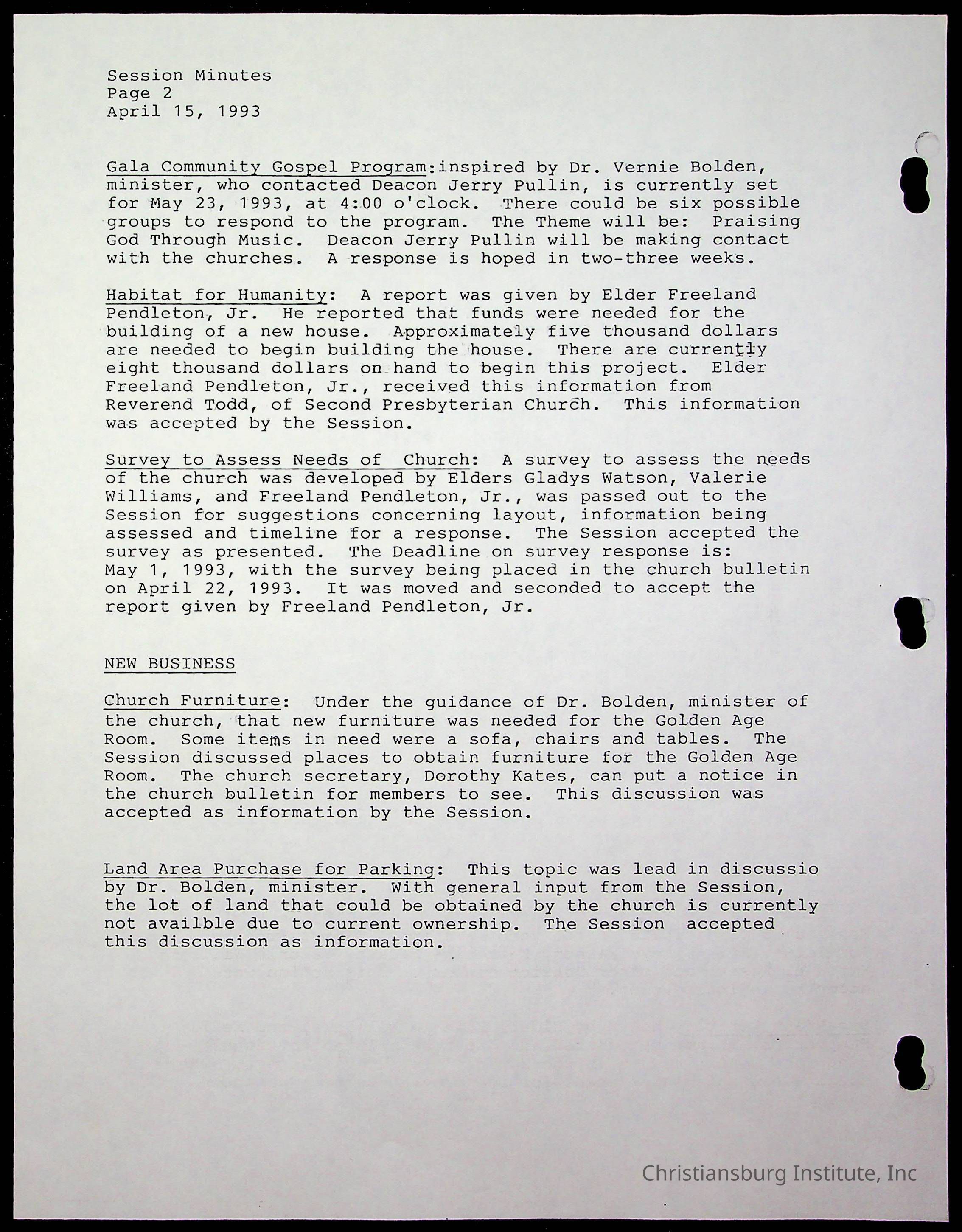 Copyright has been assigned to Christiansburg Institute Museum & Archives by Fifth Avenue Presbyterian Church. For permission to publish materials created by the donor, contact CIMA@christiansburginstitute.com. Materials not created by Fifth Avenue Presbyterian Church may still be under copyright.