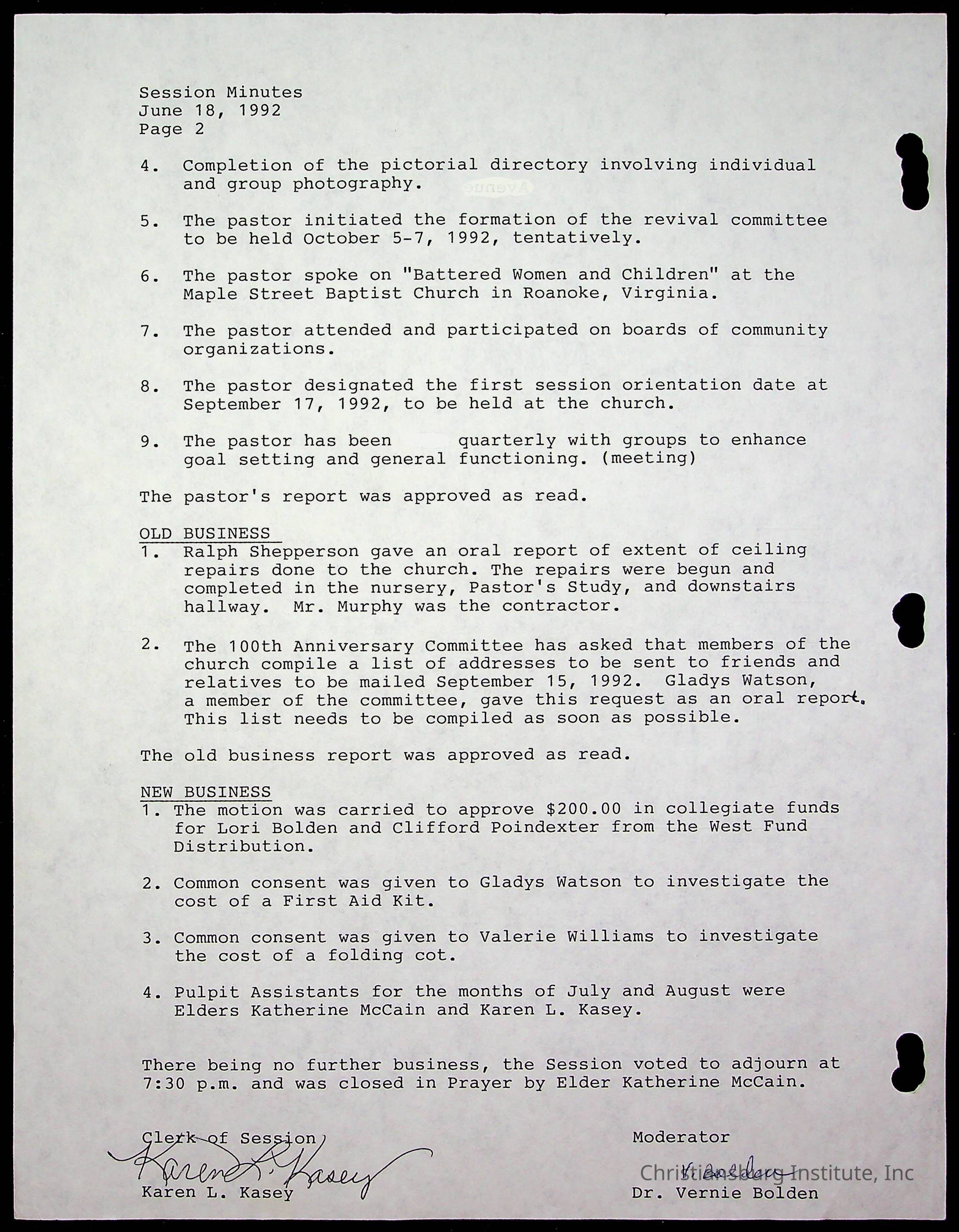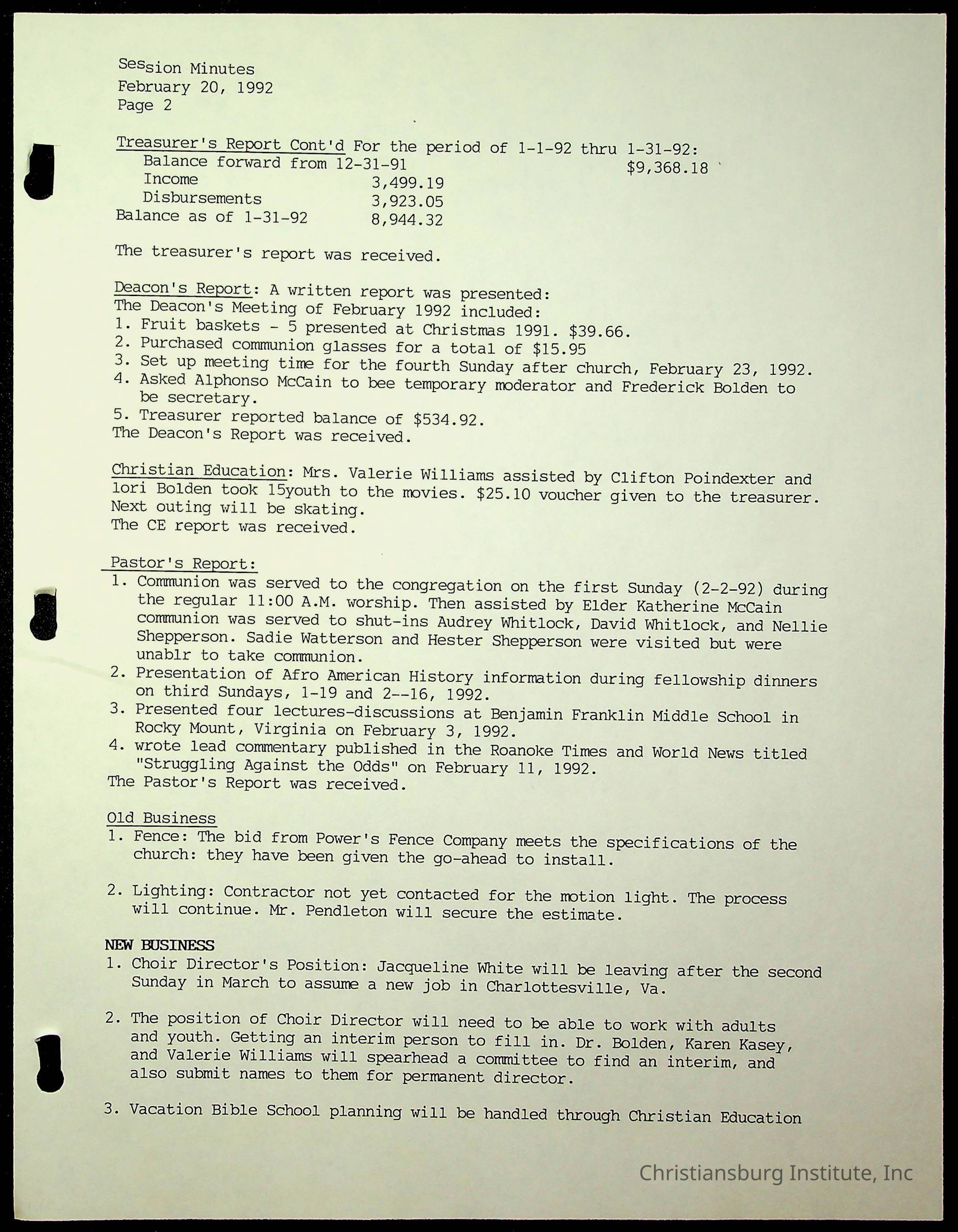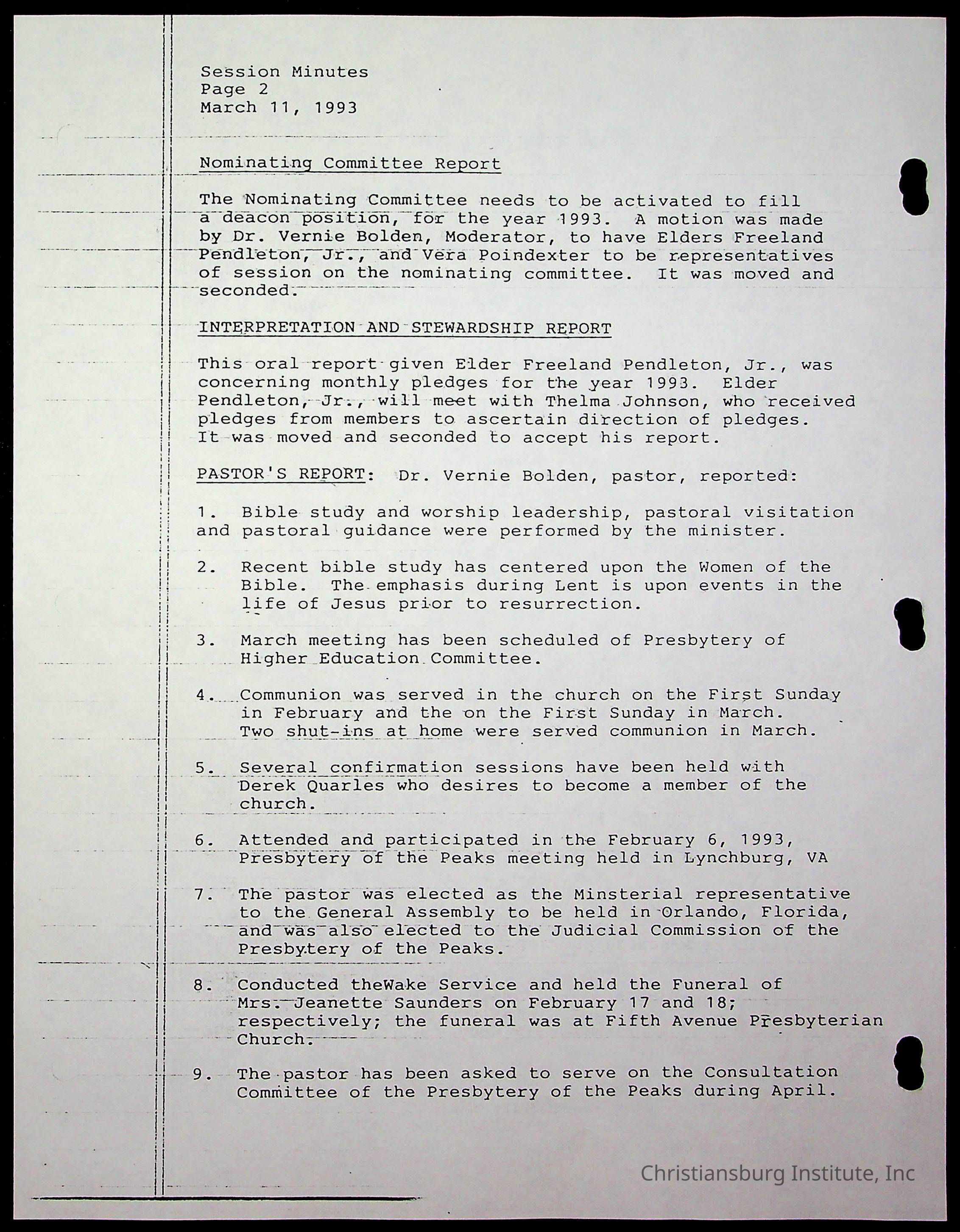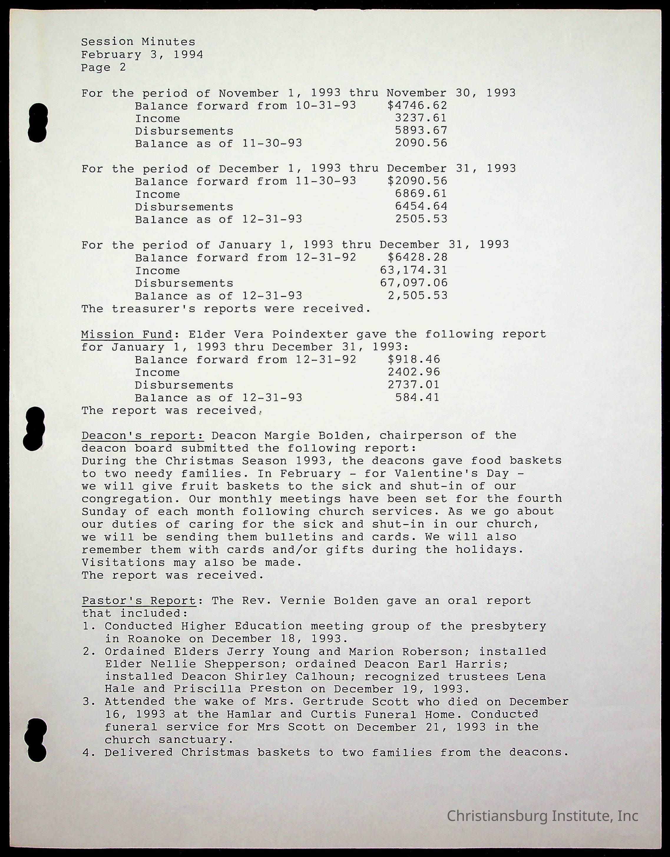 Copyright has been assigned to Christiansburg Institute Museum & Archives by Fifth Avenue Presbyterian Church. For permission to publish materials created by the donor, contact CIMA@christiansburginstitute.com. Materials not created by Fifth Avenue Presbyterian Church may still be under copyright.