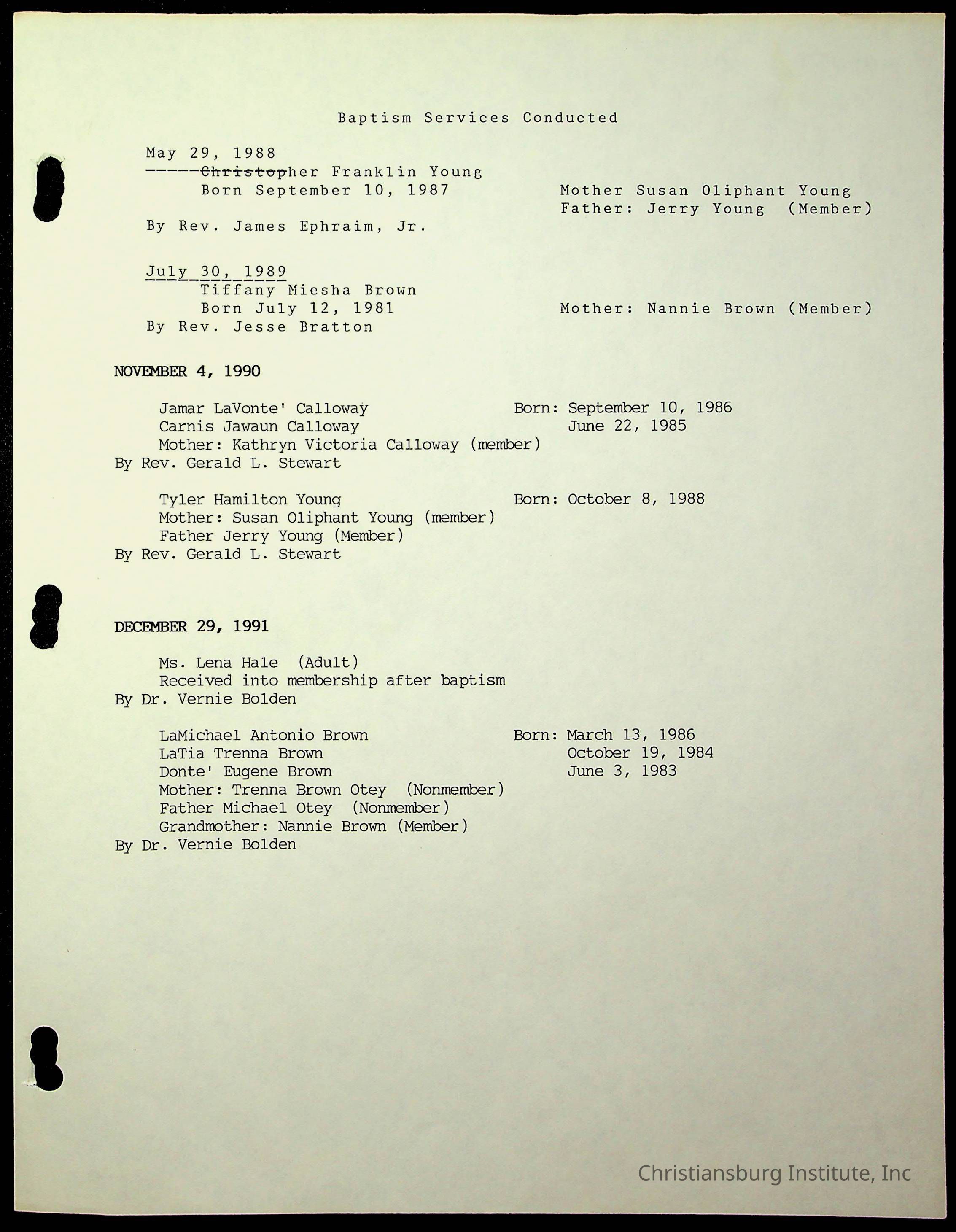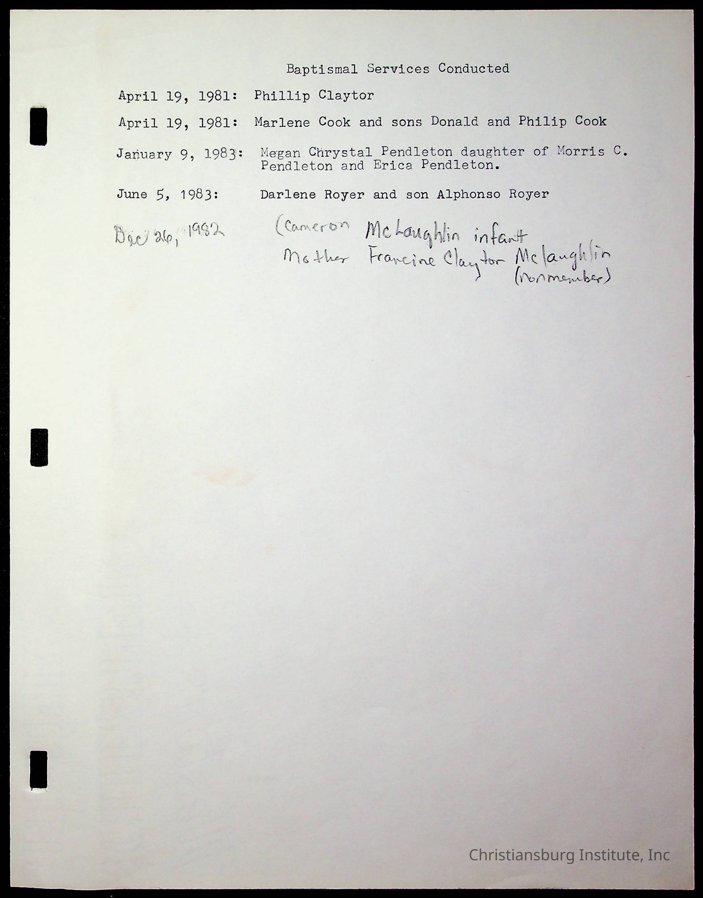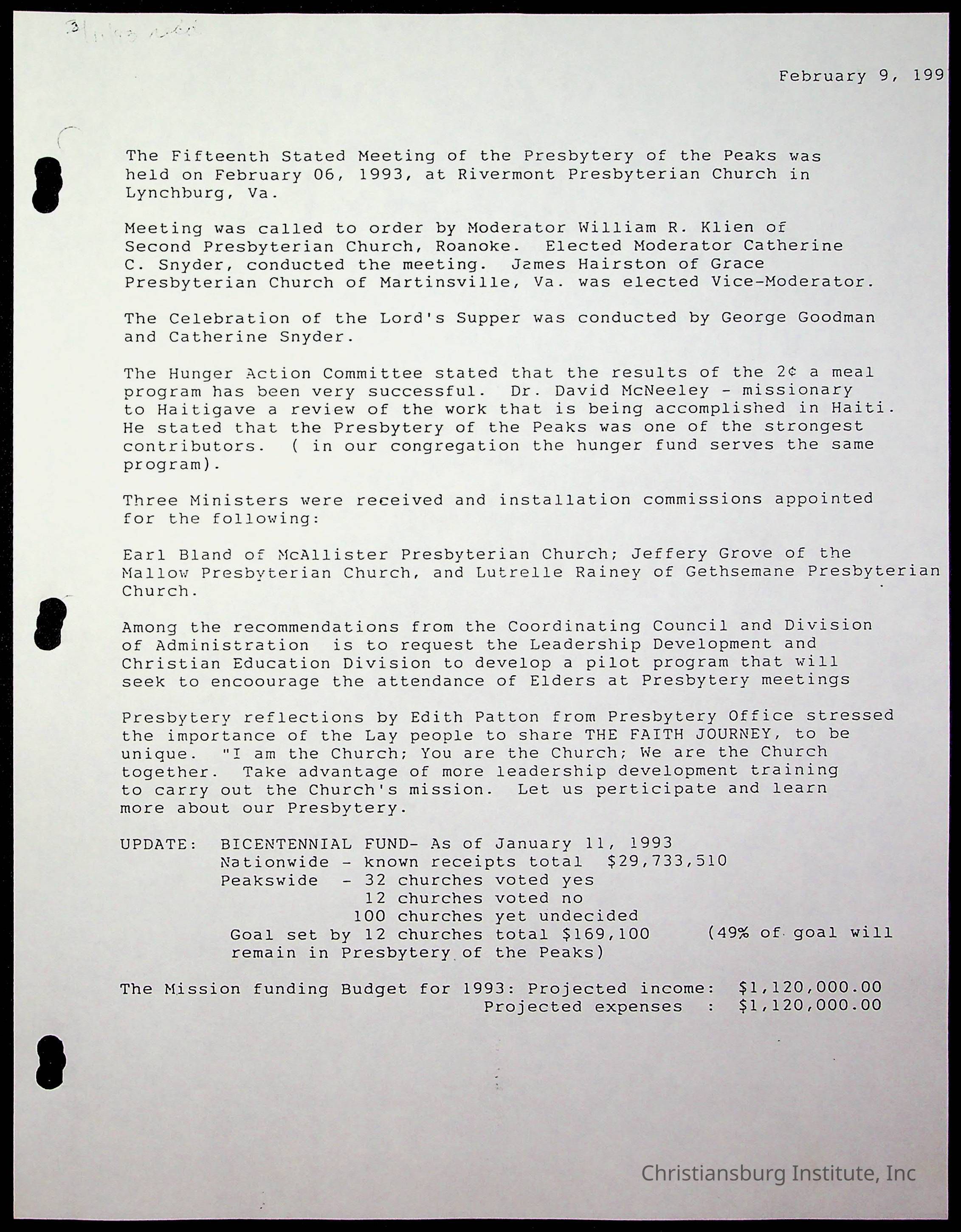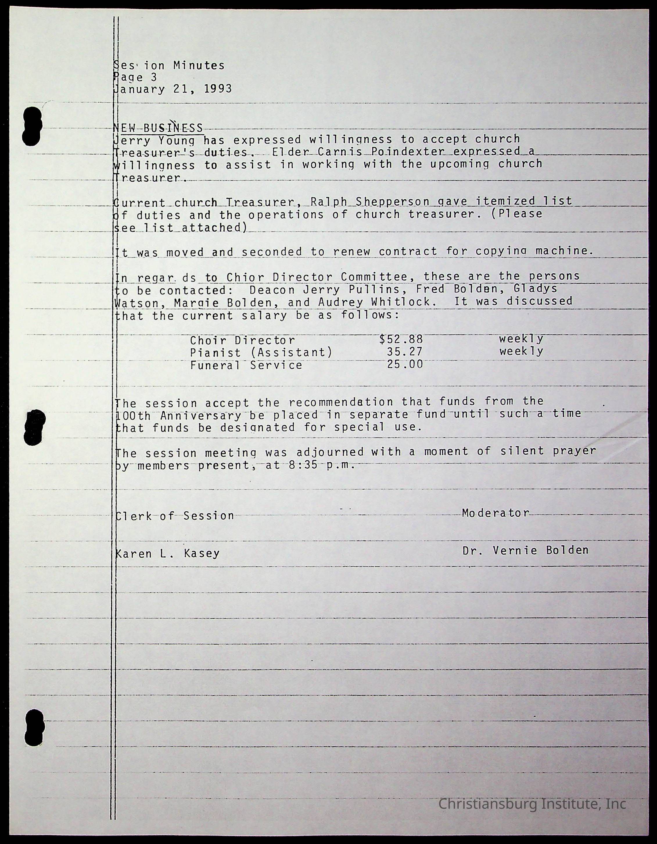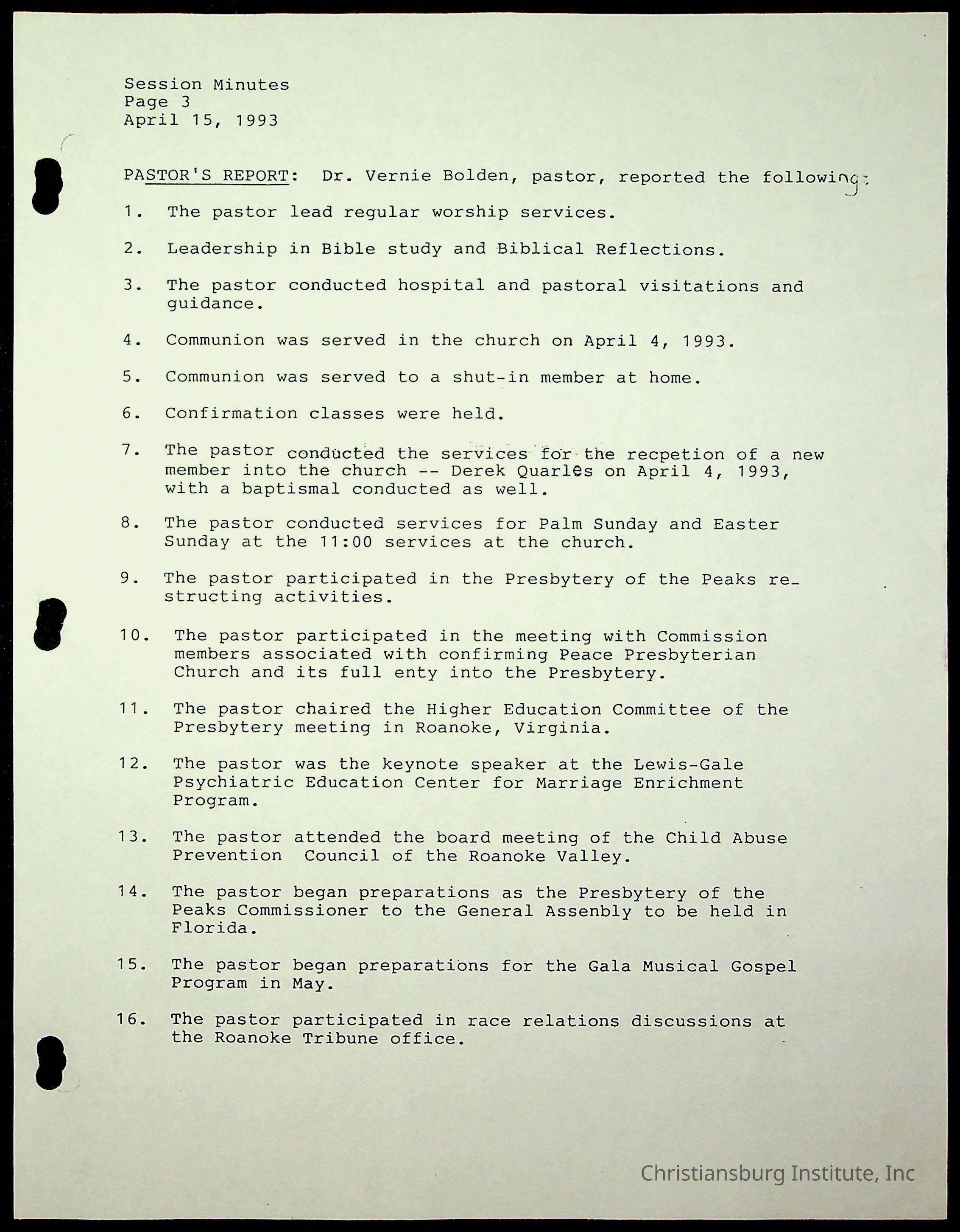 Copyright has been assigned to Christiansburg Institute Museum & Archives by Fifth Avenue Presbyterian Church. For permission to publish materials created by the donor, contact CIMA@christiansburginstitute.com. Materials not created by Fifth Avenue Presbyterian Church may still be under copyright.