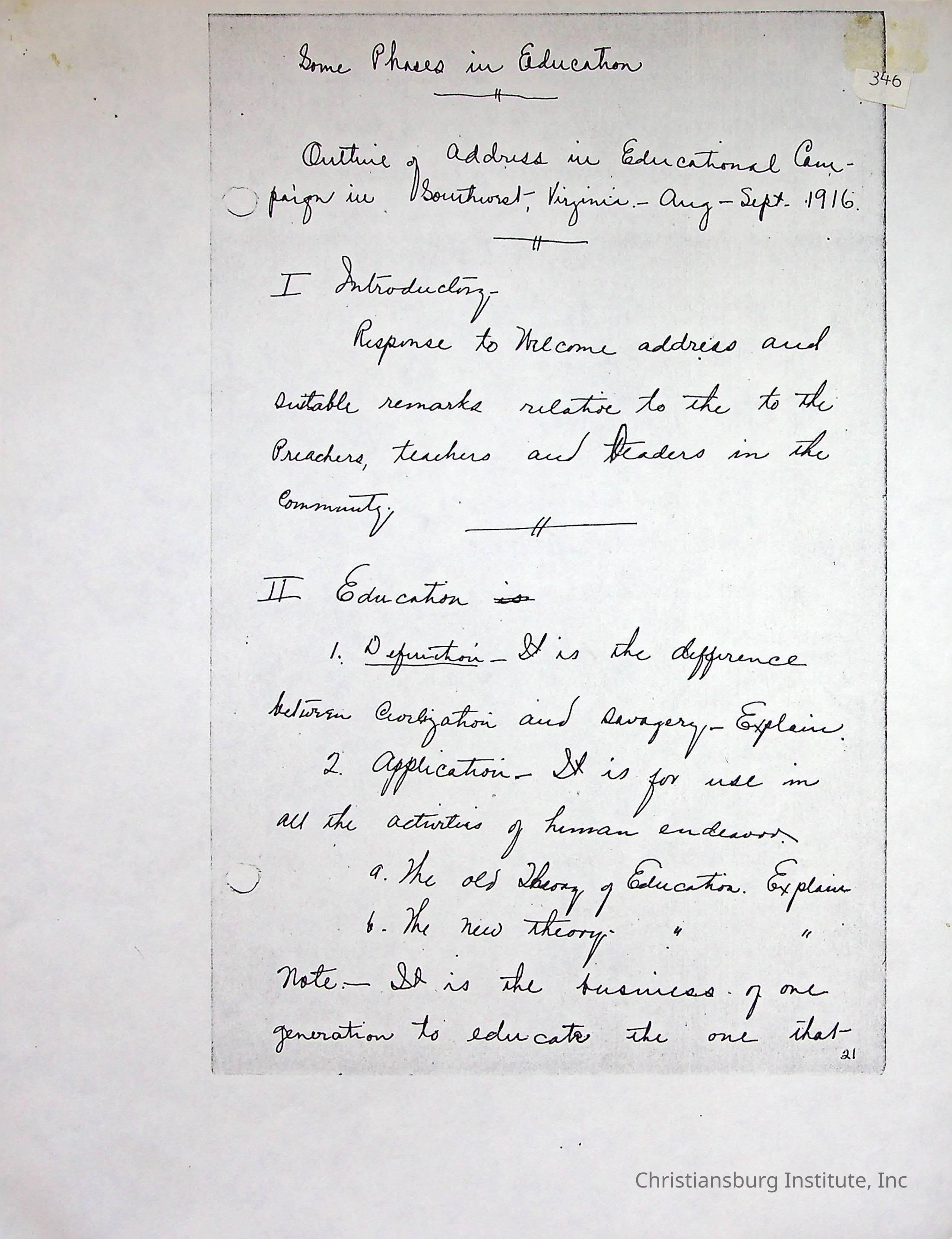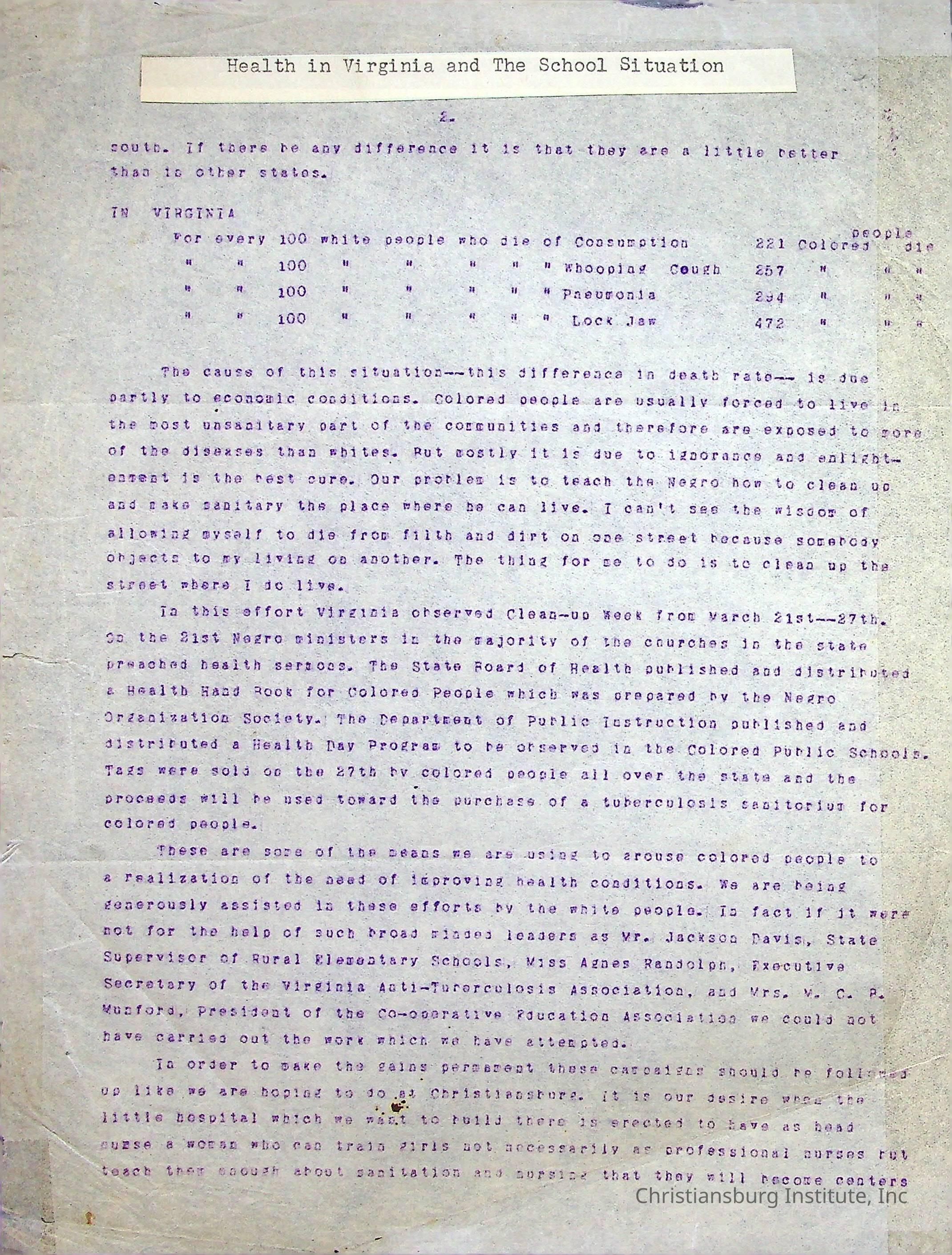 Edgar A. Long Papers: Chapter 7 Health in Virginia and The School Situation excerptsDescription