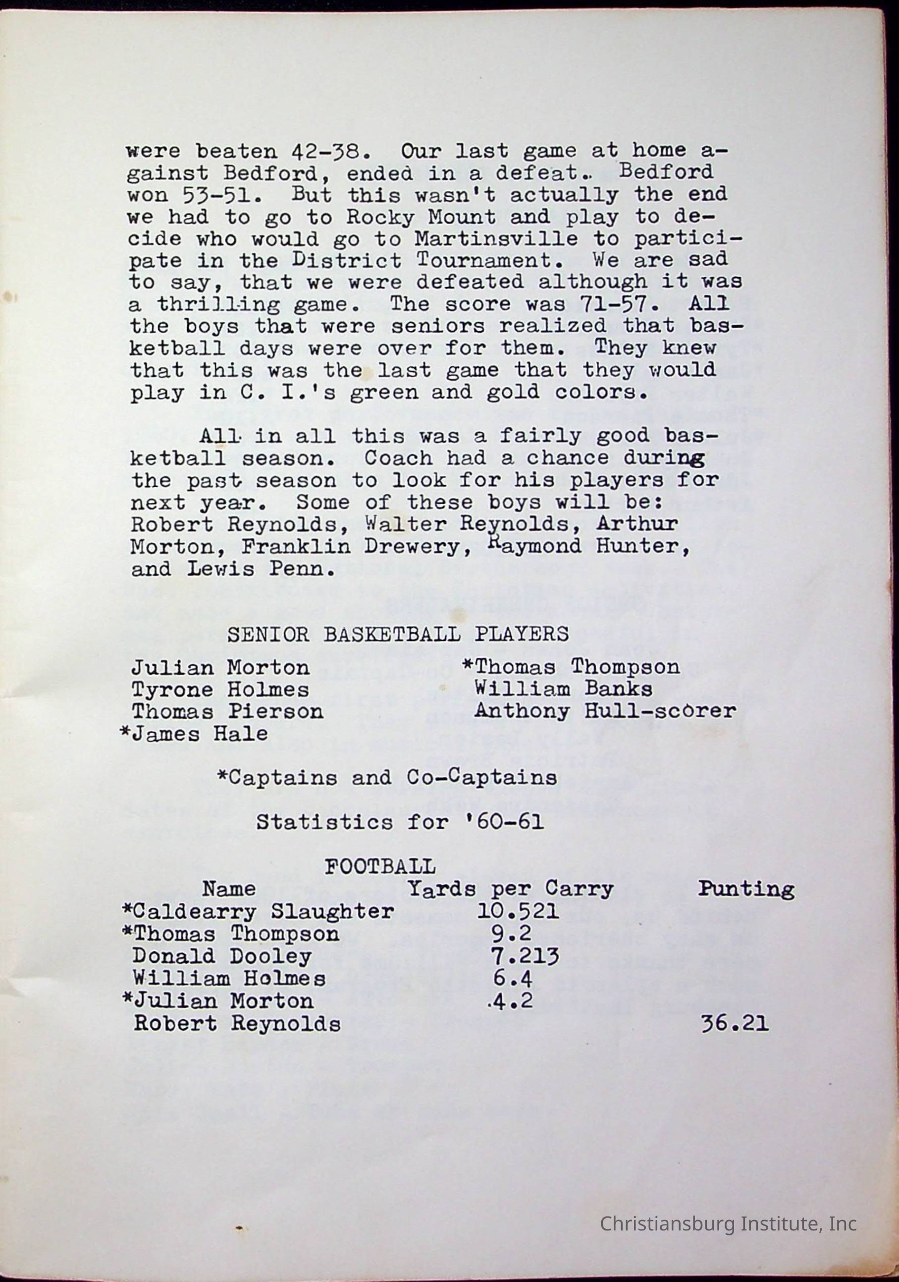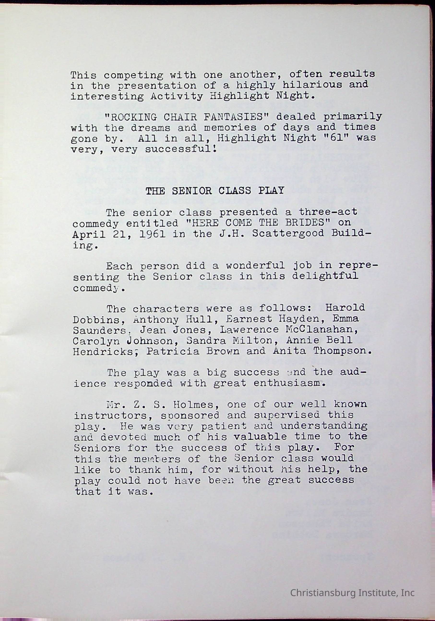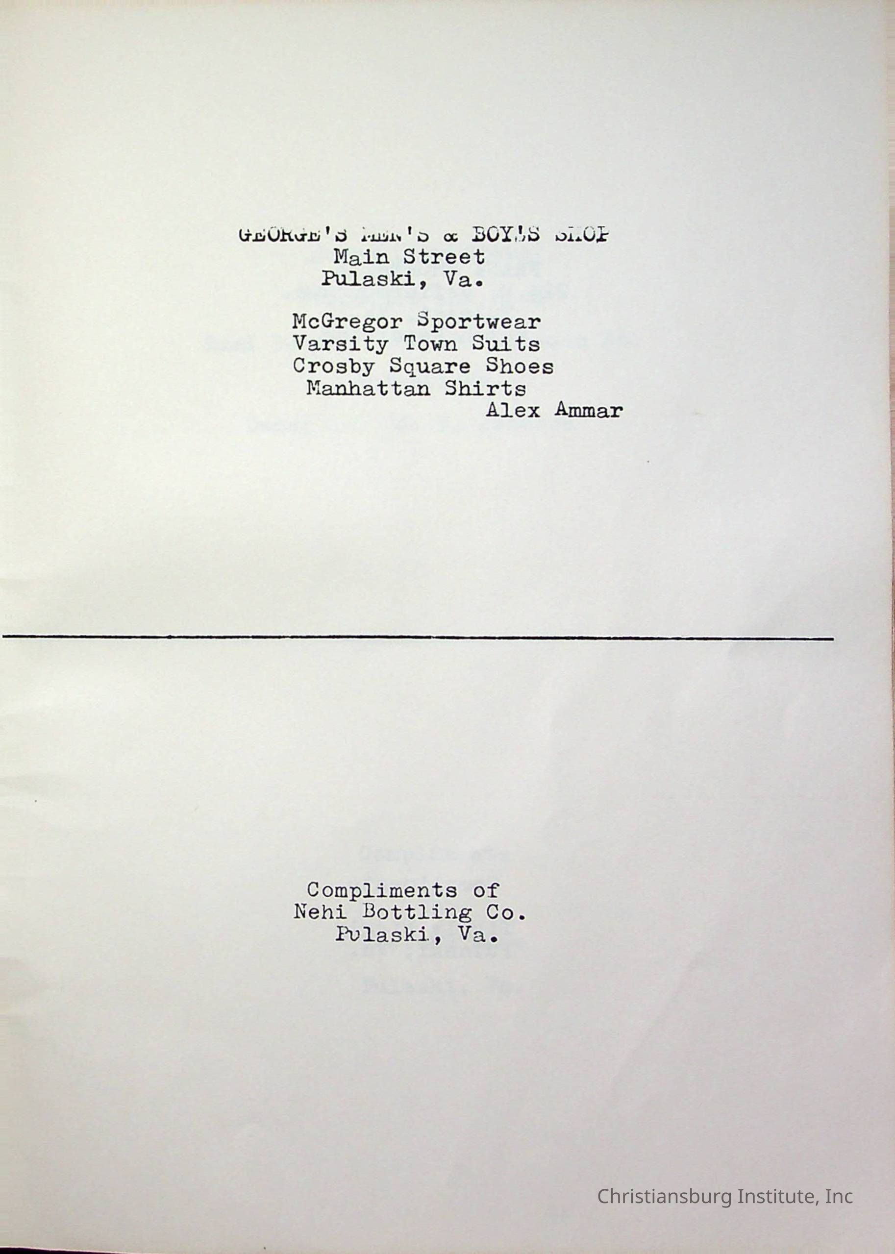 Christiansburg InstitutePlace Printed