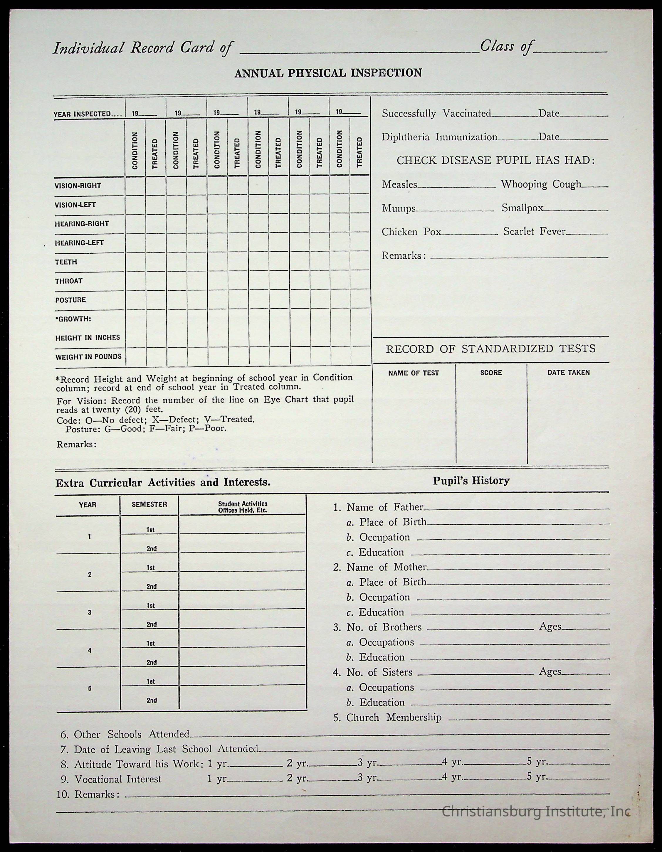 Copyright has been assigned to Christiansburg Institute Museum & Archives by Montgomery County Public Schools. For permission to publish materials created by the donor, contact CIMA@christiansburginstitute.com. Materials not created by Christiansburg Industrial Institute may still be under copyright.