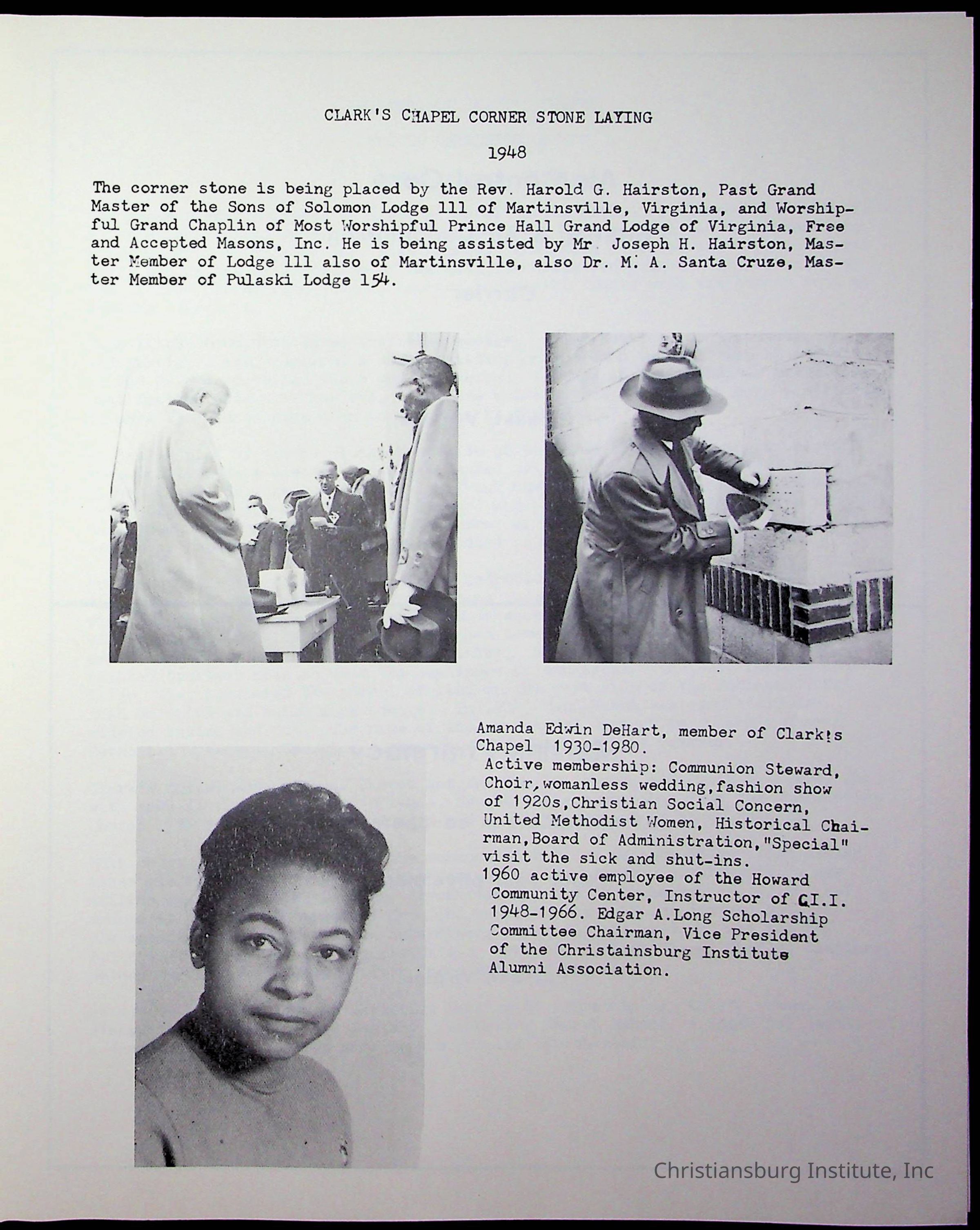 Christiansburg Institute, DeHart, Amanda, Christiansburg Institute Alumni Association, United Methodist Church