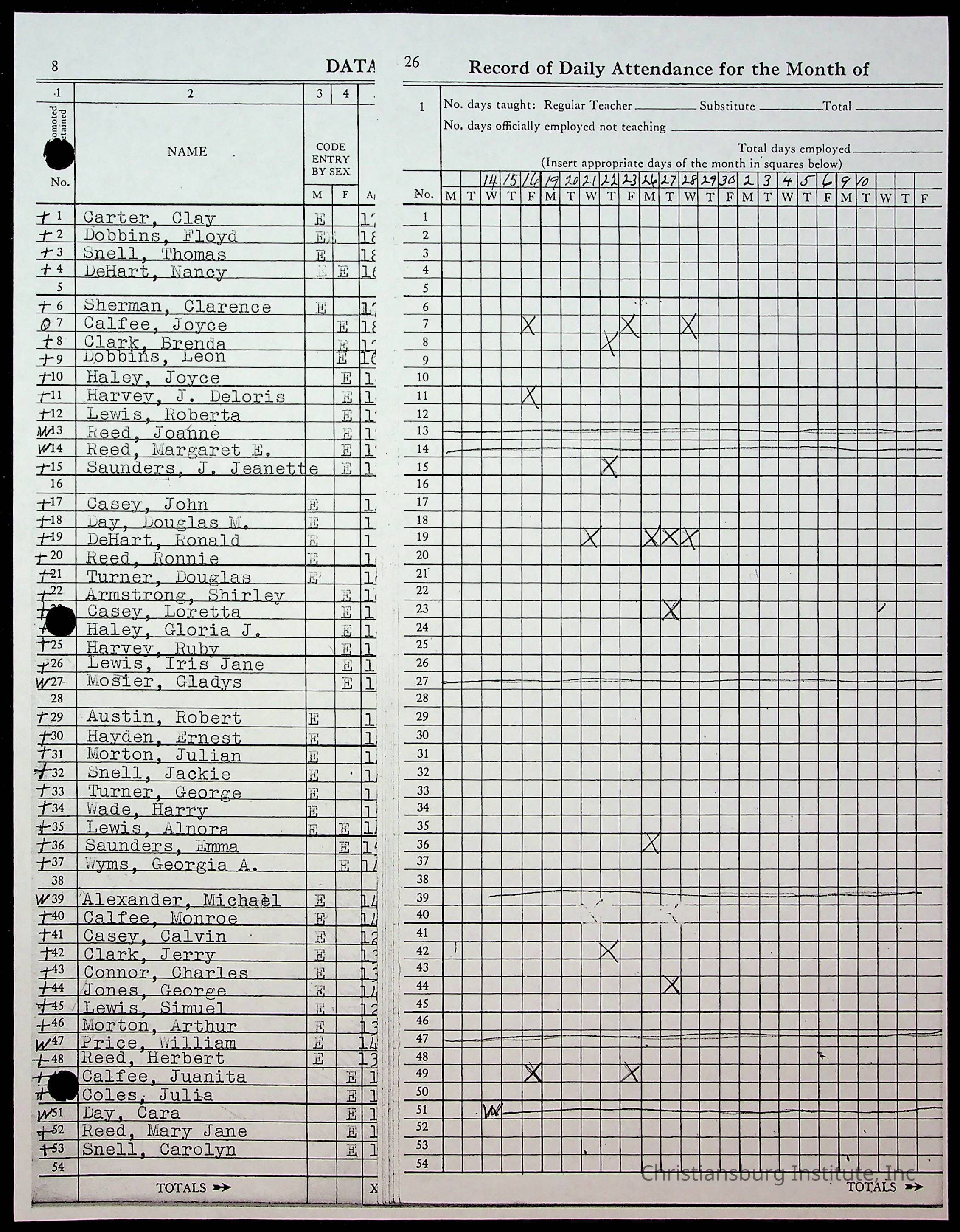 Christiansburg Institute Records of H.E. Clemons, 1957-1958