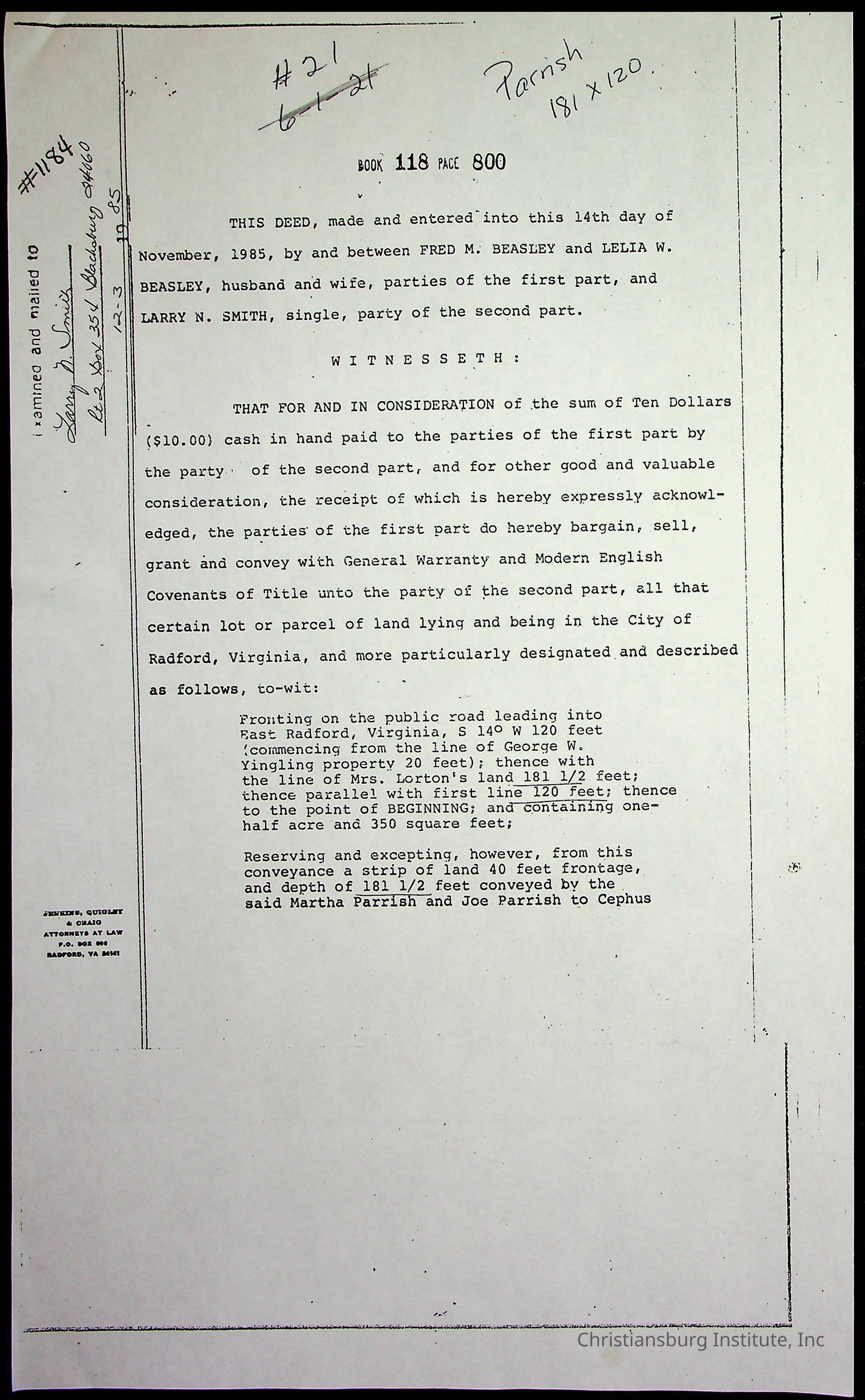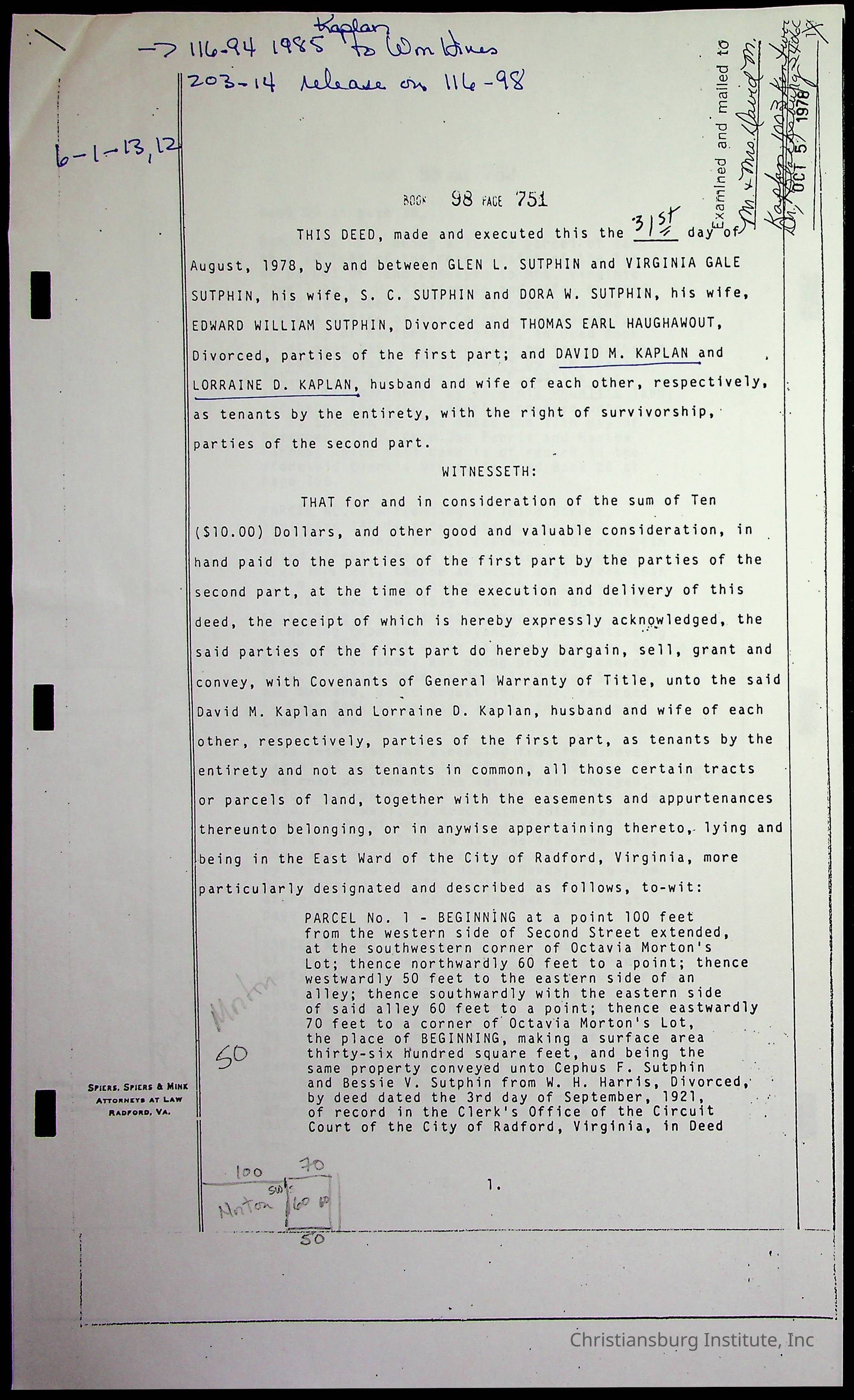 A folder of research materials collected by Radford University professor, Dr. Linda Killen. This folder is titled '2nd Avenue' and includes various research conducted in Radford, Virginia. This folder includes genealogy records, Dr Killen's notes, and plat maps.
