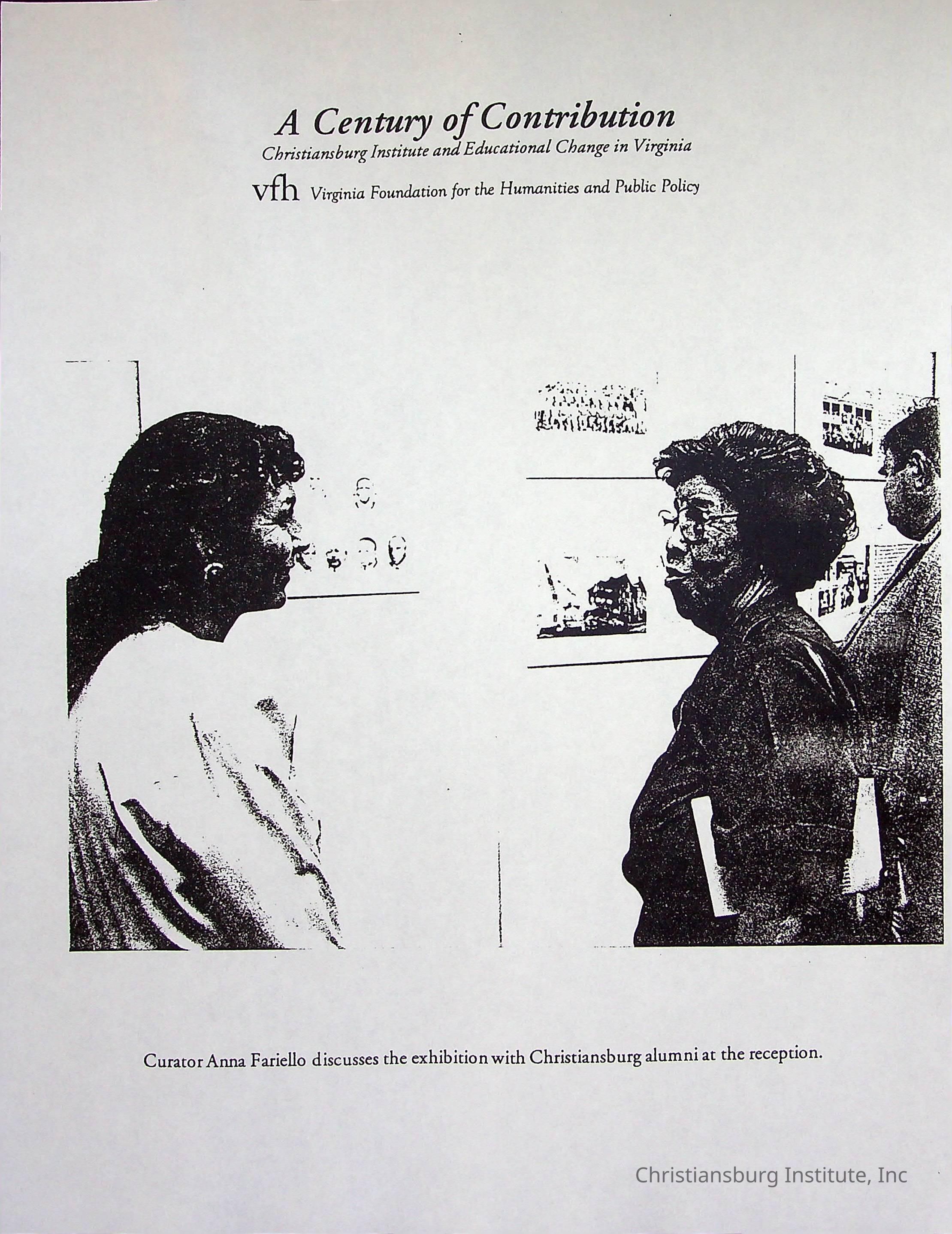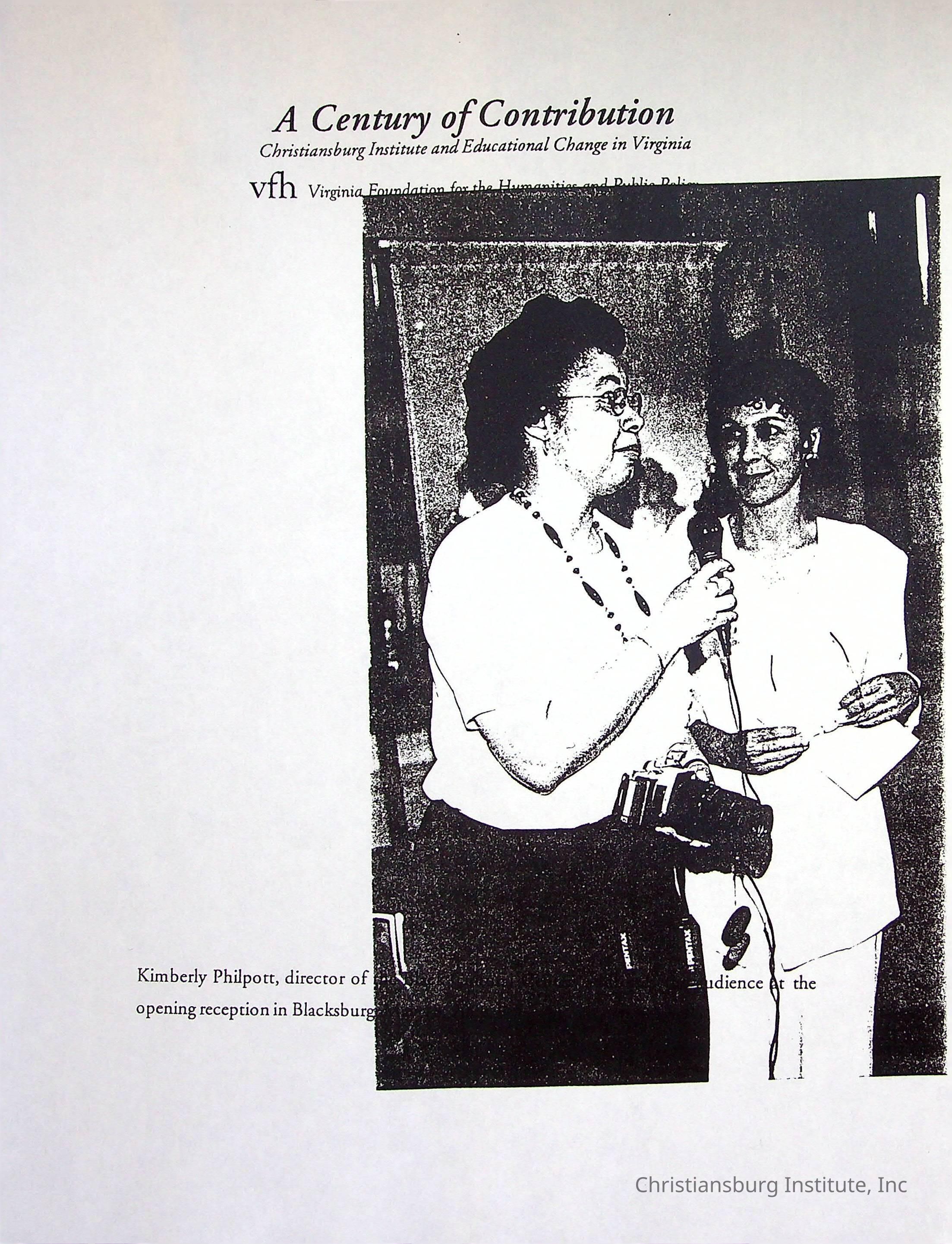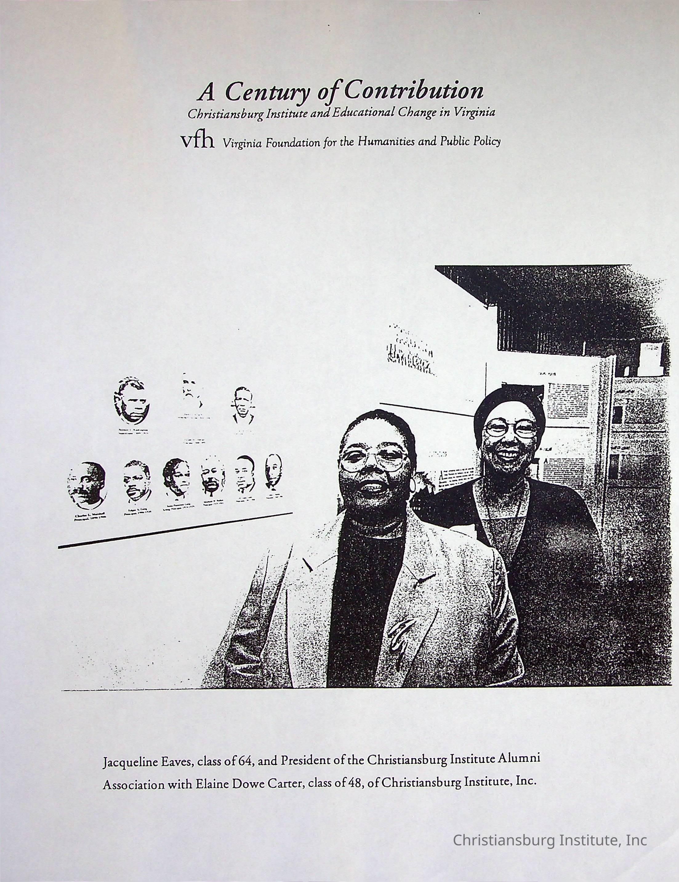 A photocopy version of the article titled, "A Century of Contribution: Christiansburg Institute and Educational Change in Virginia" from the Virginia Foundation of the Humanities and Public Policy.Collection