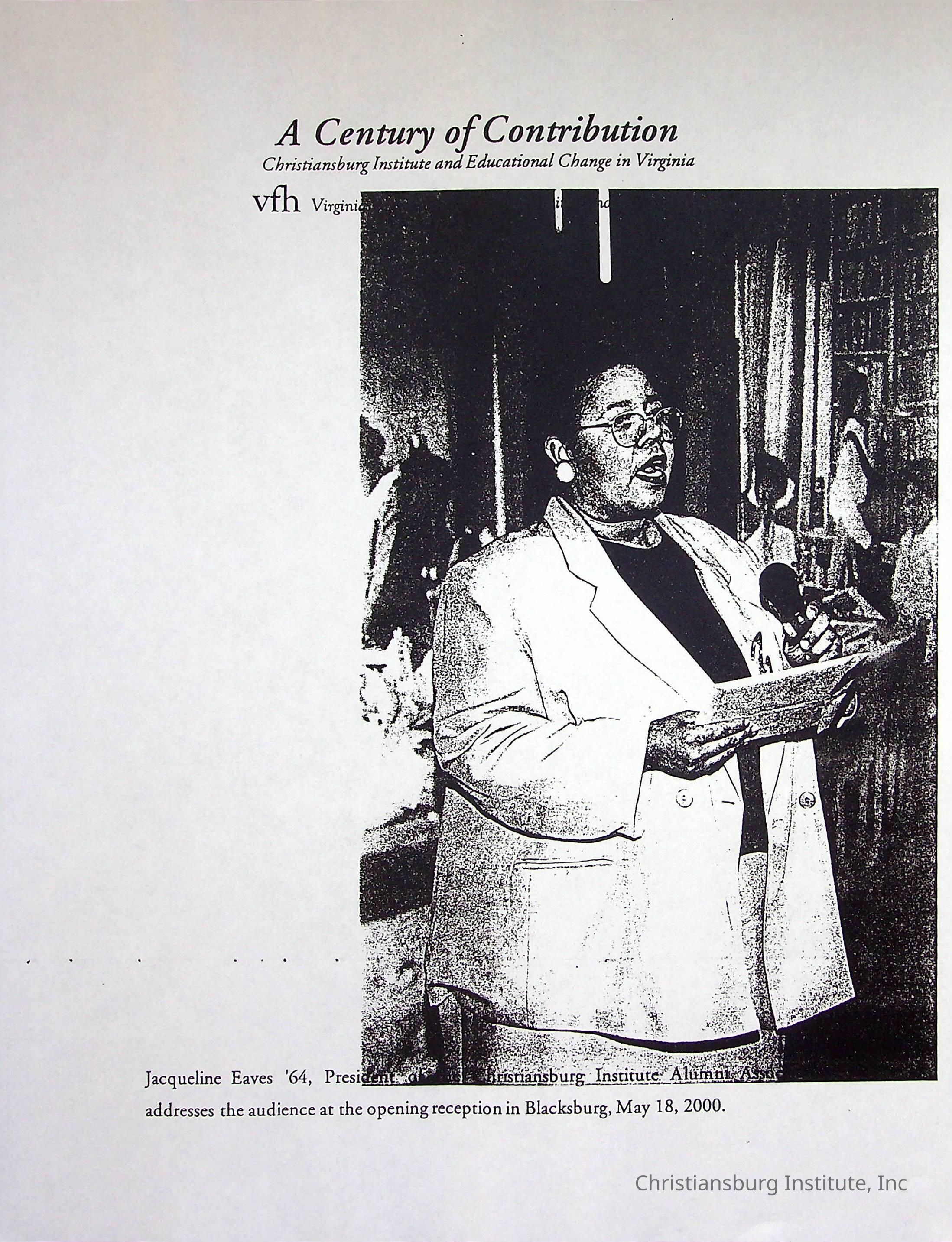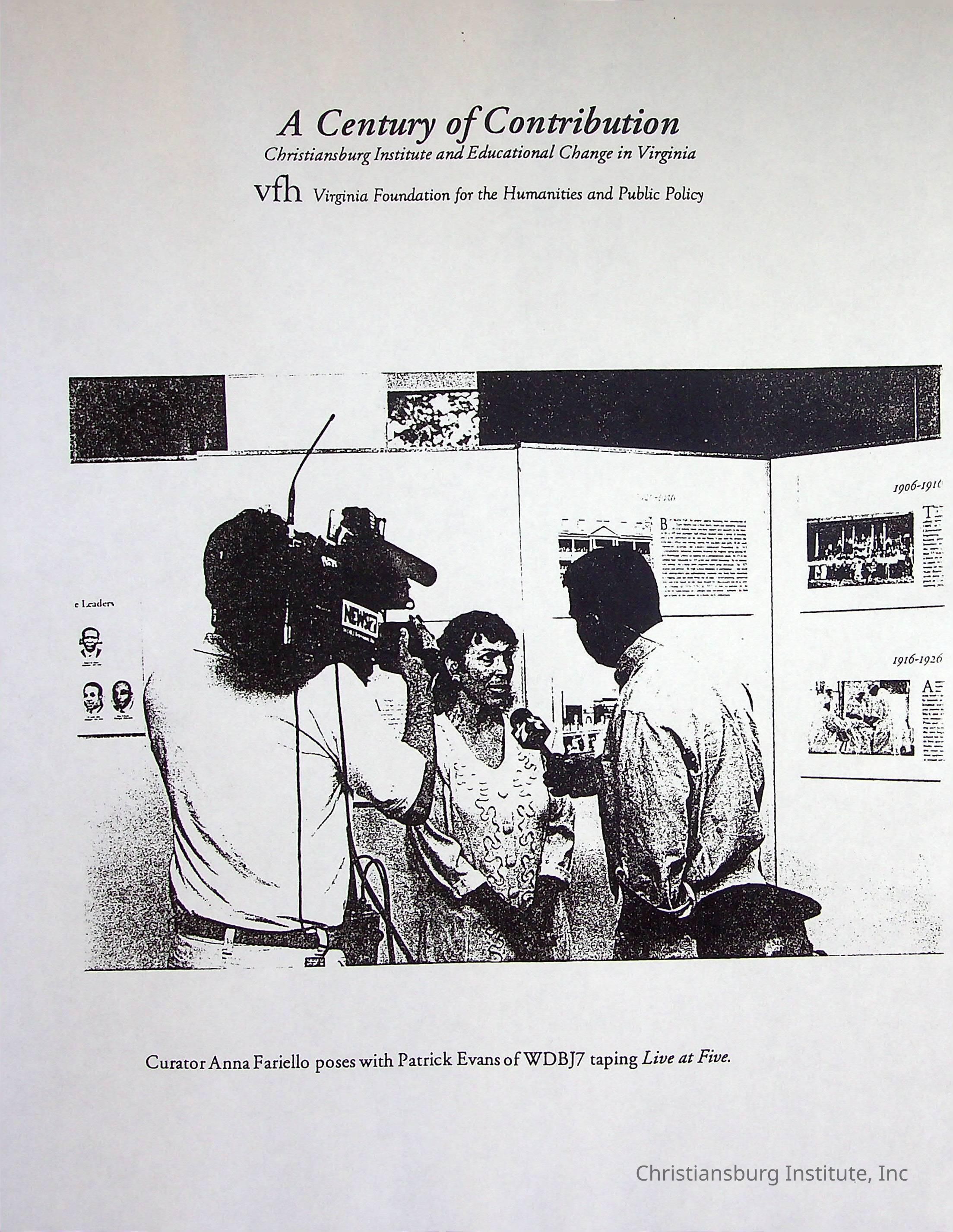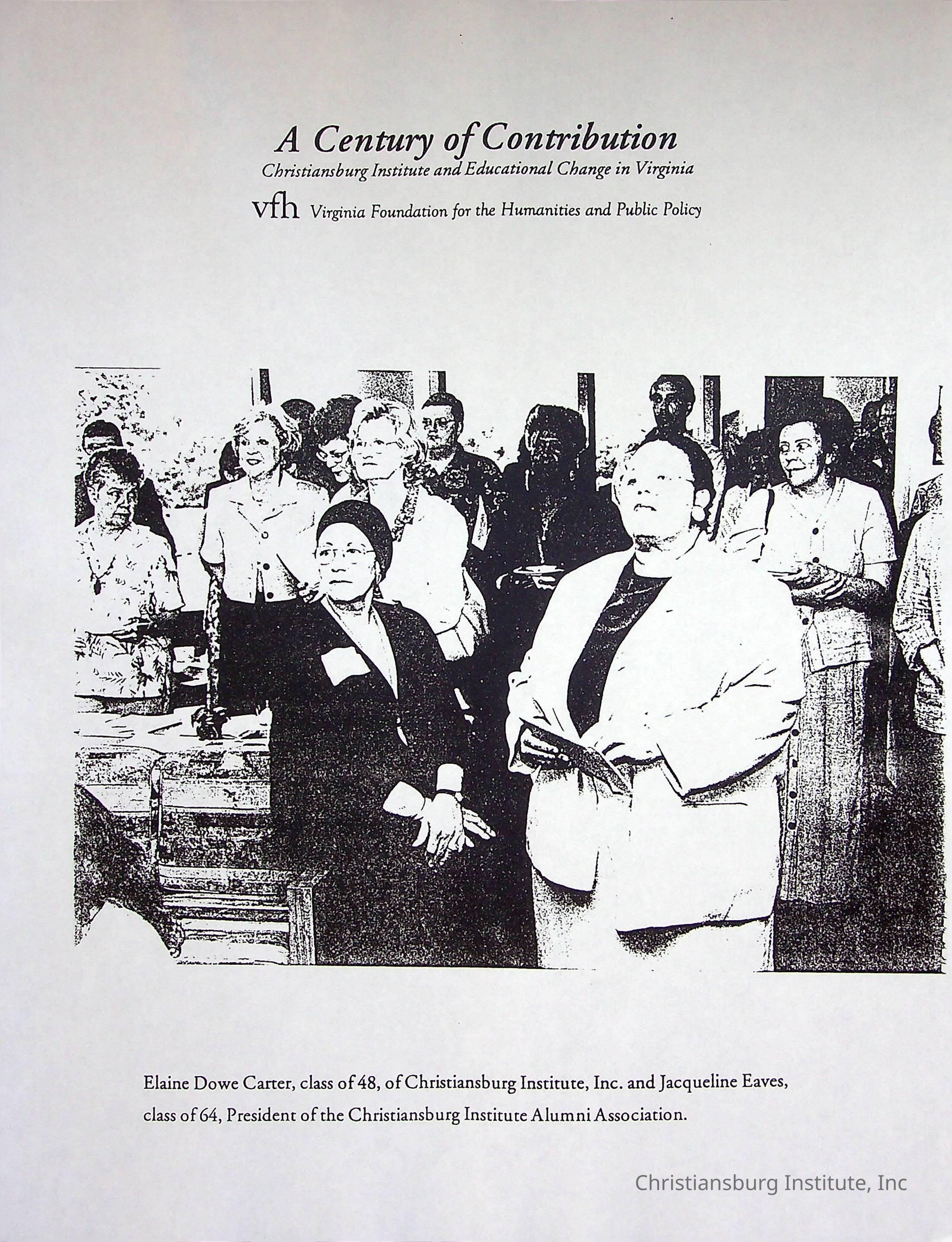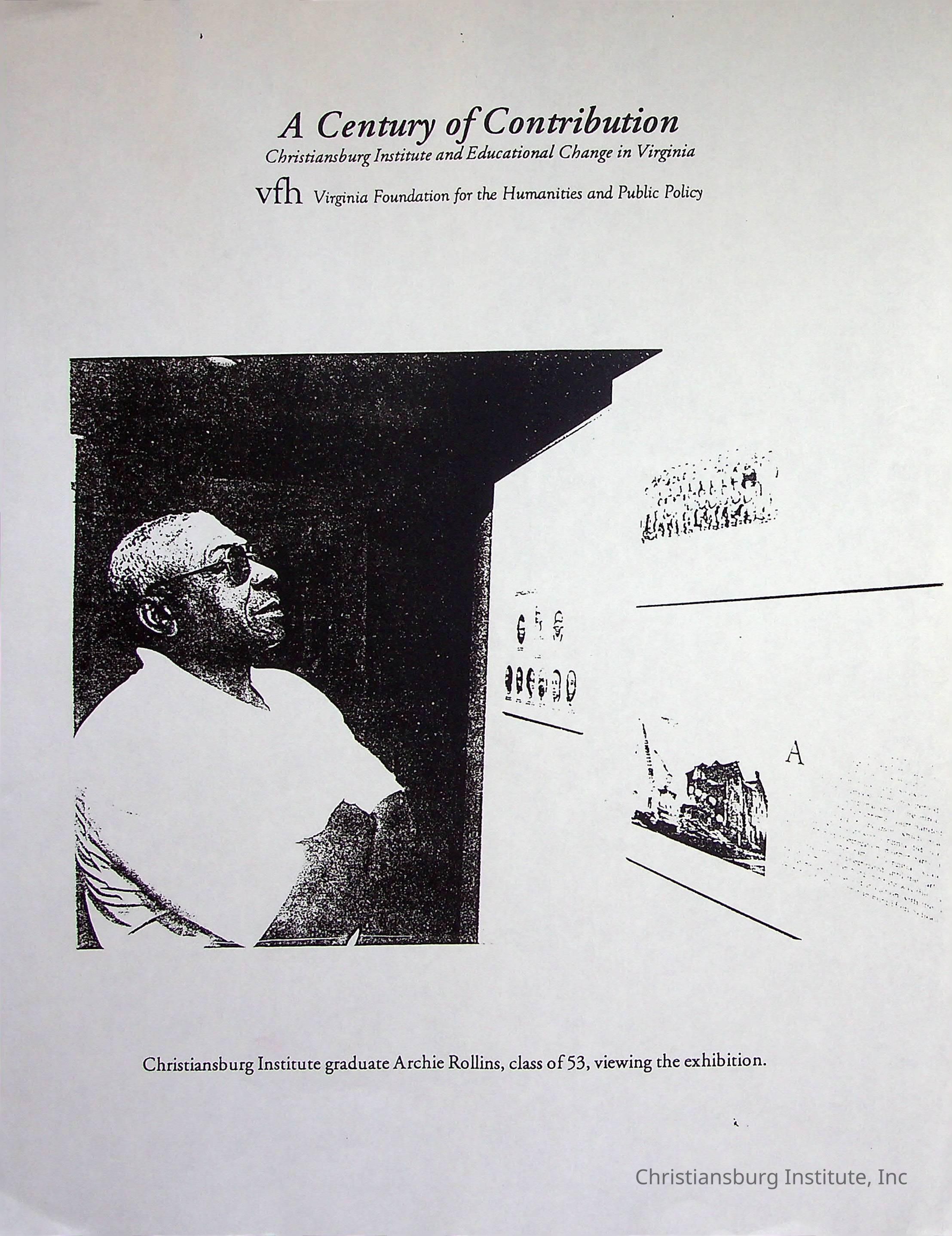 A photocopy version of the article titled, "A Century of Contribution: Christiansburg Institute and Educational Change in Virginia" from the Virginia Foundation of the Humanities and Public Policy.Collection