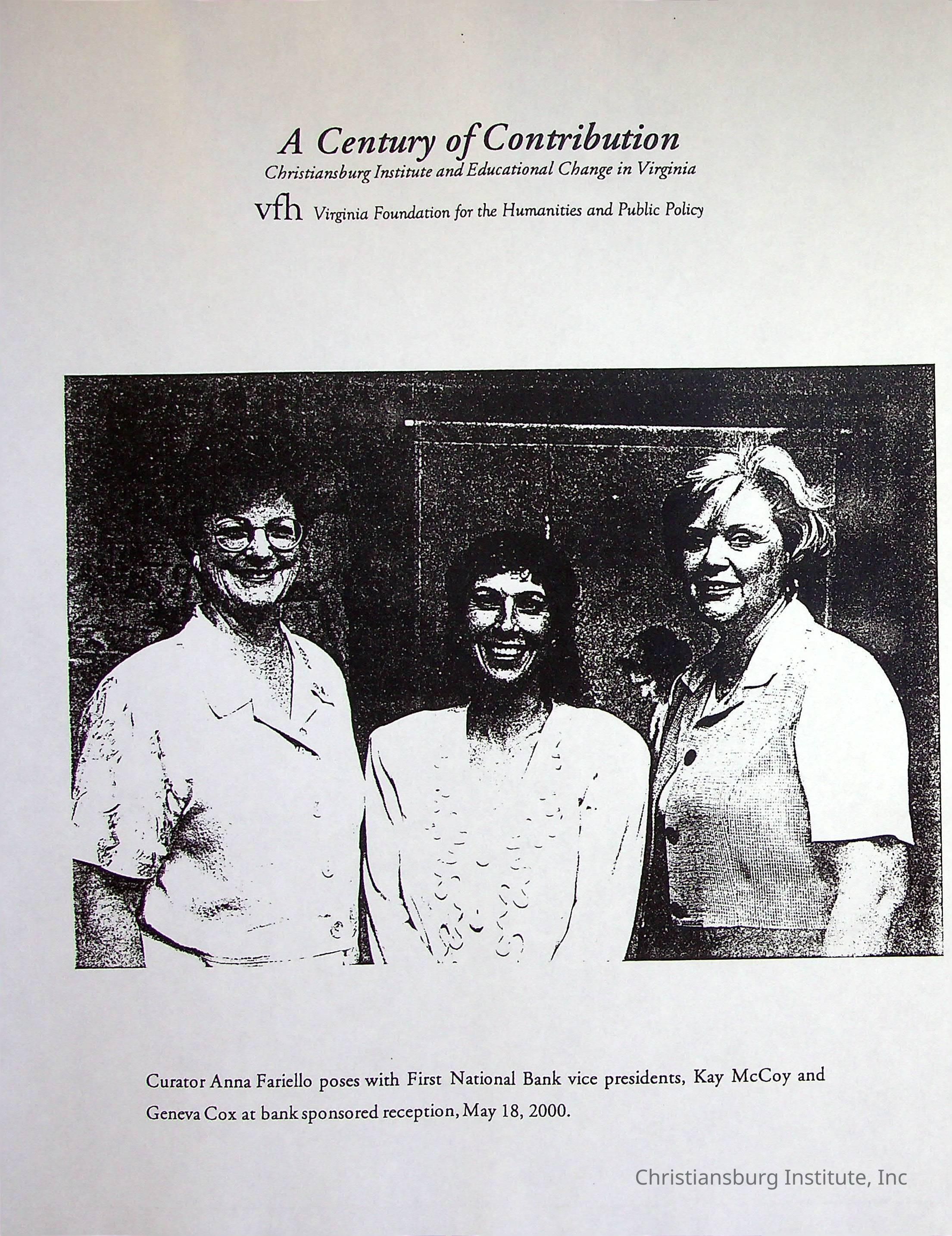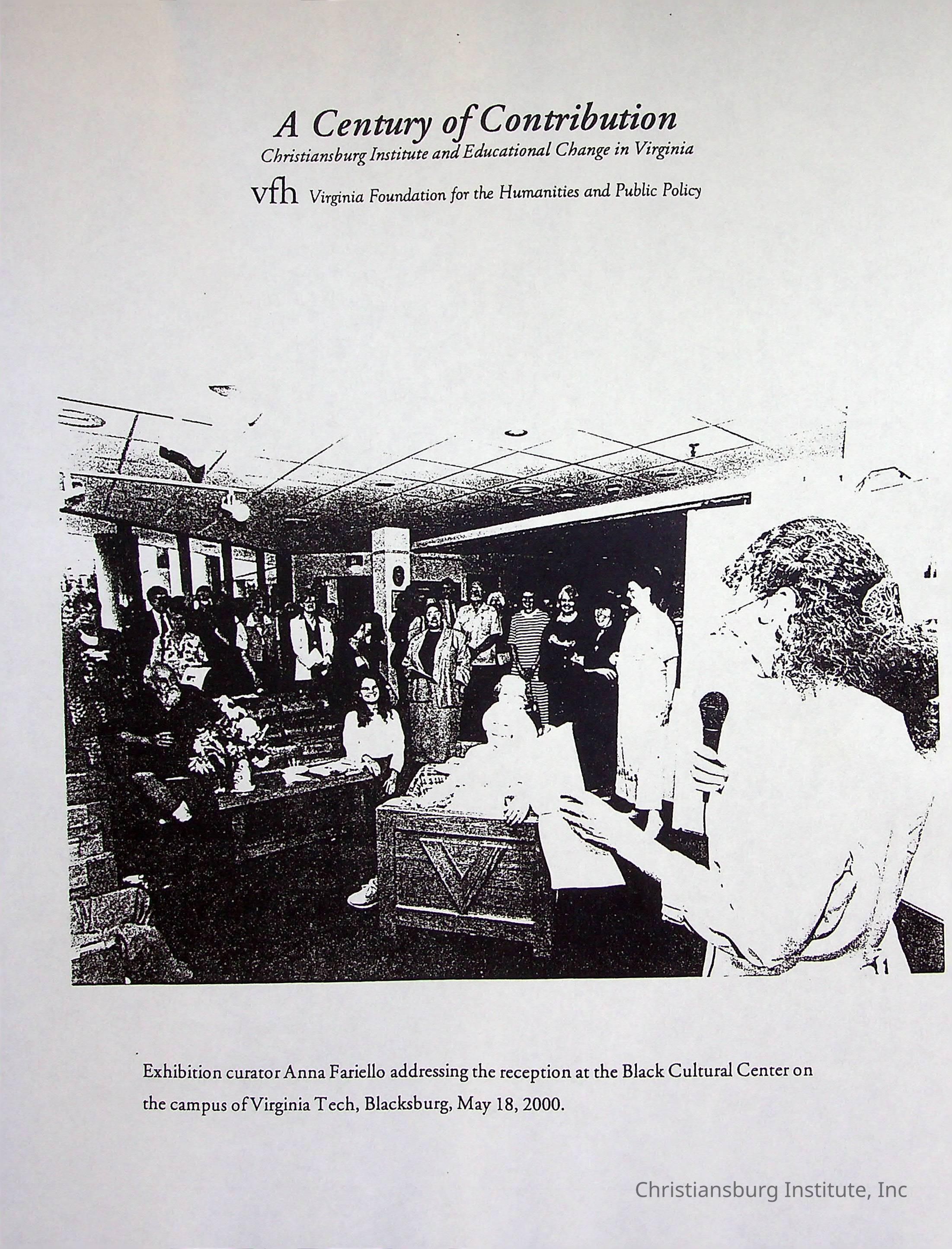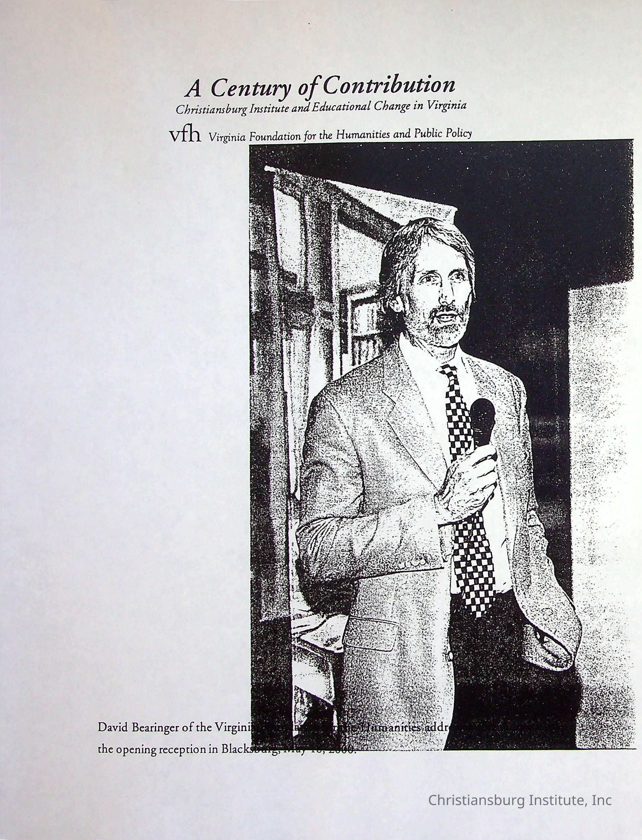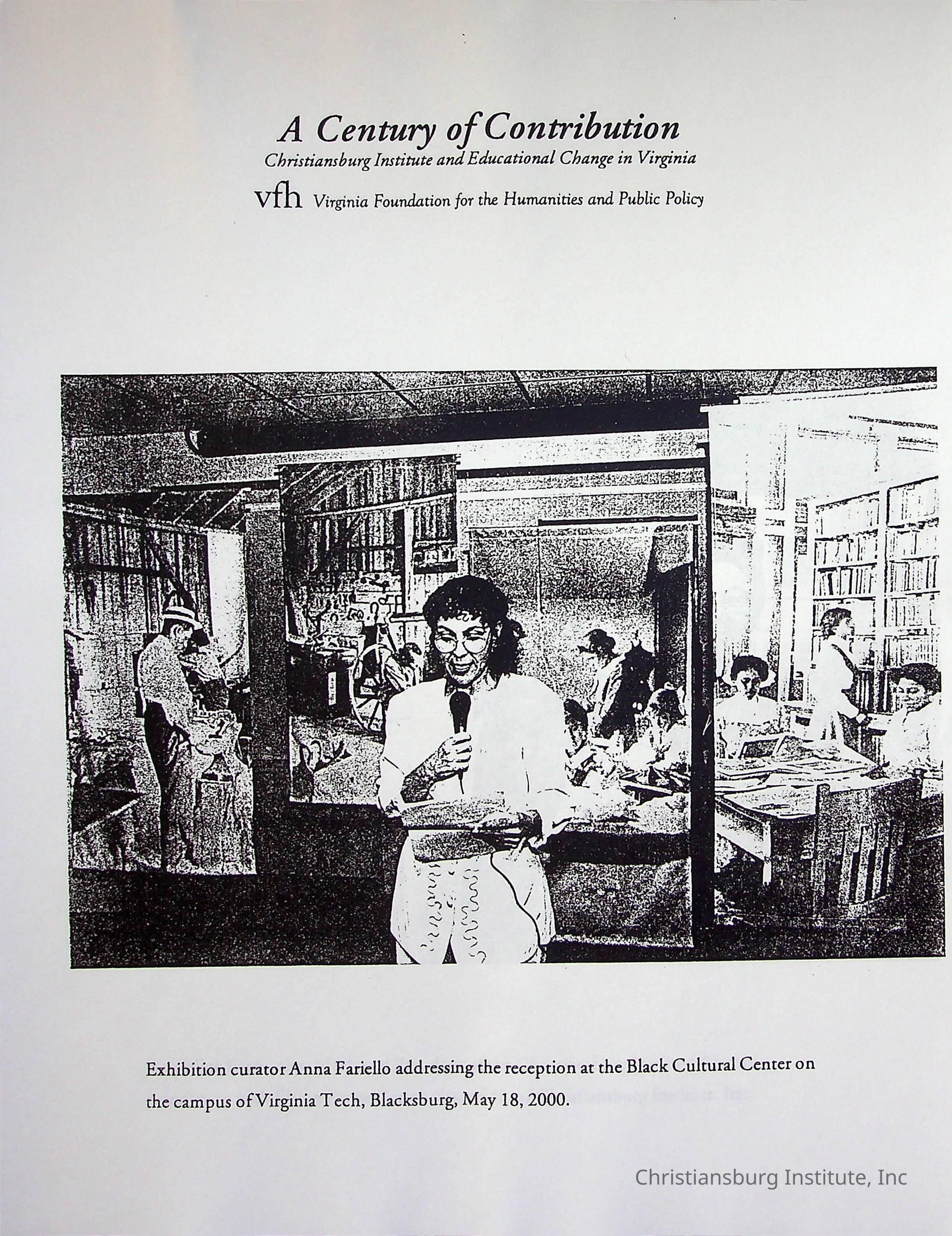 A Century of Contribution, Virginia Foundation for the Humanities and Public Policy, 2000 (photocopy)Description