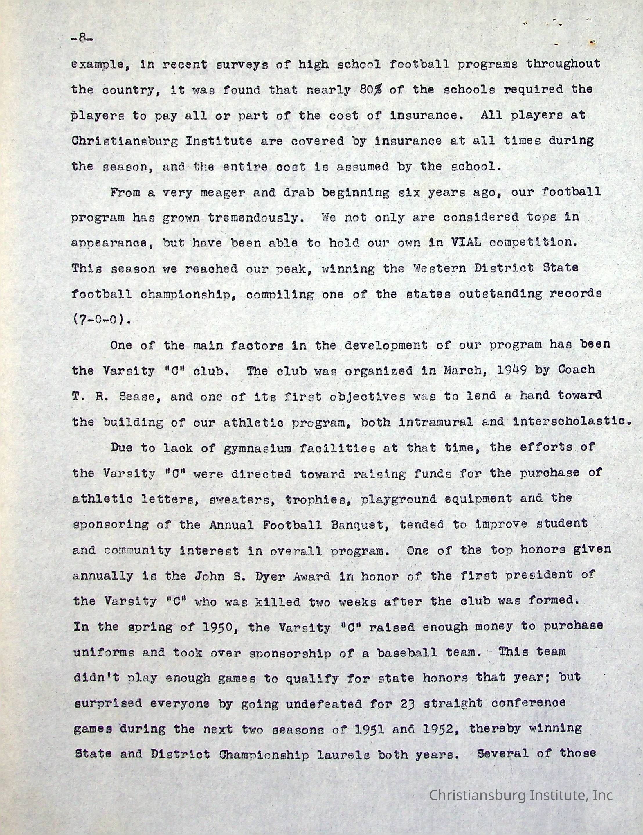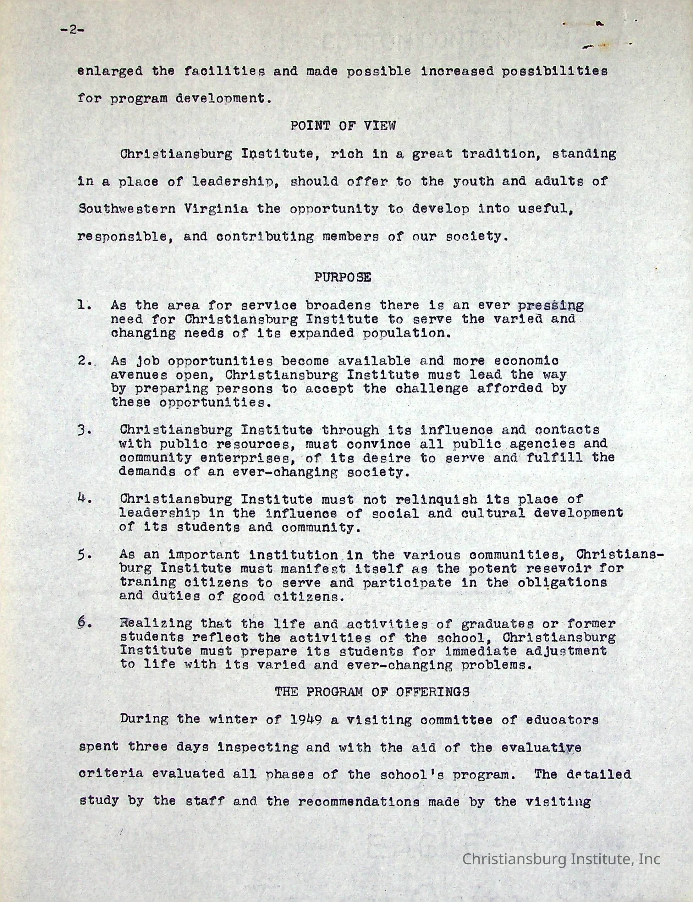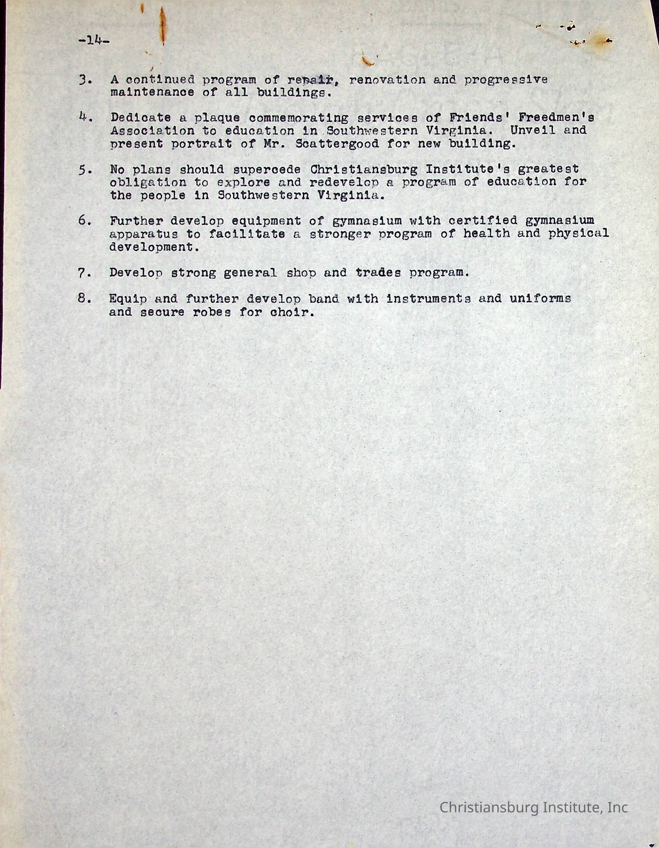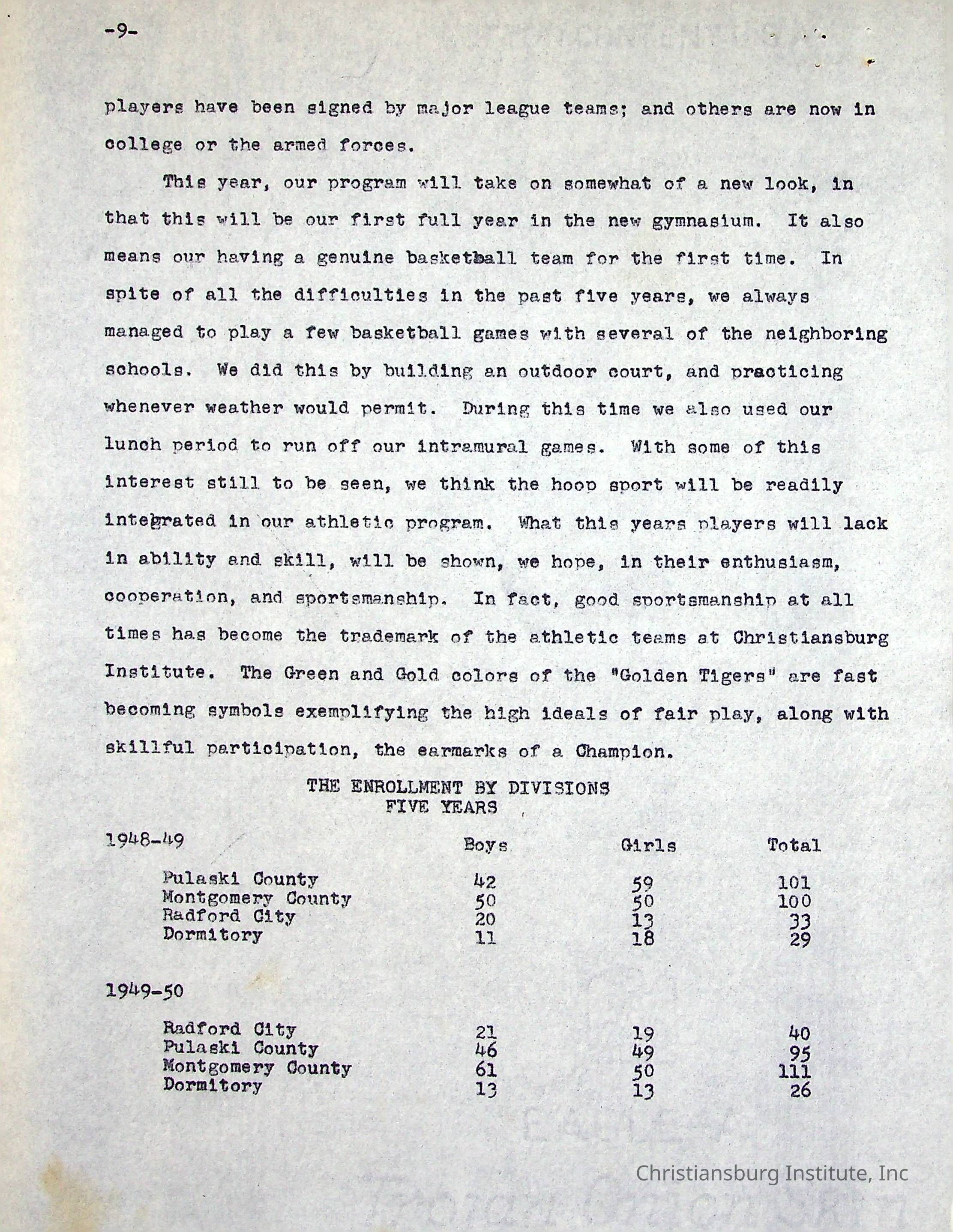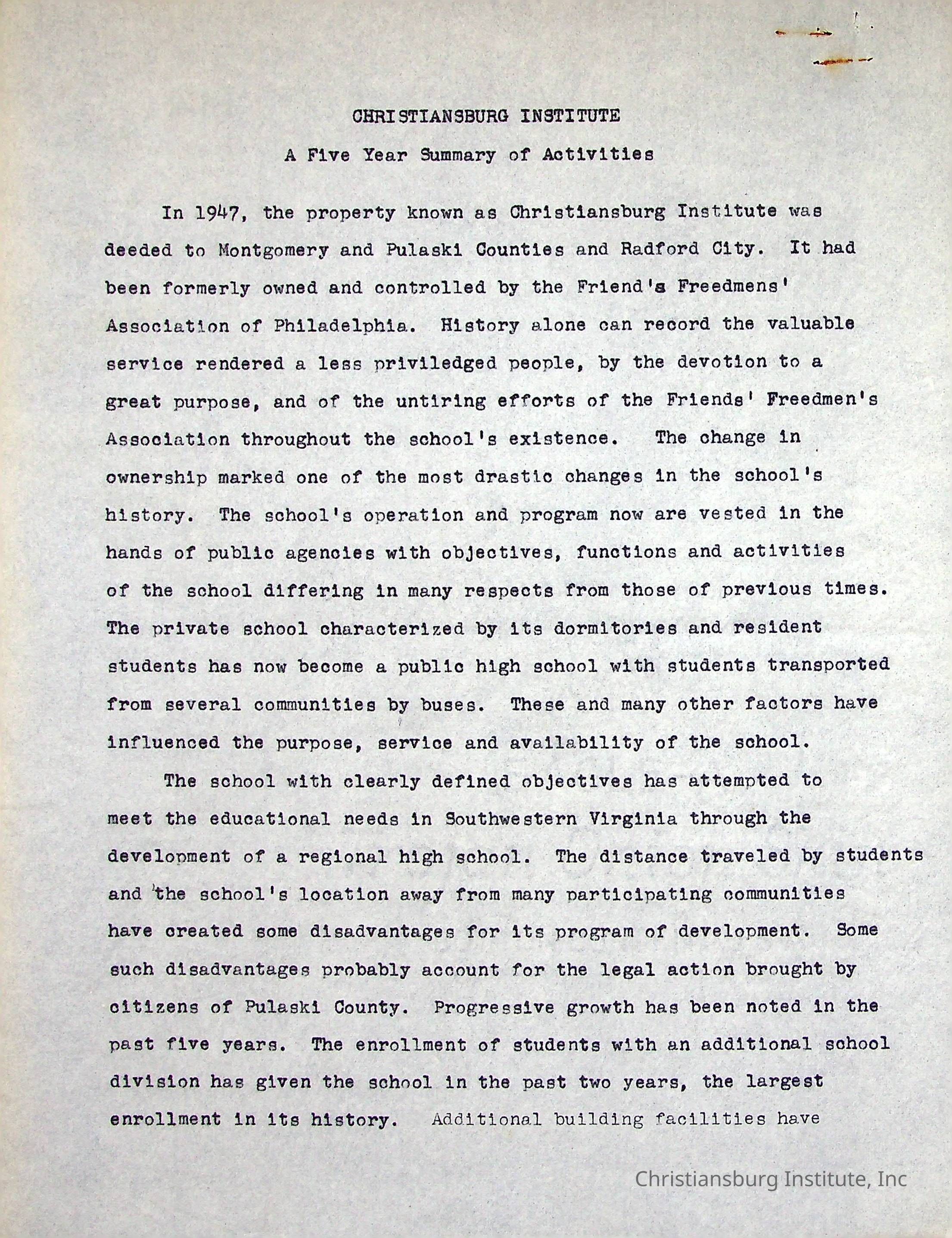 A Five Year Summary of Activities is a typed document written by Christiansburg Institute principal, John F. Banks in 1954.Collection