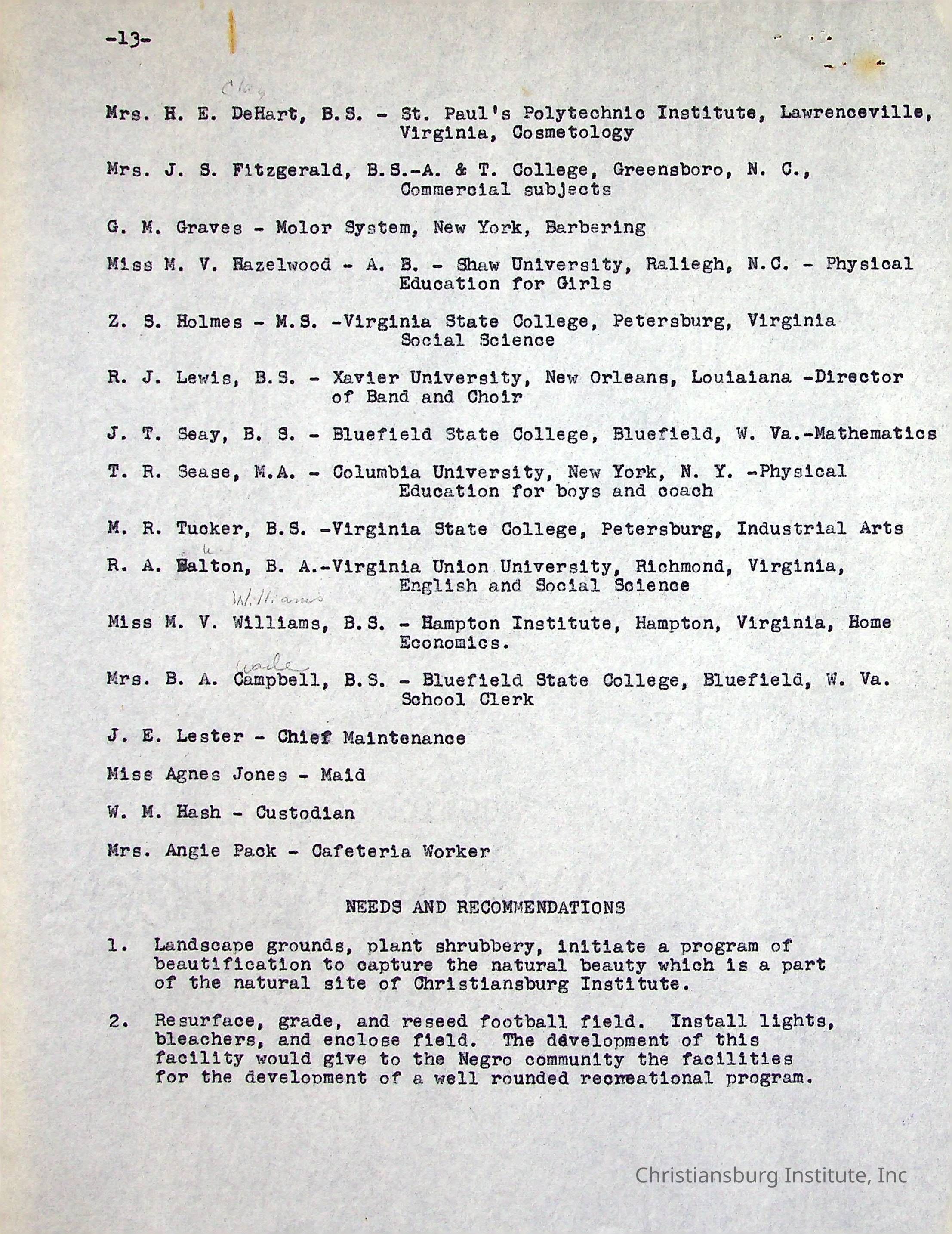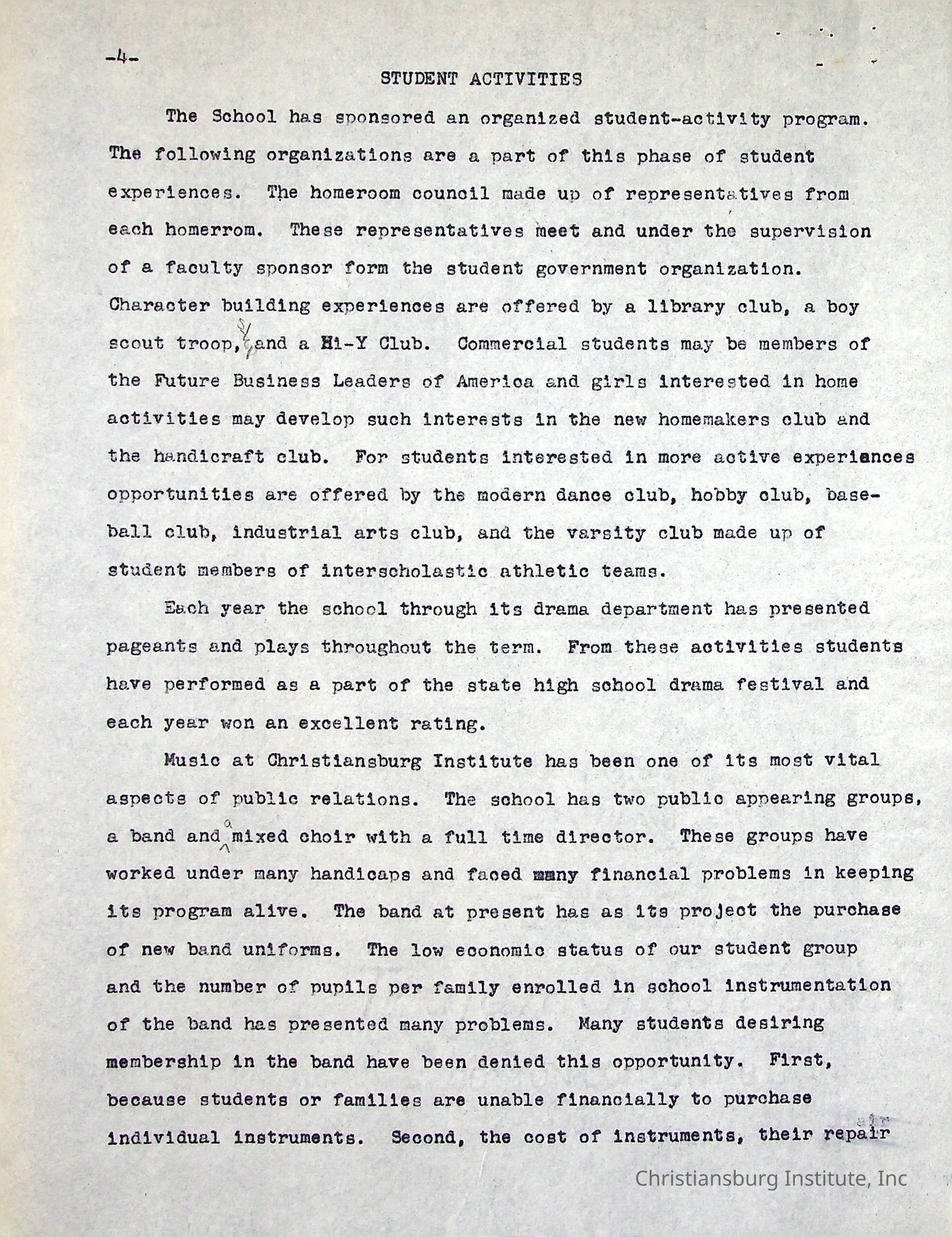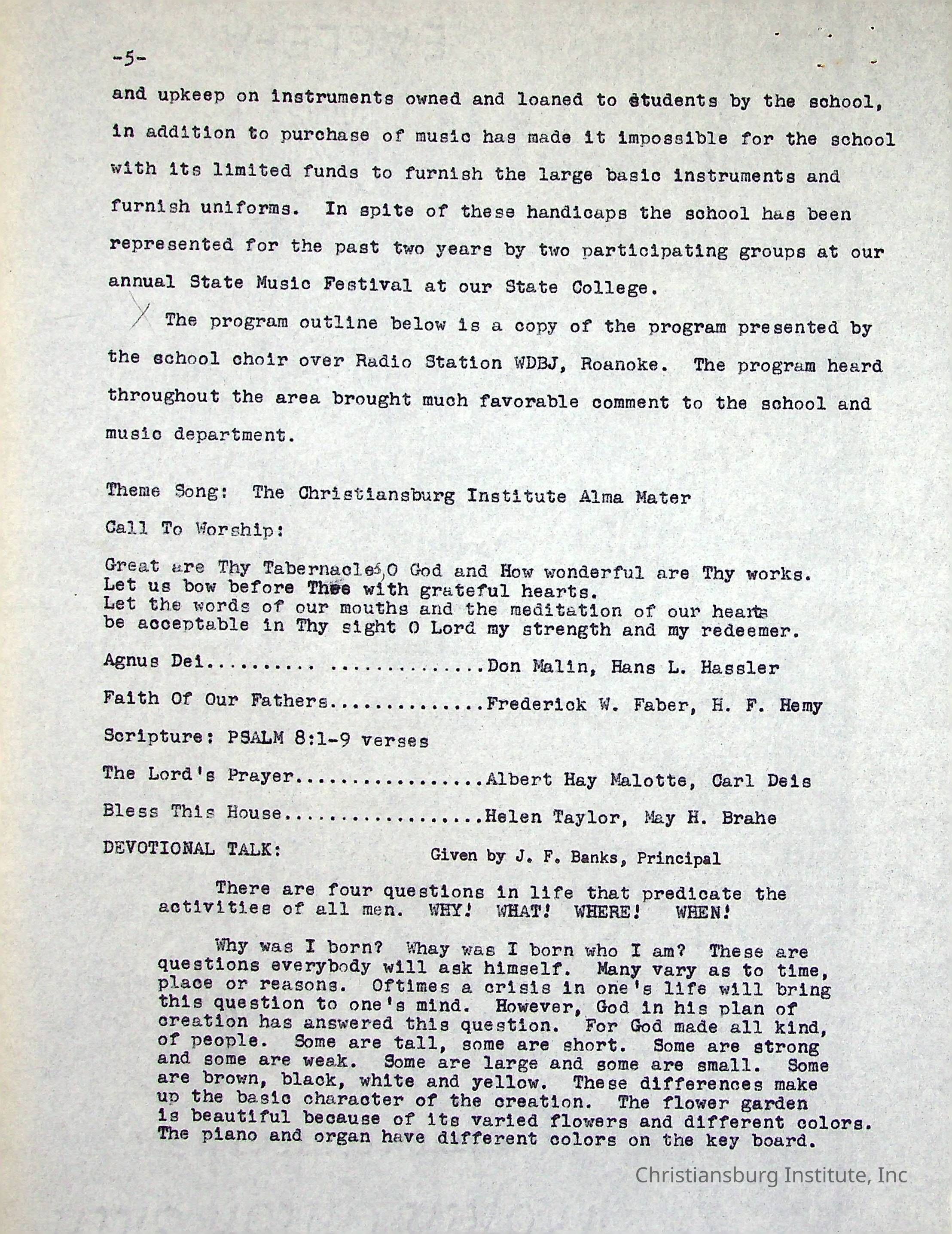 A Five Year Summary of Activities is a typed document written by Christiansburg Institute principal, John F. Banks in 1954.Creator