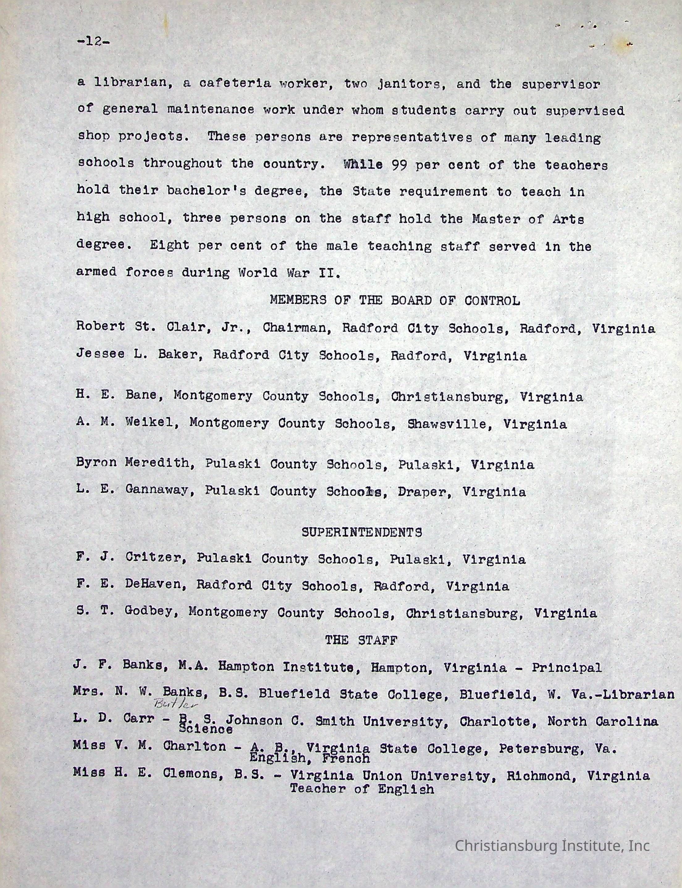 Copyright has been assigned to Christiansburg Institute Museum & Archives by Carlton Banks. For permission to publish materials created by the donor, contact CIMA@christiansburginstitute.com. Materials not created by John F. Banks may still be under copyright.