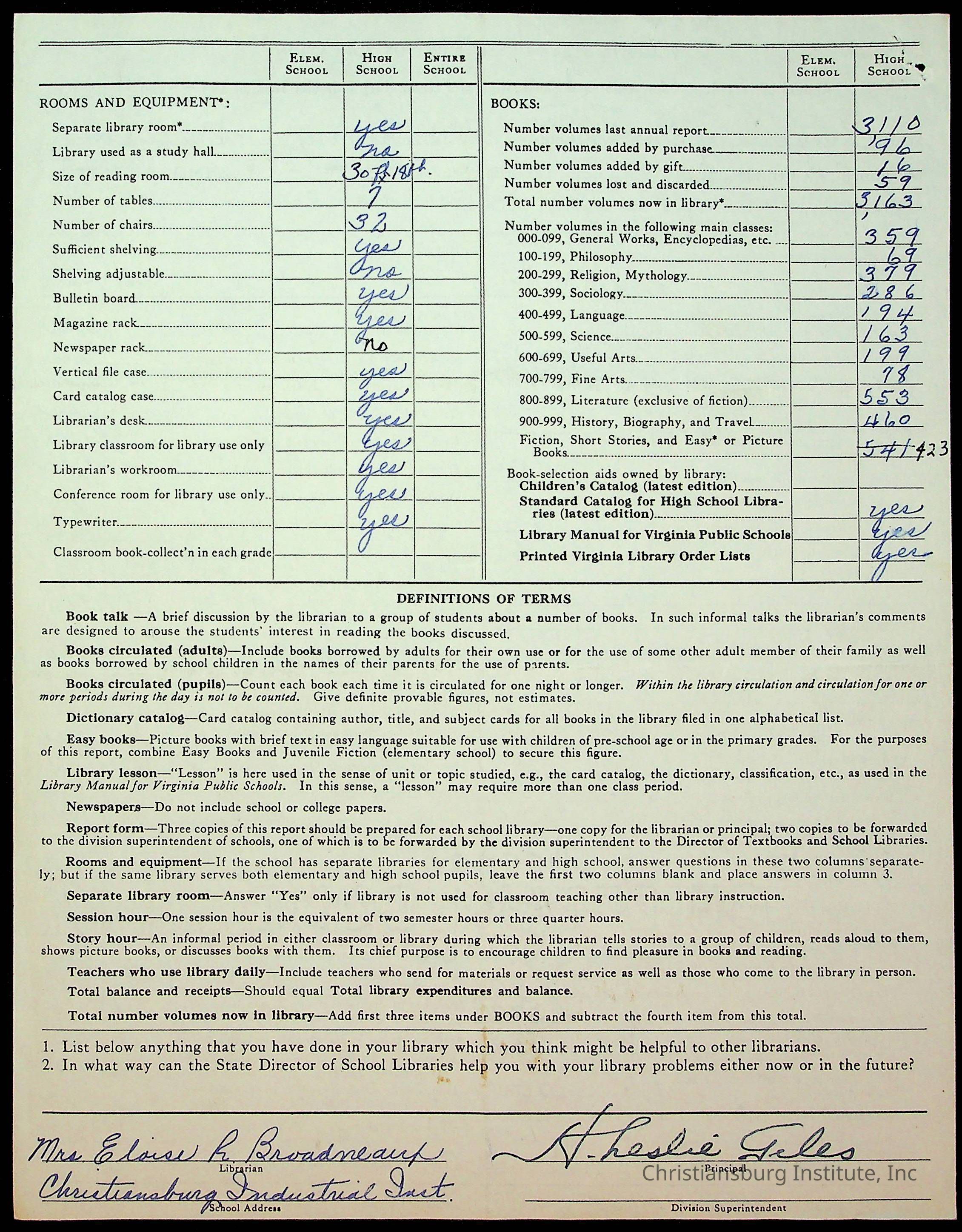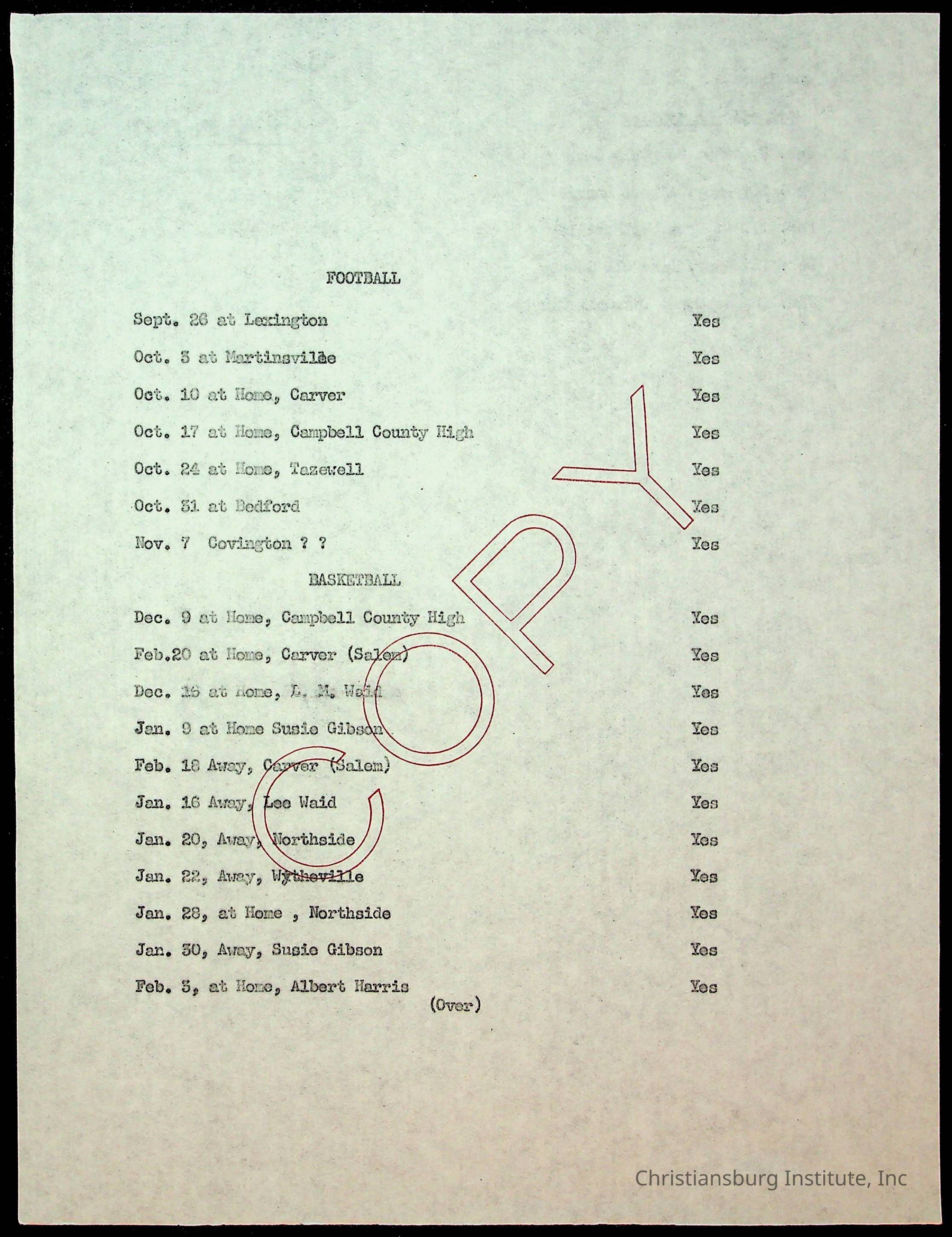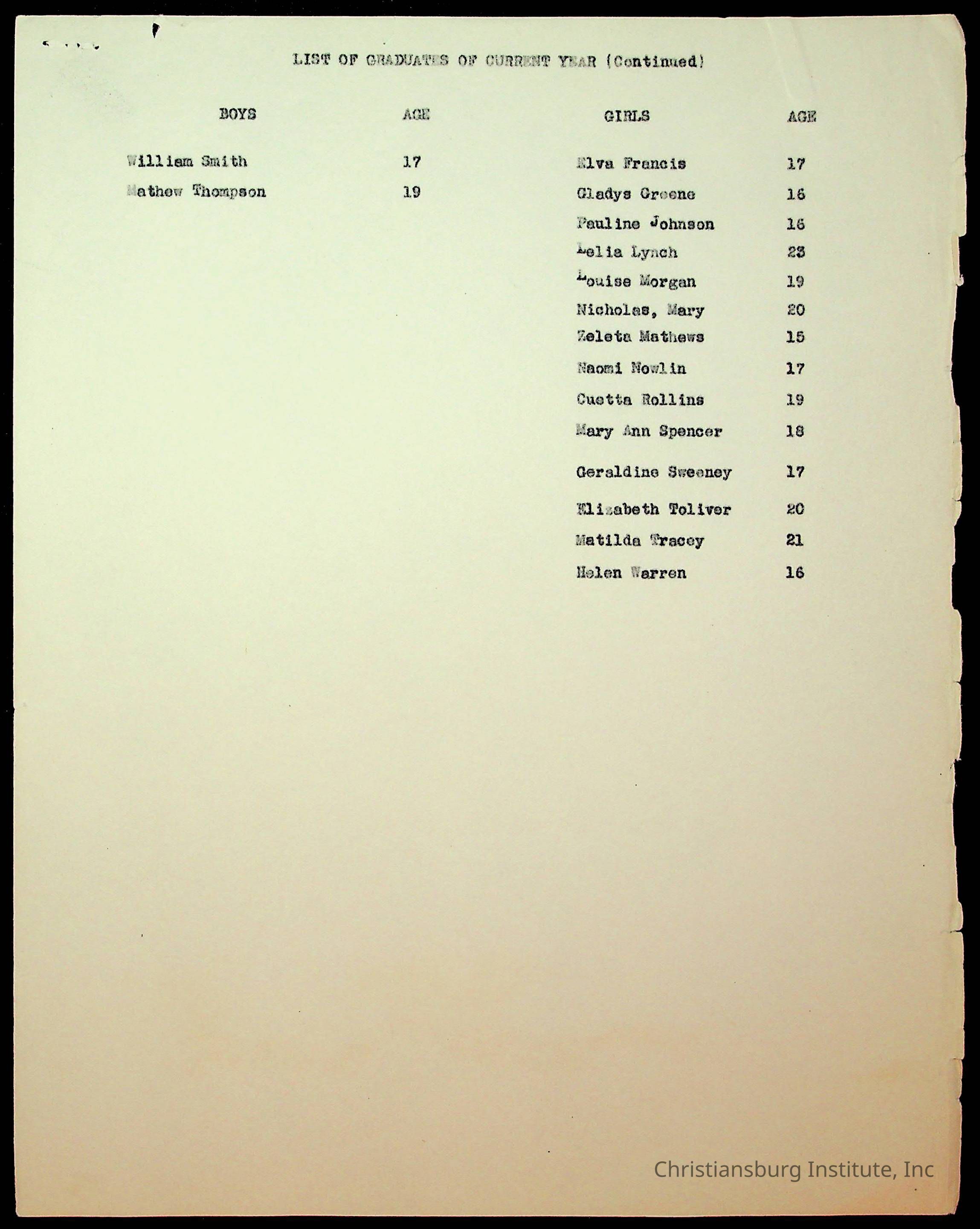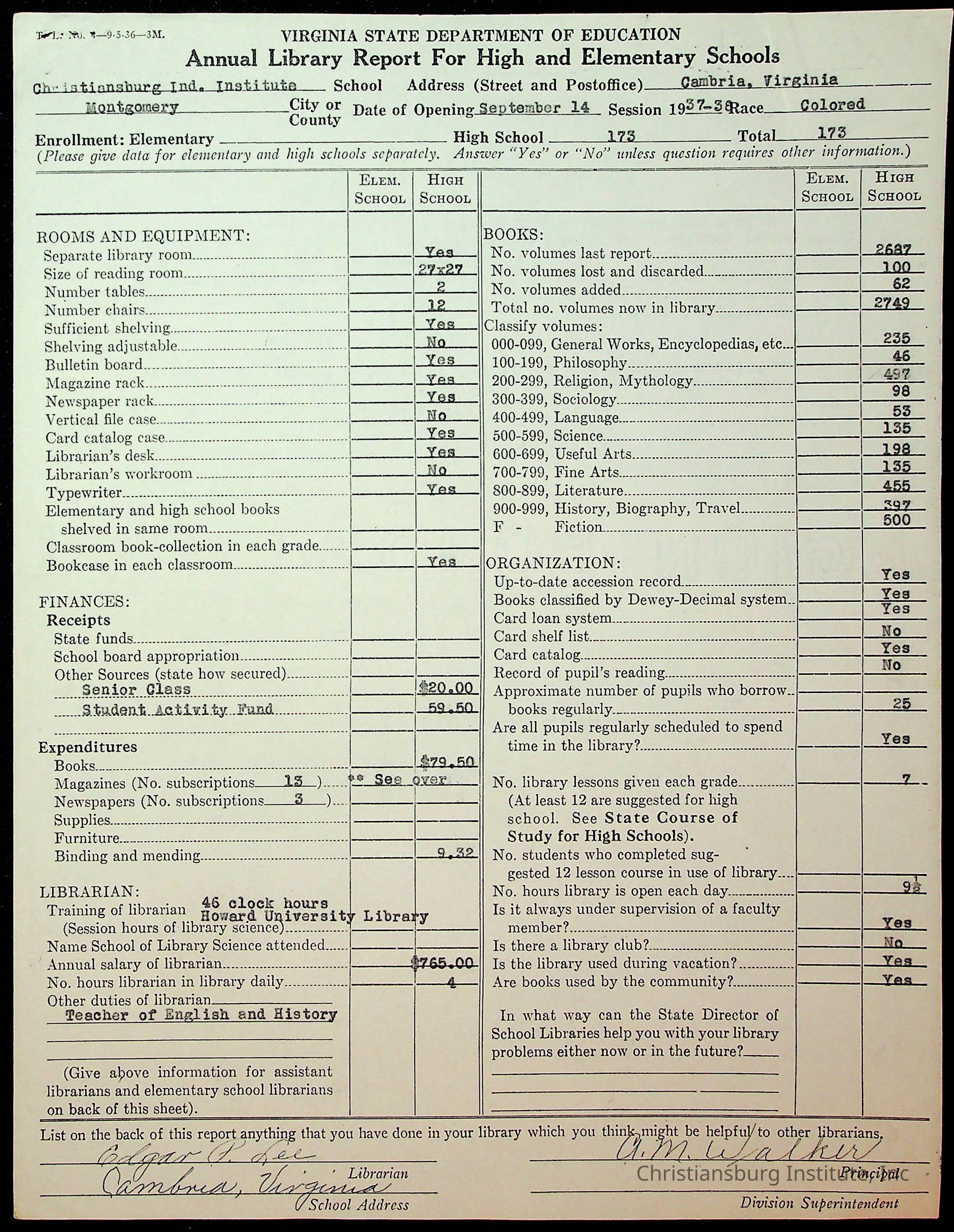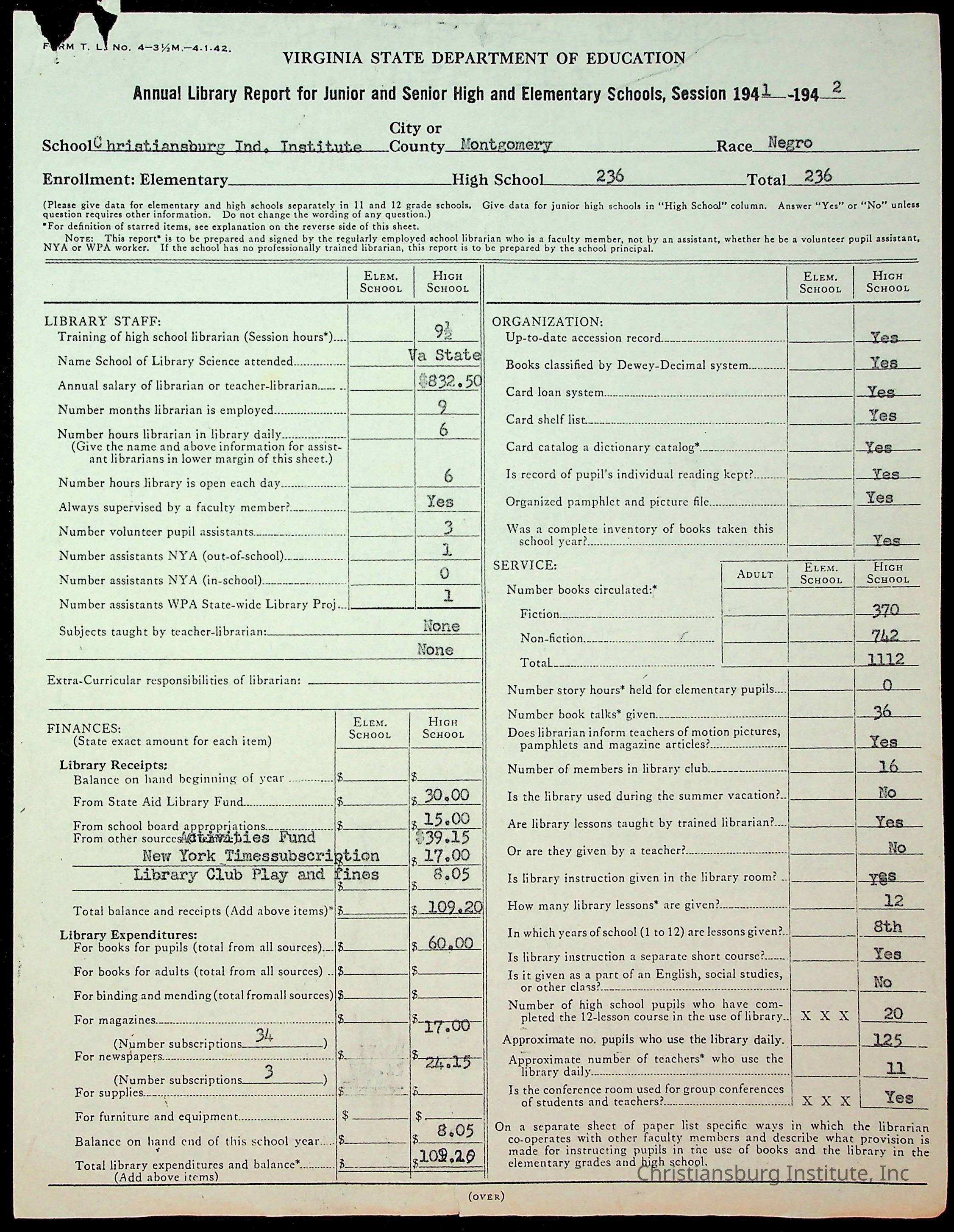 Copyright has been assigned to Christiansburg Institute Museum & Archives by Montgomery County Public Schools. For permission to publish materials created by the donor, contact CIMA@christiansburginstitute.com. Materials not created by Christiansburg Industrial Institute may still be under copyright.