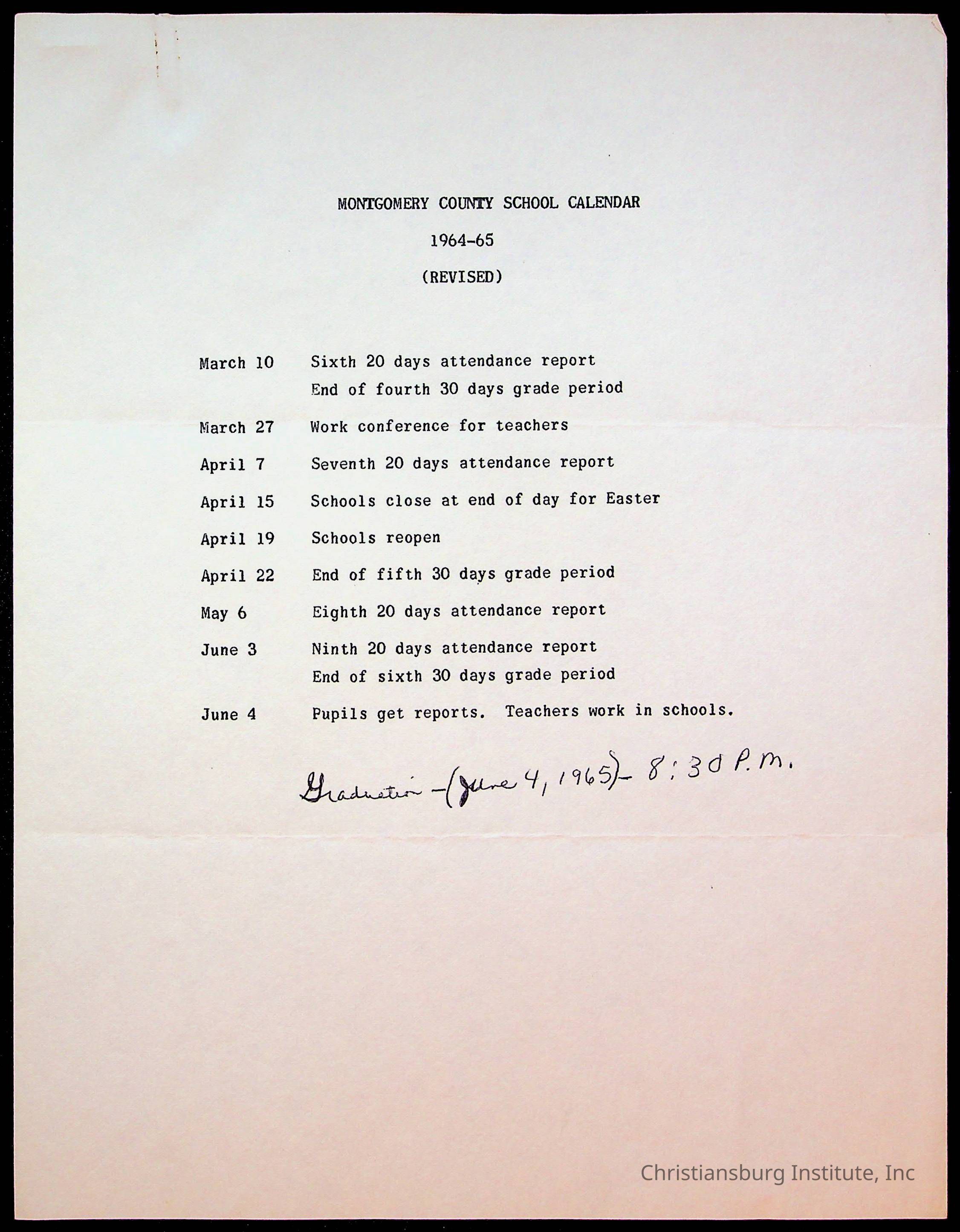 Copyright has been assigned to Christiansburg Institute Museum & Archives by Montgomery County Public Schools. For permission to publish materials created by the donor, contact CIMA@christiansburginstitute.com. Materials not created by Christiansburg Industrial Institute may still be under copyright.