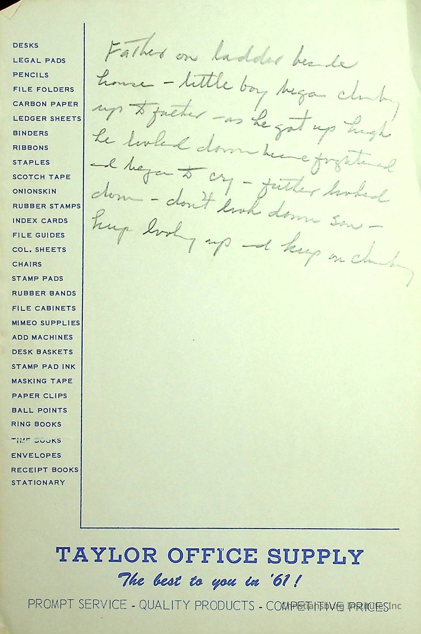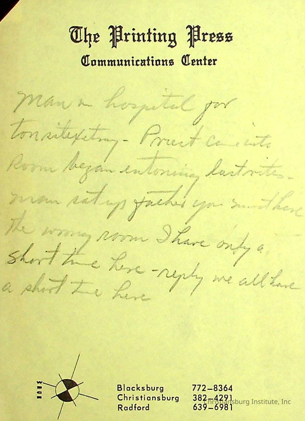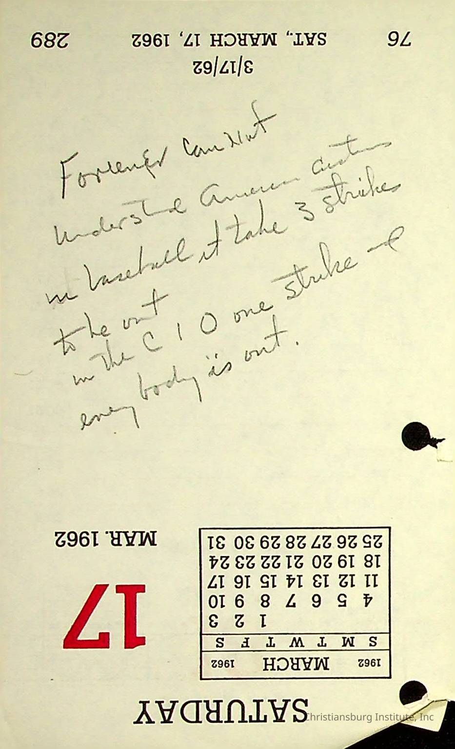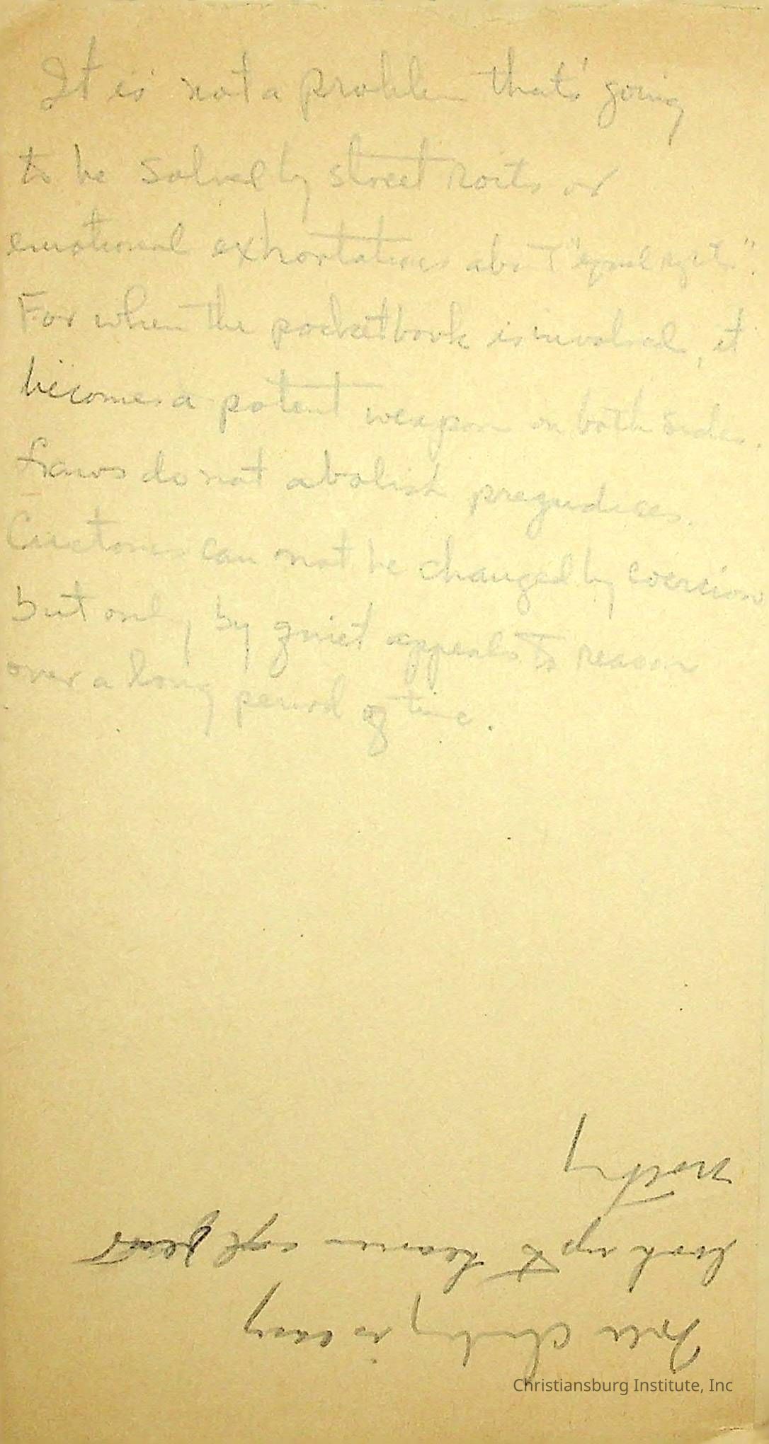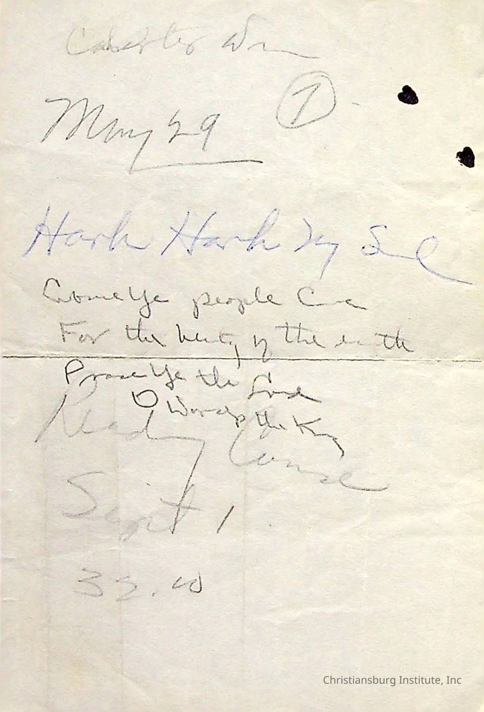 There are dozens of notes written by Principal Joseph F. Banks.  They appear to mostly be ideas for his sermons and writings.  They are jotted down on scraps of paper and are all undated. A series of various notes written and kept by Christiansburg Institute principal, John F. Banks, circa 1950s-1960s.Collection