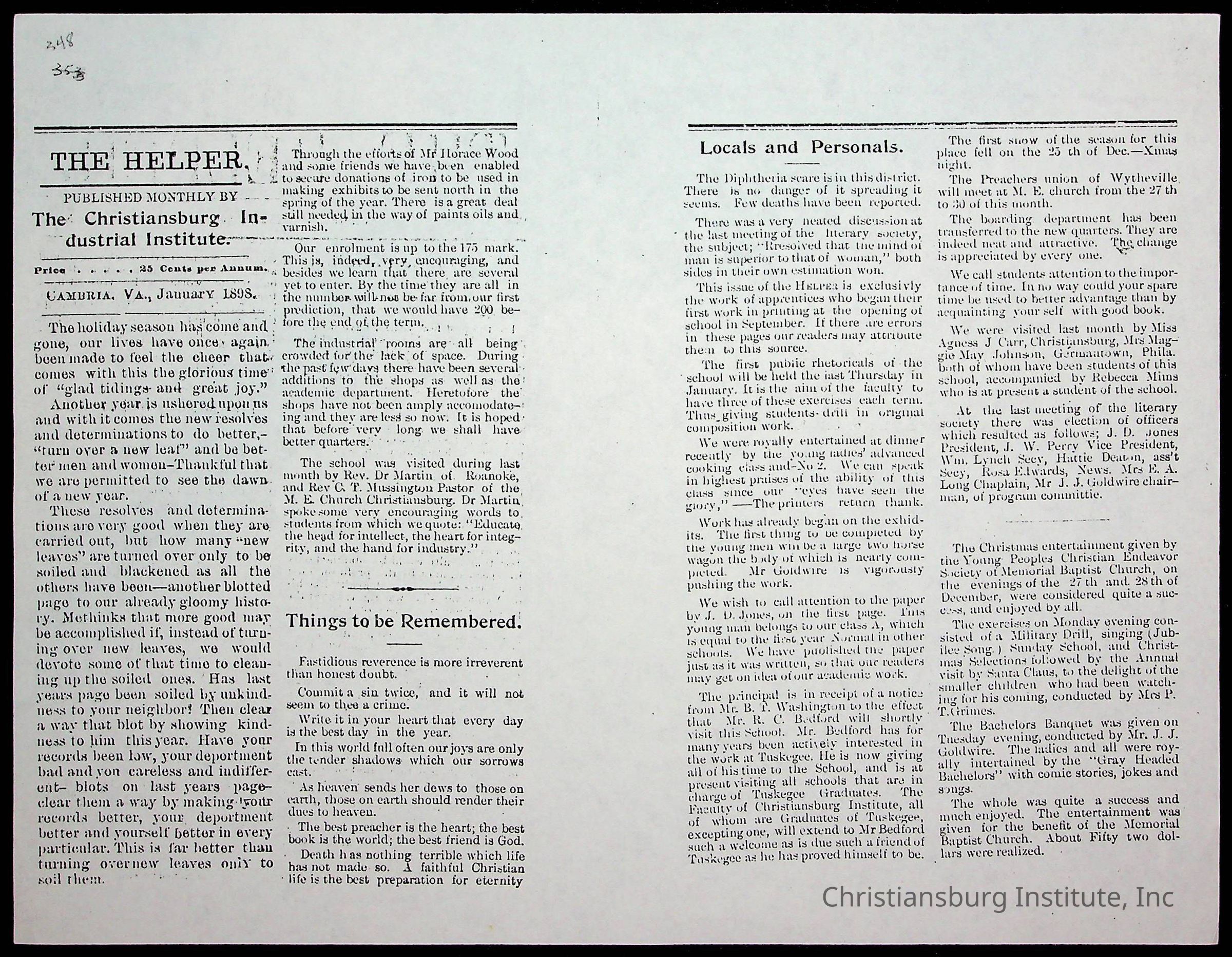 Copyright has been assigned to Christiansburg Institute Museum & Archives by Amanda DeHart. For permission to publish materials created by the donor, contact CIMA@christiansburginstitute.com. Materials not created by Amanda DeHart may still be under copyright.