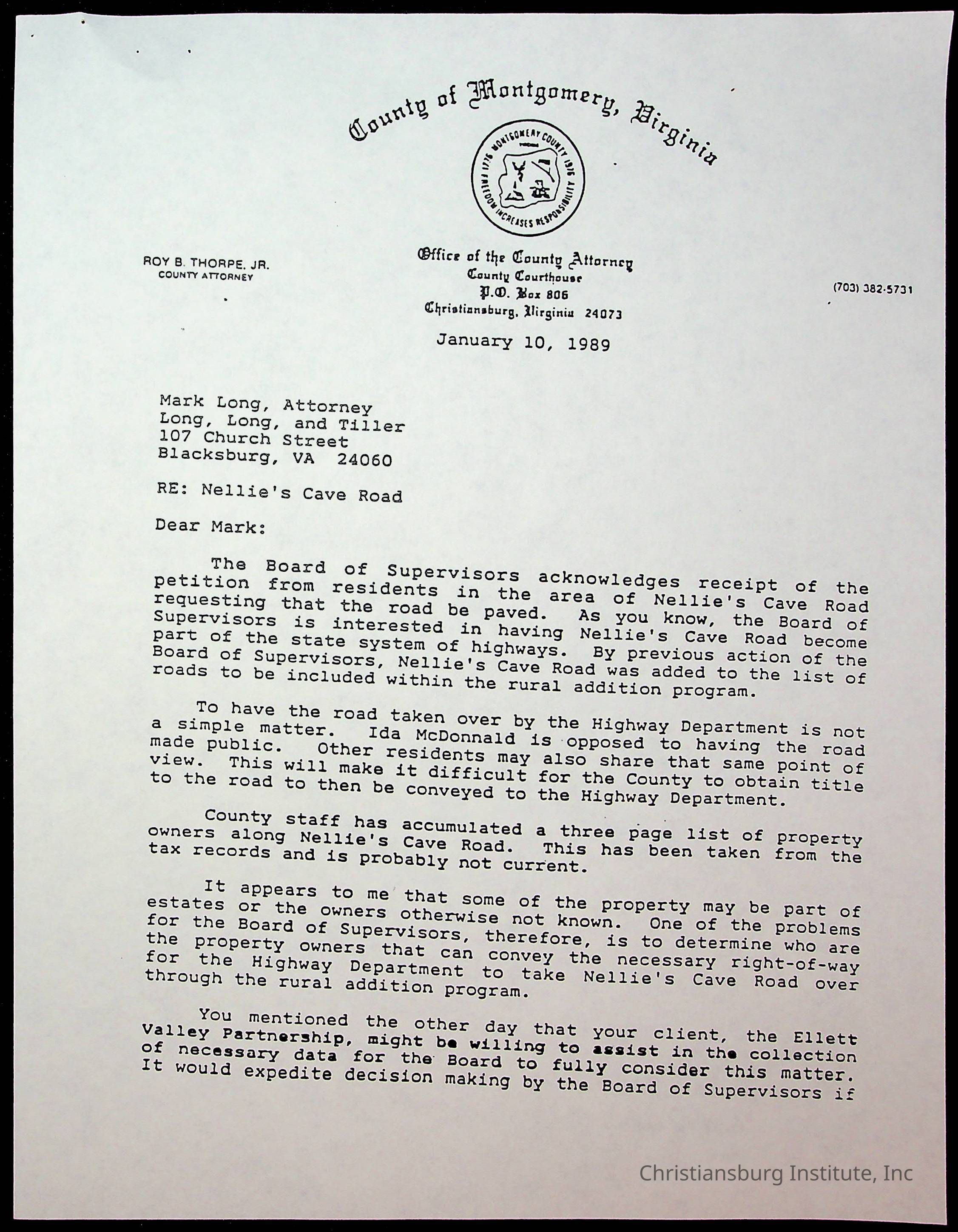Ellett Valley Associates, Hess, Ann L., Thomas, Betty S., Jablonski, Henry F., Elandeer, Gary C., Thorpe, Roy B JR, Fine, Elizabeth C., Montgomery County