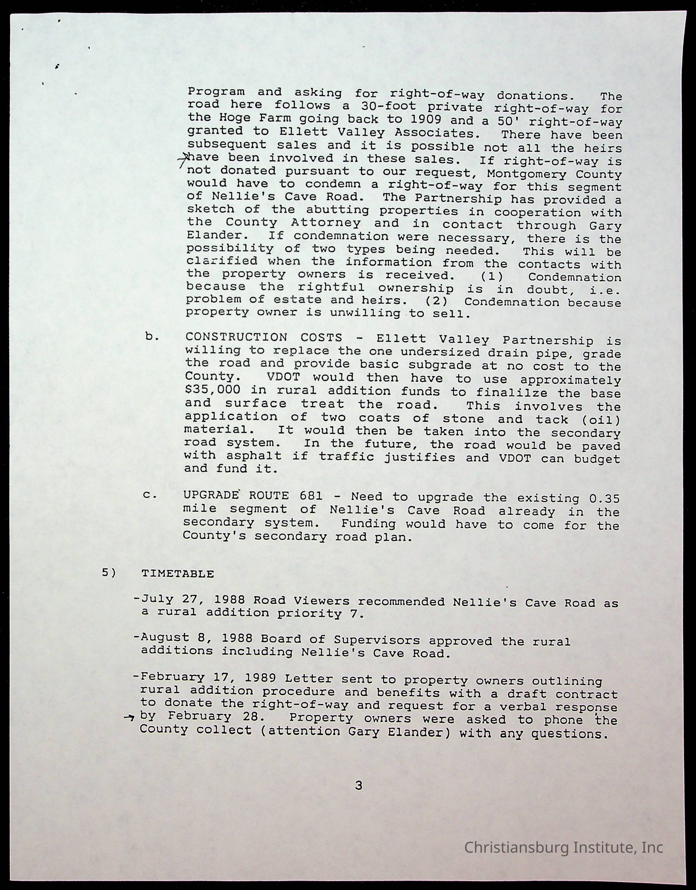 An archive of memos that are about Nellies Cave and the road project, dated 1980s and complied by Elizabeth Fine.