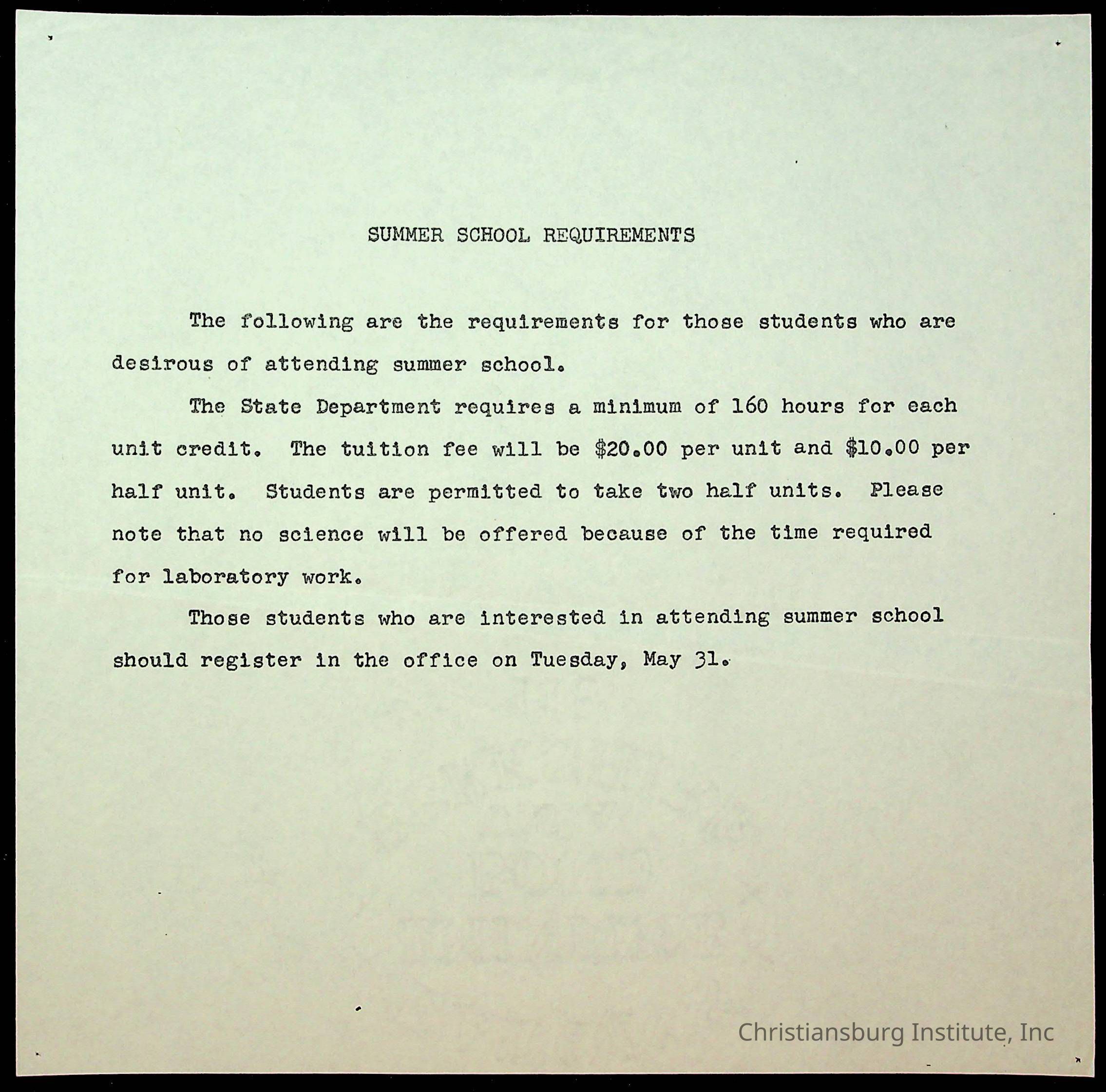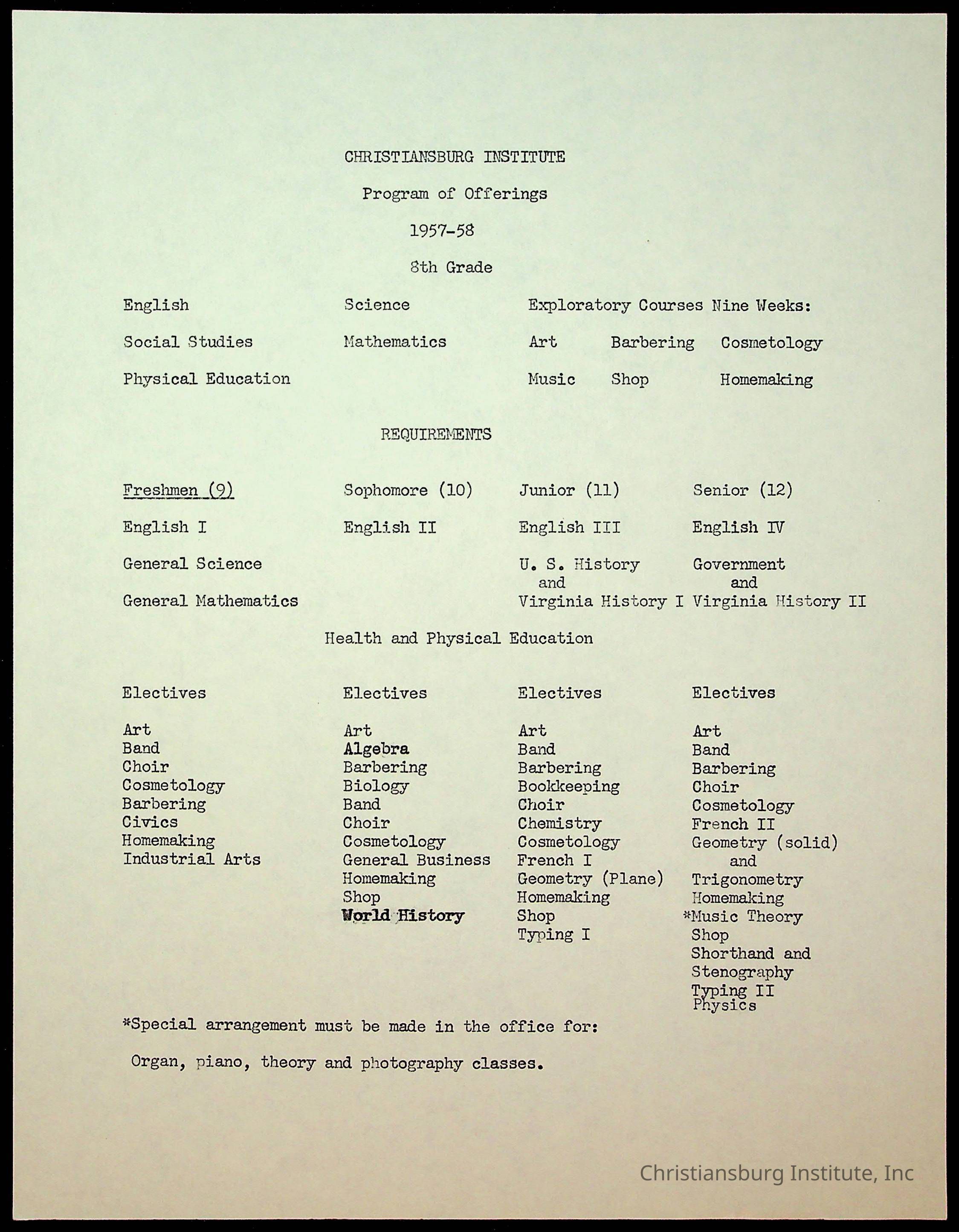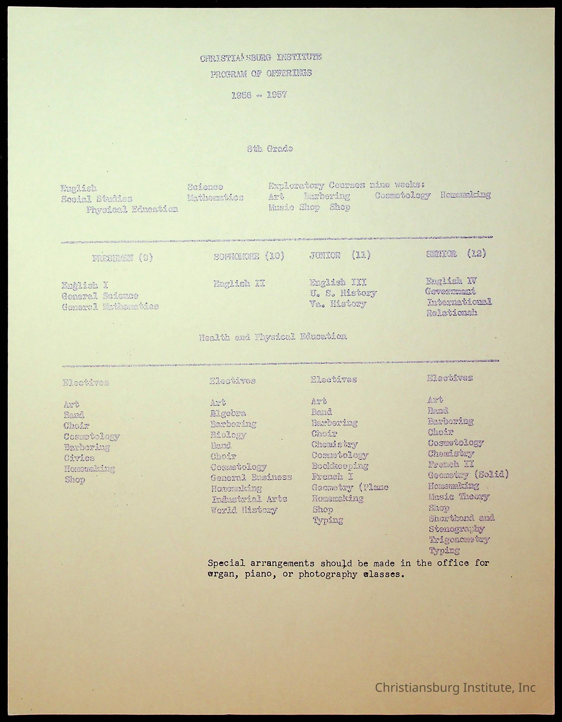 Copyright has been assigned to Christiansburg Institute Museum & Archives by Montgomery County Public Schools. For permission to publish materials created by the donor, contact CIMA@christiansburginstitute.com. Materials not created by Christiansburg Industrial Institute may still be under copyright.