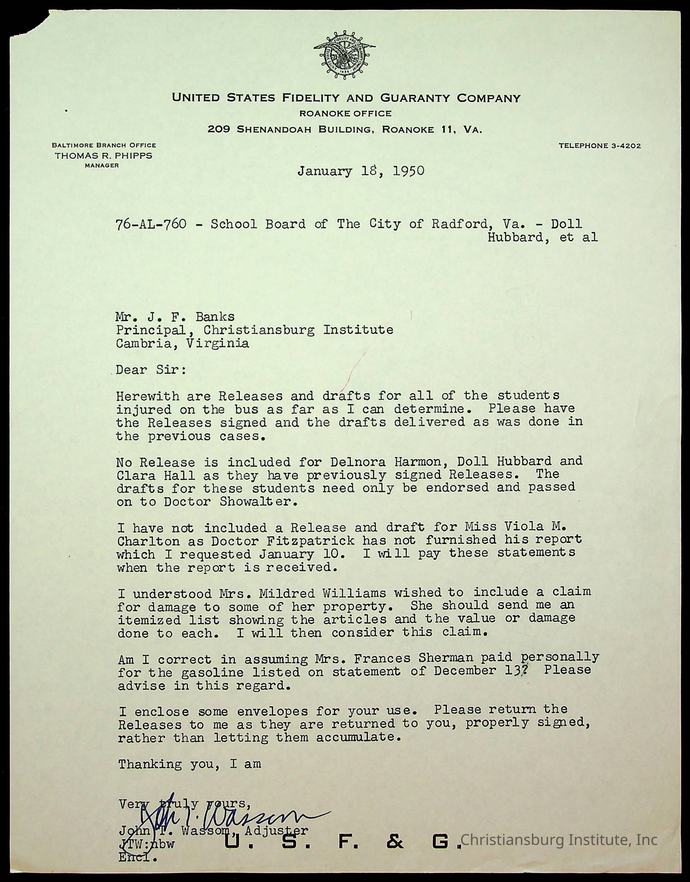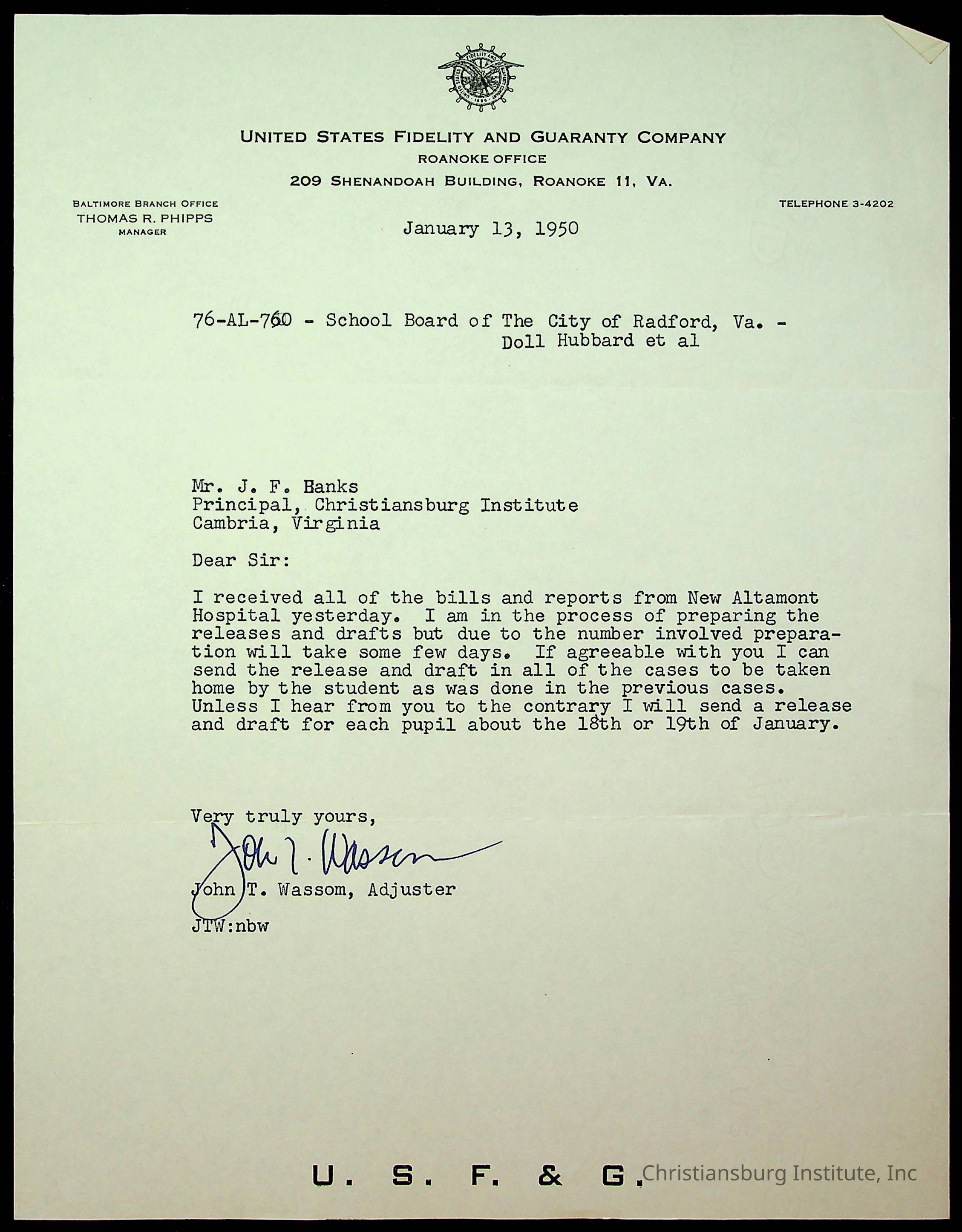 Banks, John F., Christiansburg Institute, New Altamont Hospital, United States Fidelity and Guaranty CompanyRelated Places