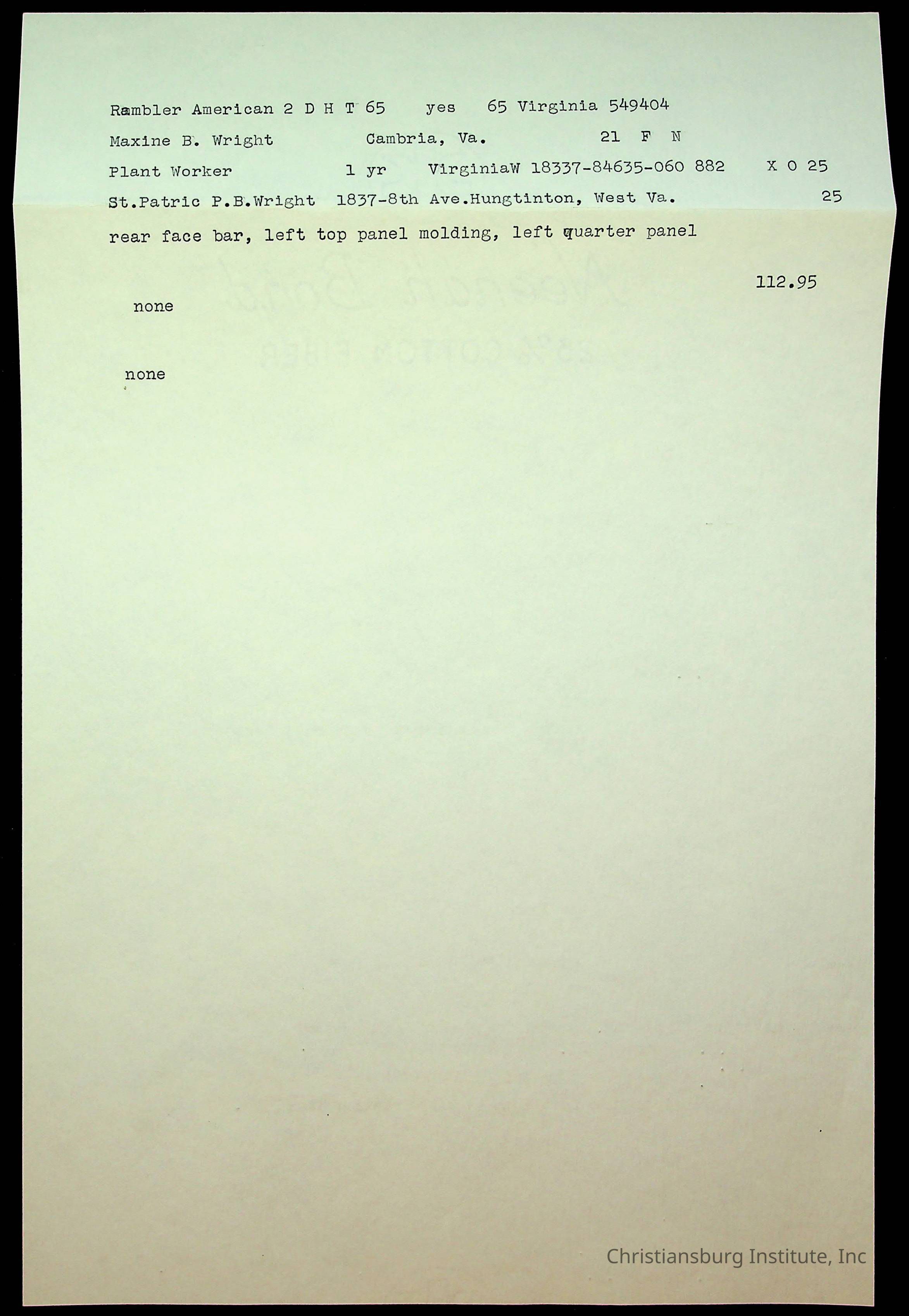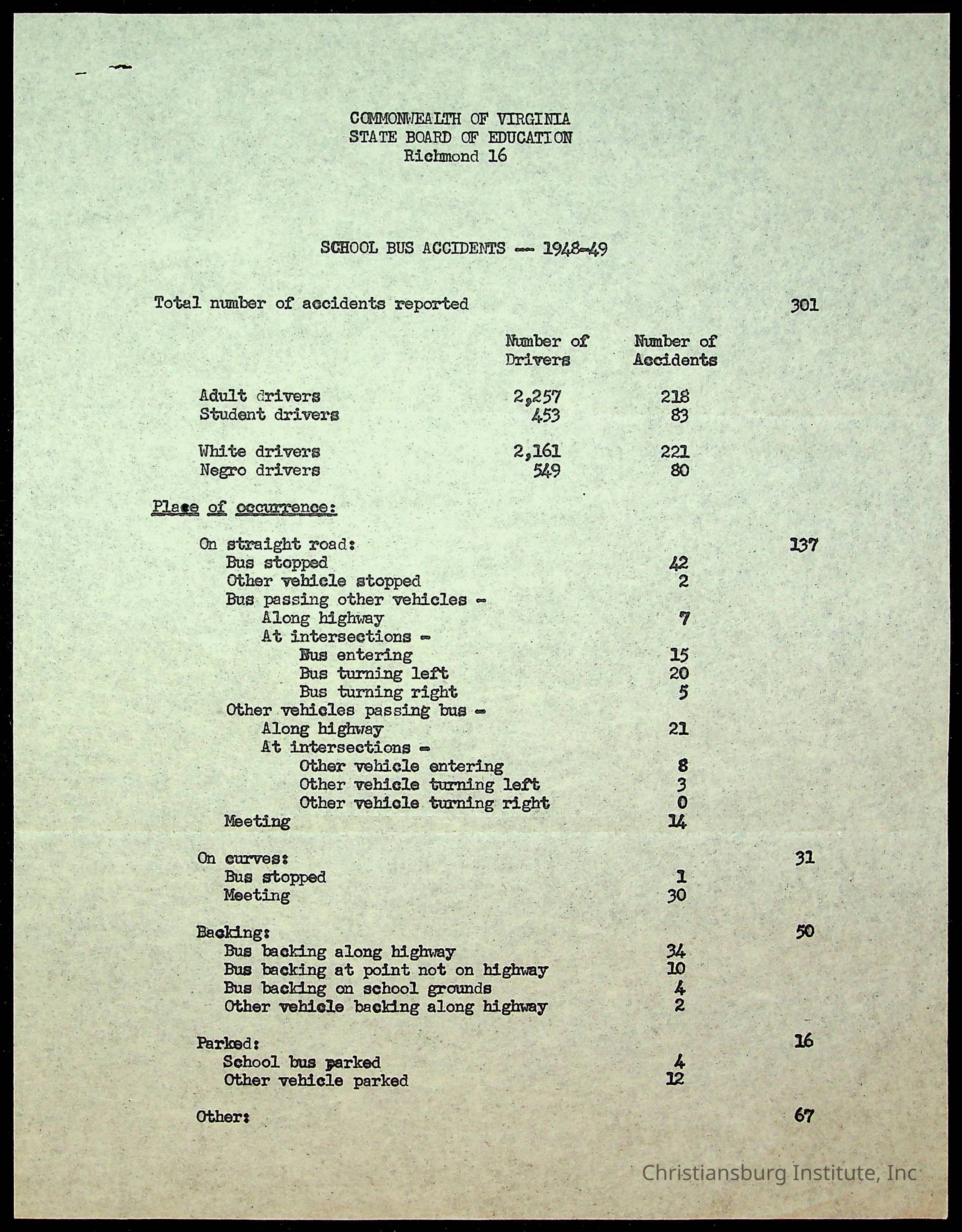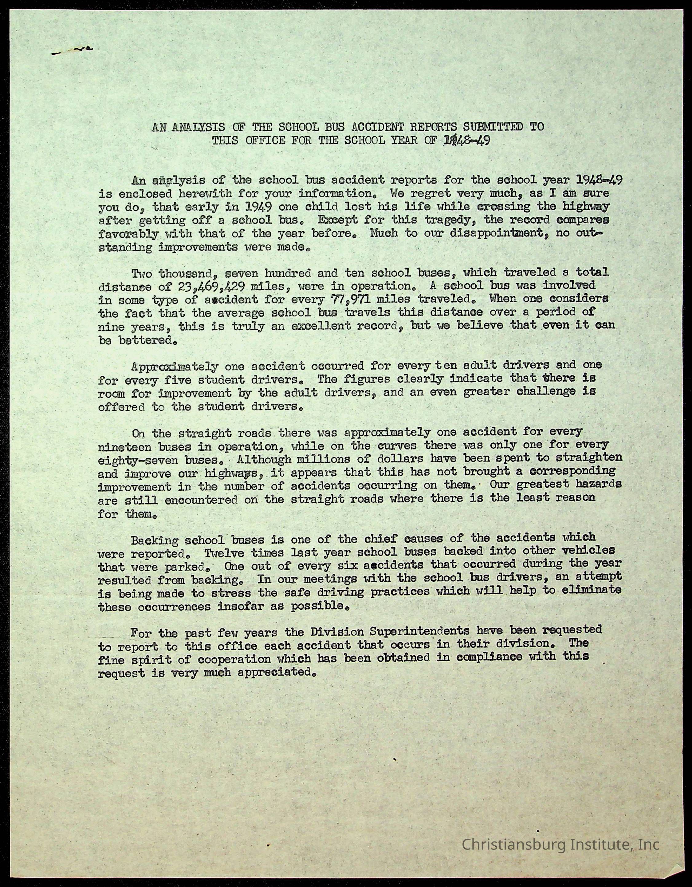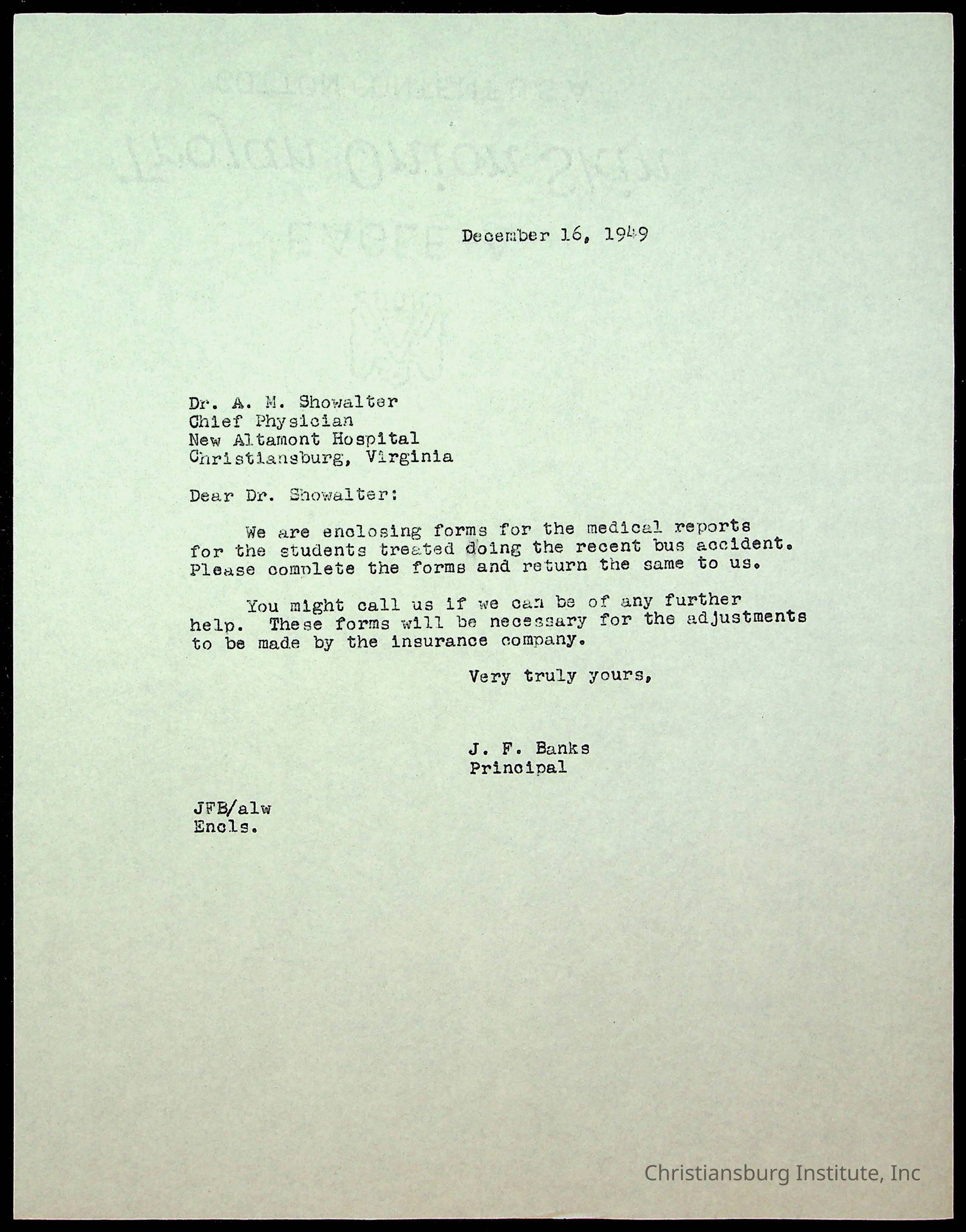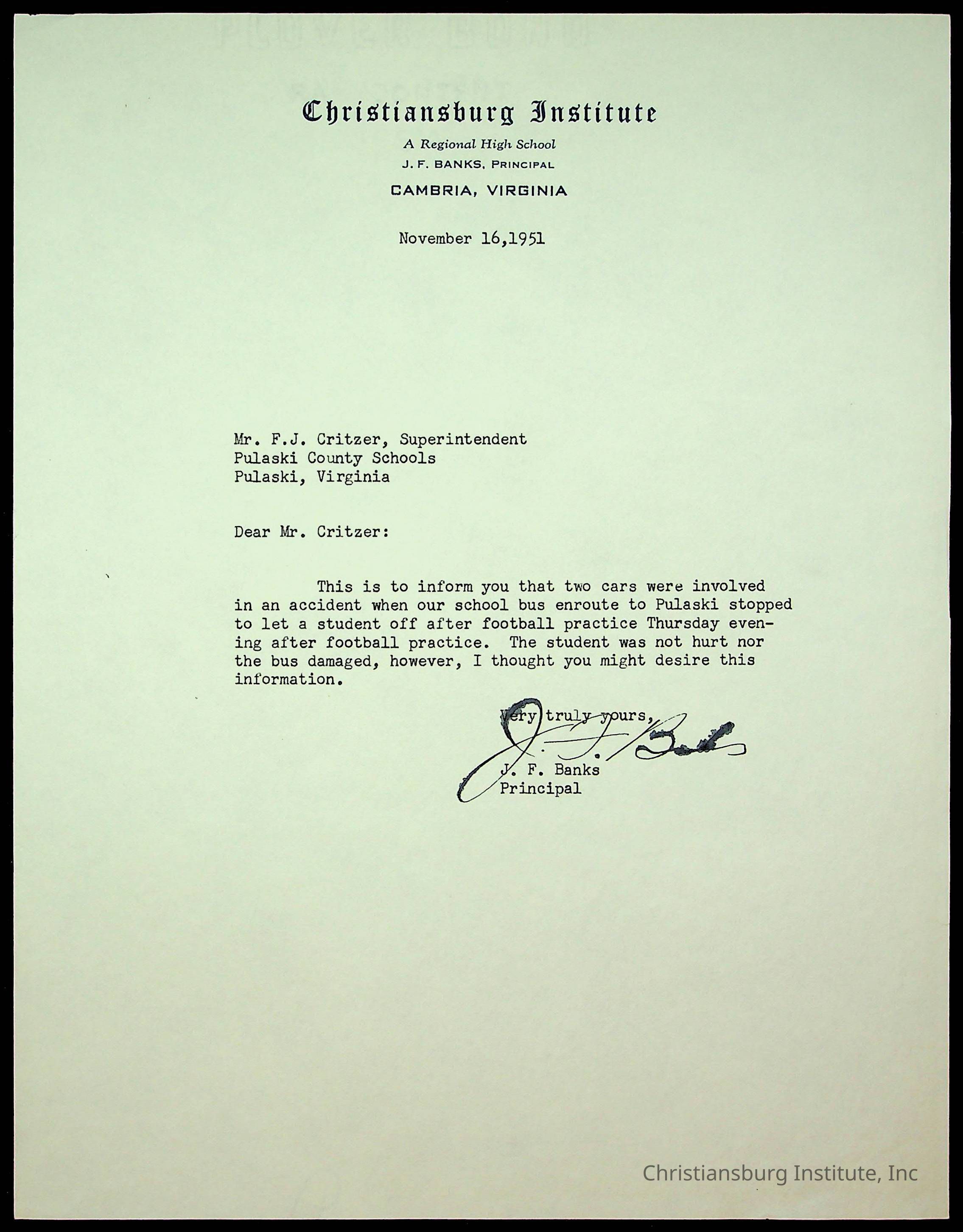 An archive of accident reports involving Christiansburg Institute students and vehicles during the 1940s through the 1960s including correspondences, hospital lists, and reports.Collection