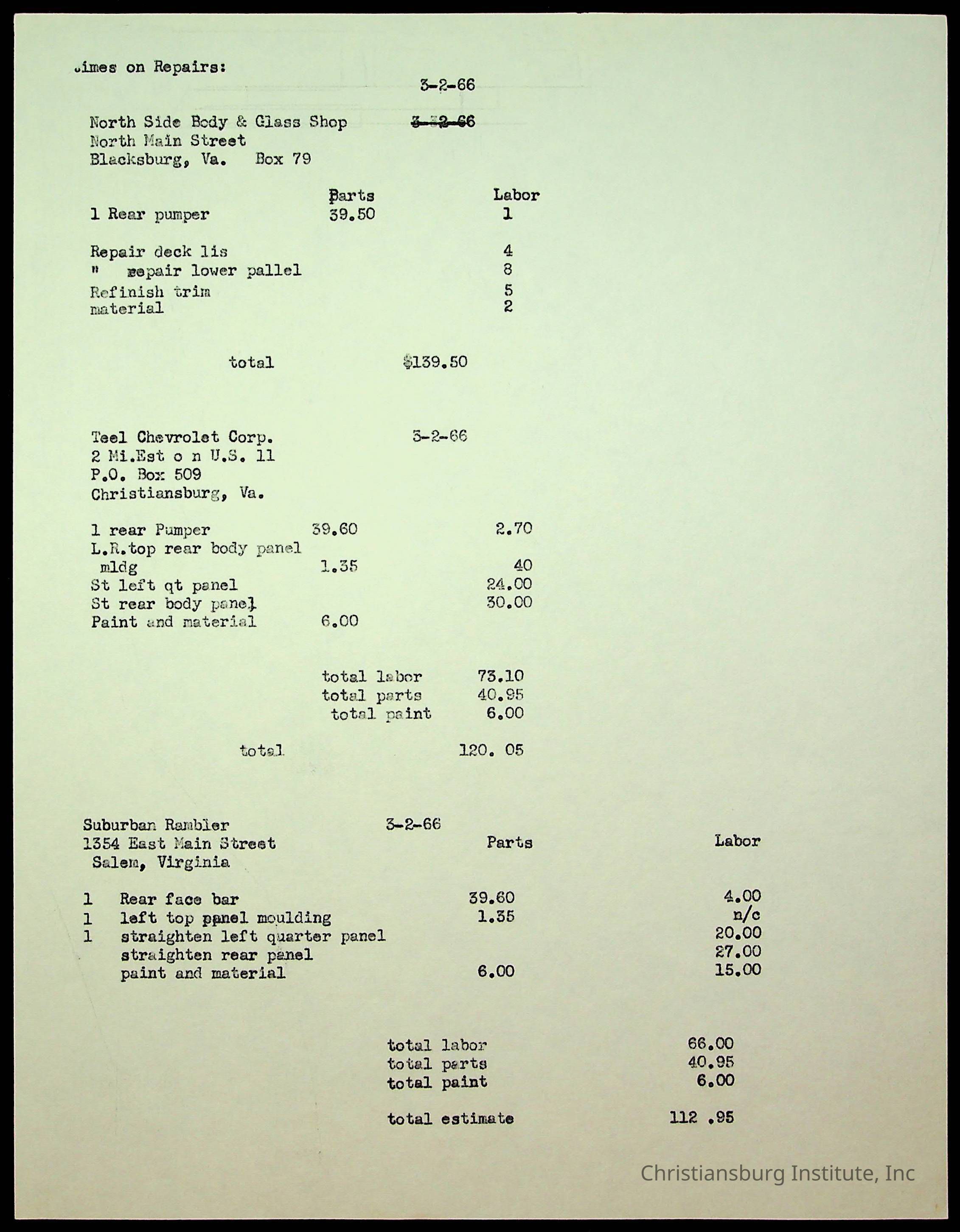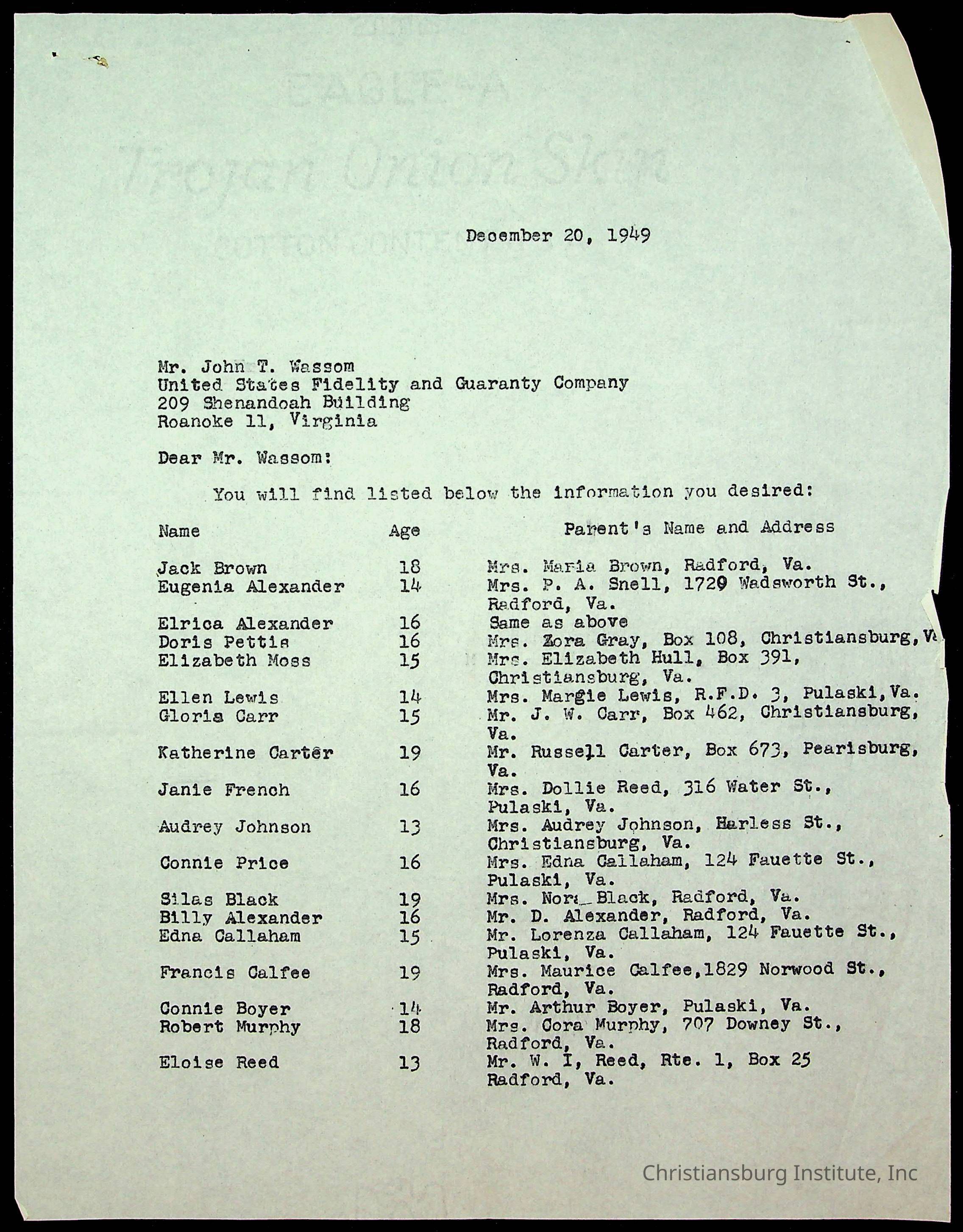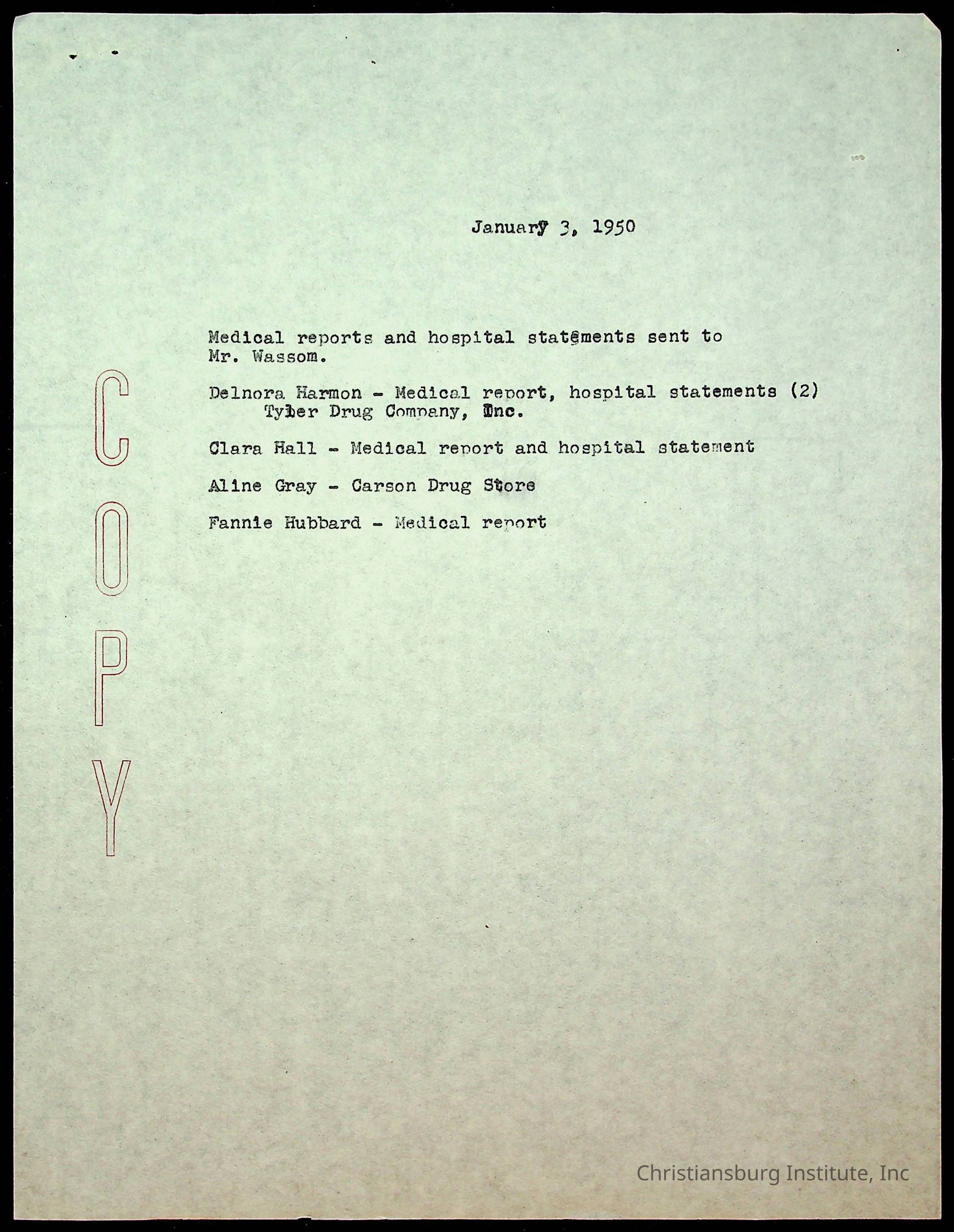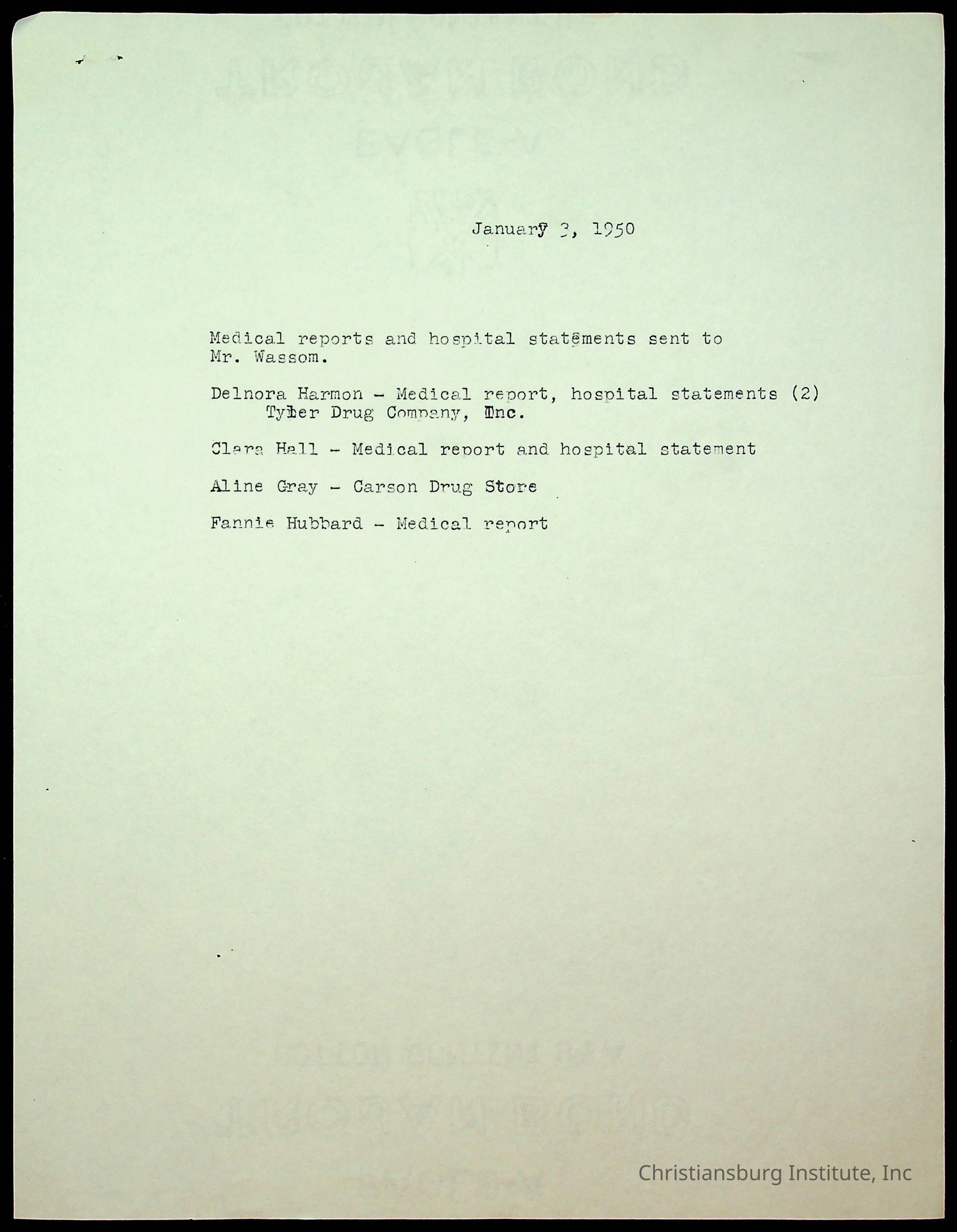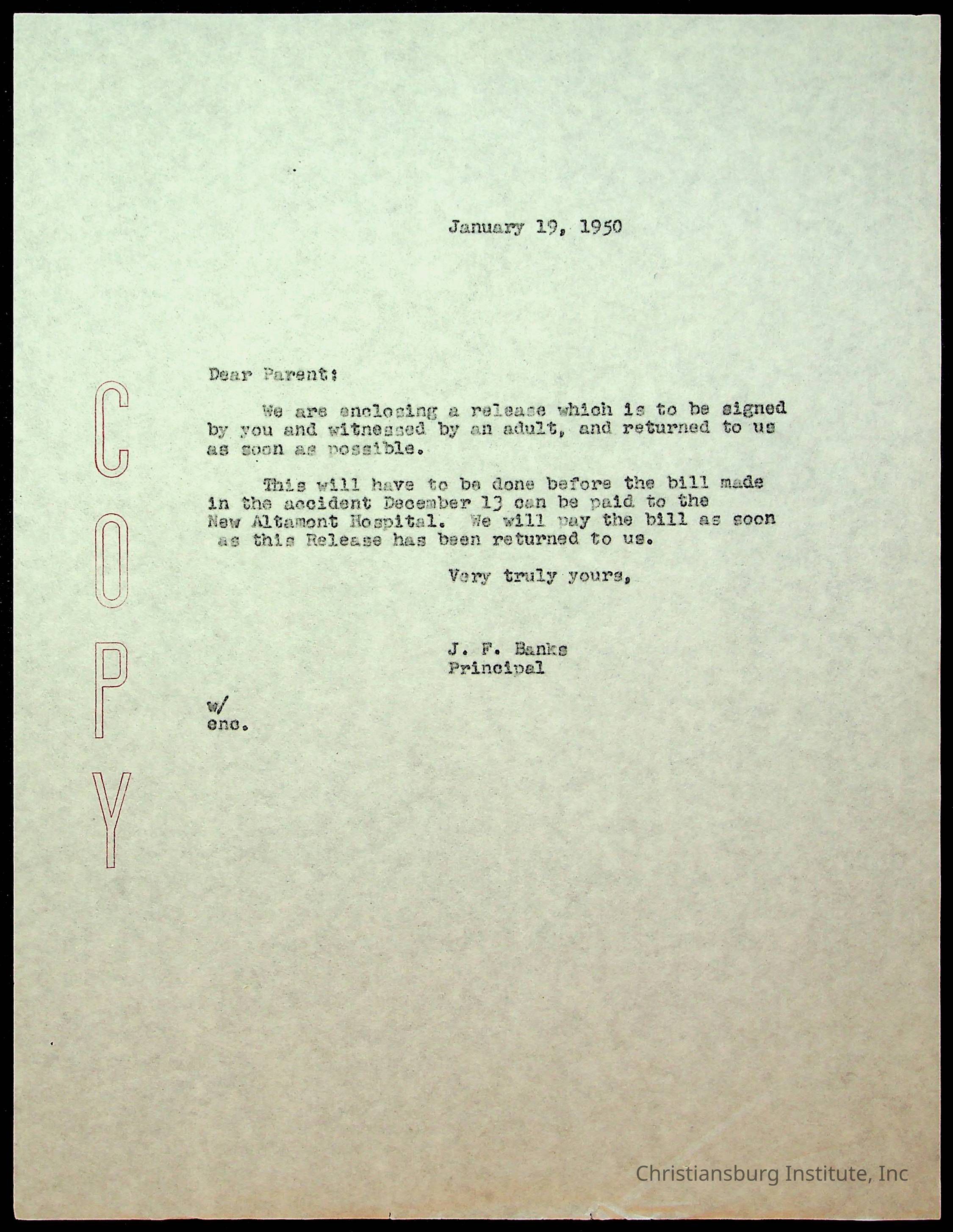 An archive of accident reports involving Christiansburg Institute students and vehicles during the 1940s through the 1960s including correspondences, hospital lists, and reports.Collection