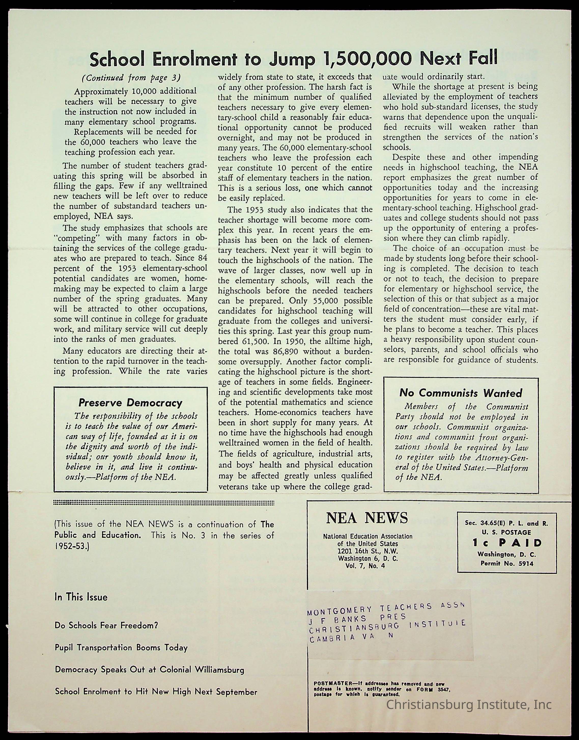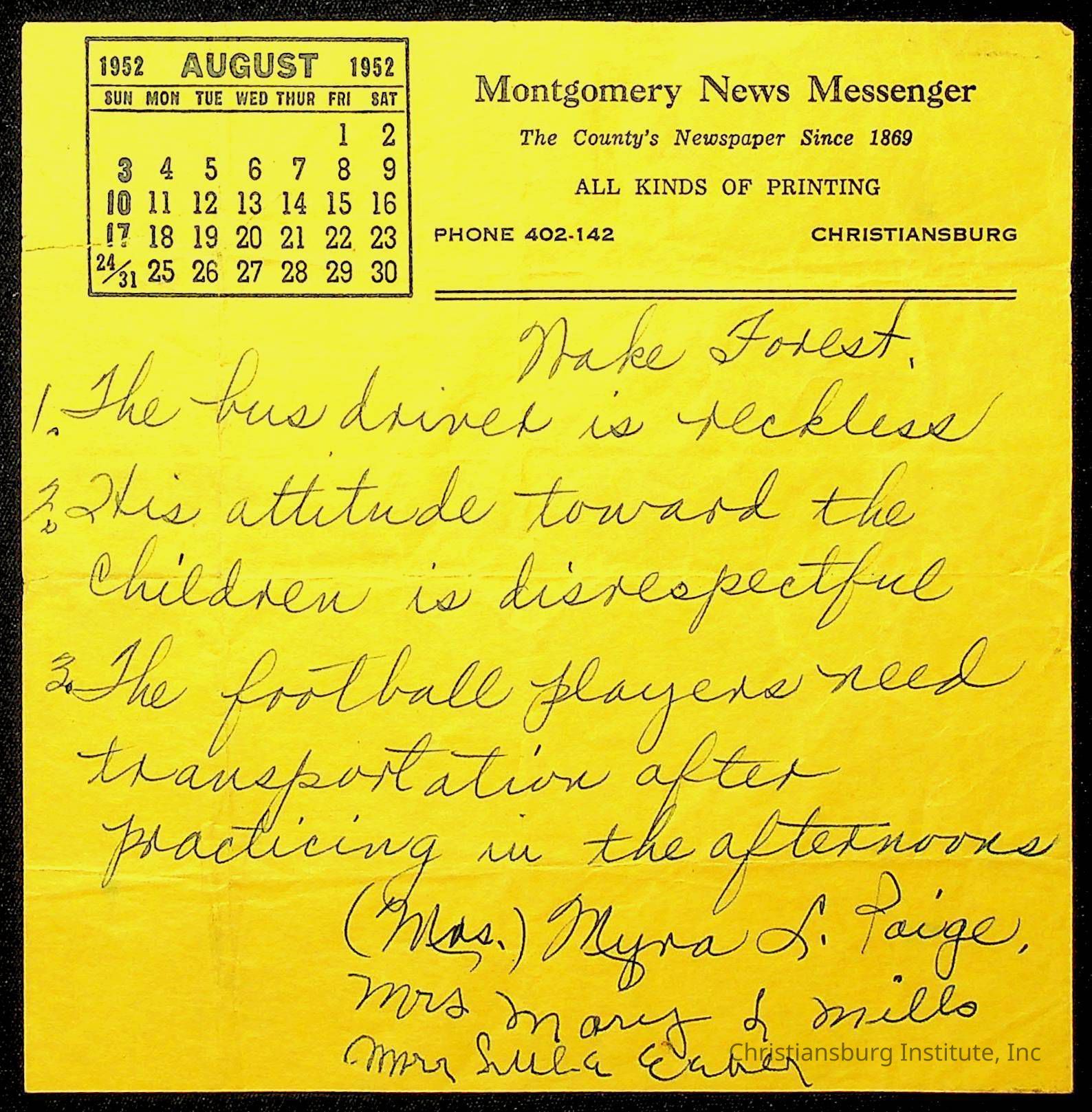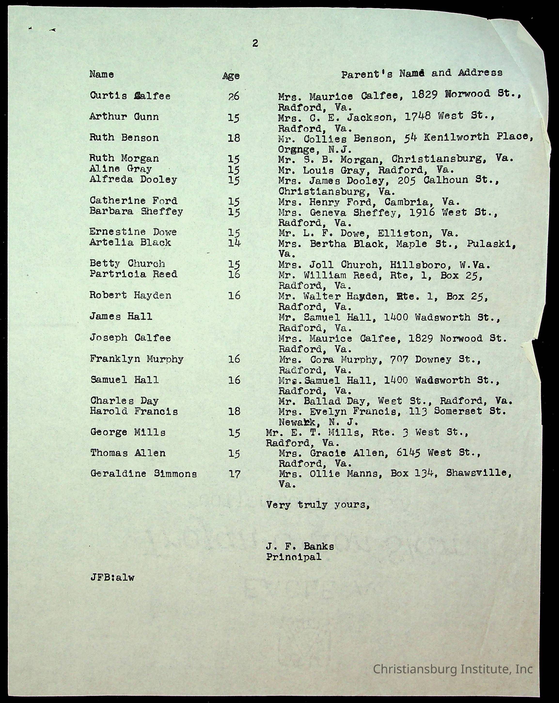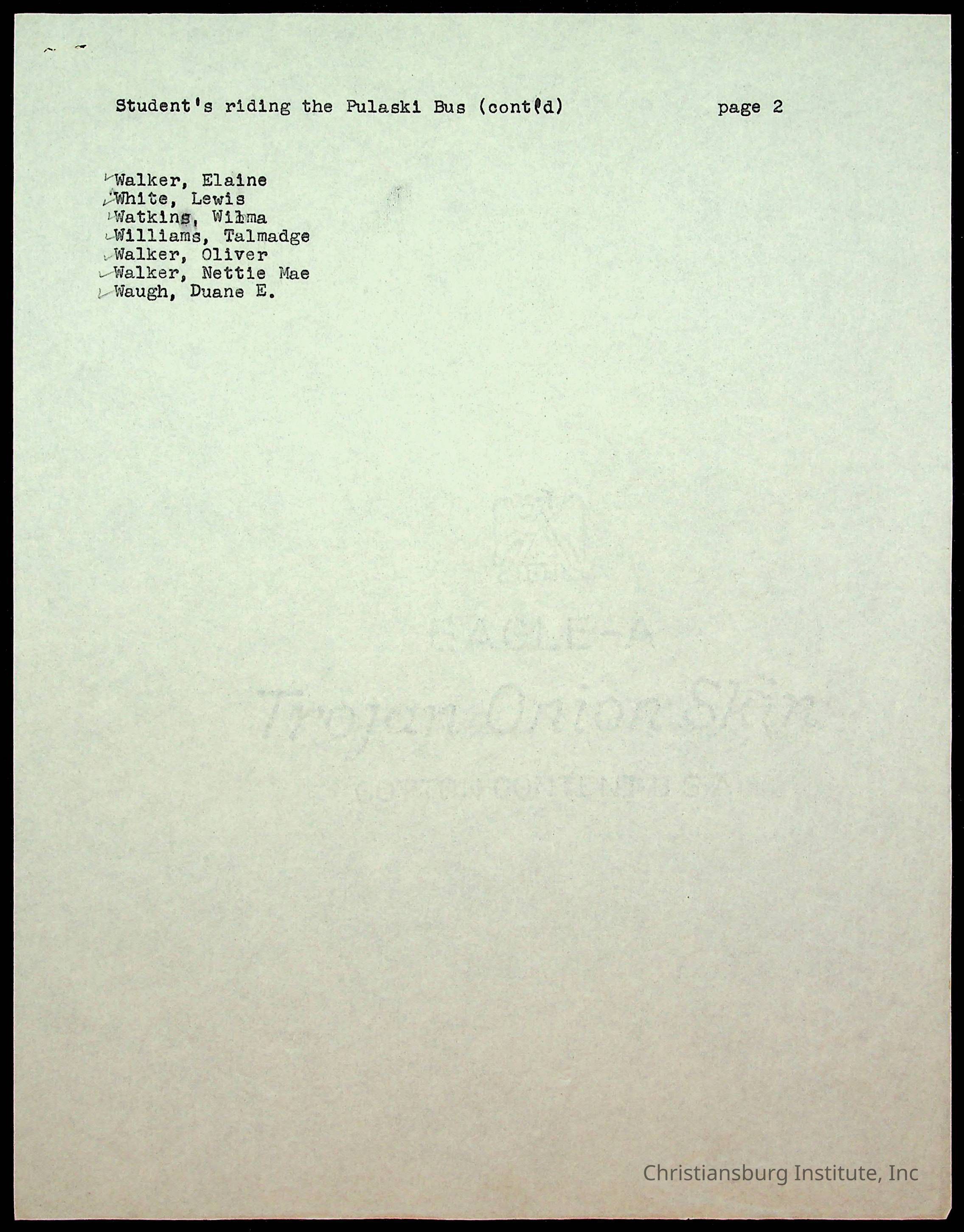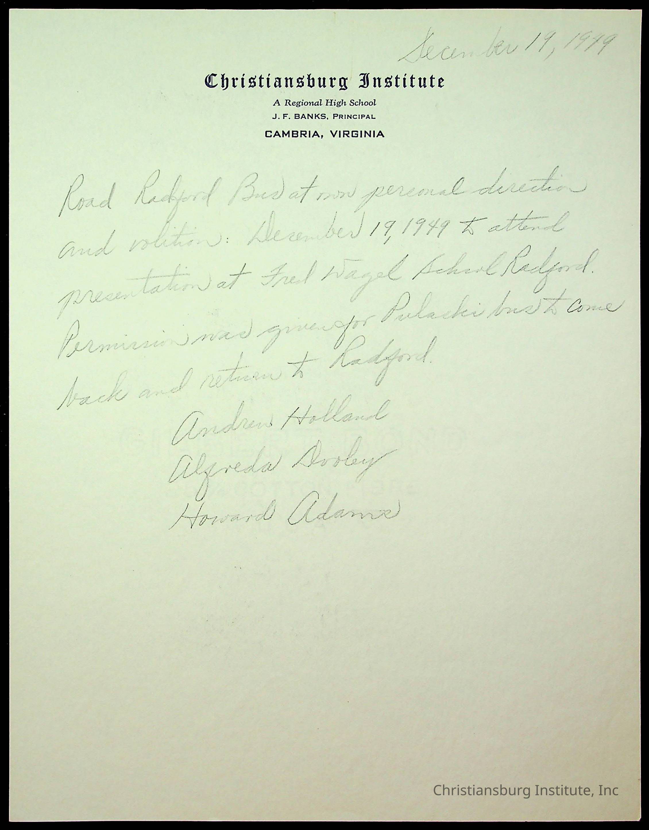 Copyright has been assigned to Christiansburg Institute Museum & Archives by Montgomery County Public Schools. For permission to publish materials created by the donor, contact CIMA@christiansburginstitute.com. Materials not created by Christiansburg Industrial Institute may still be under copyright.