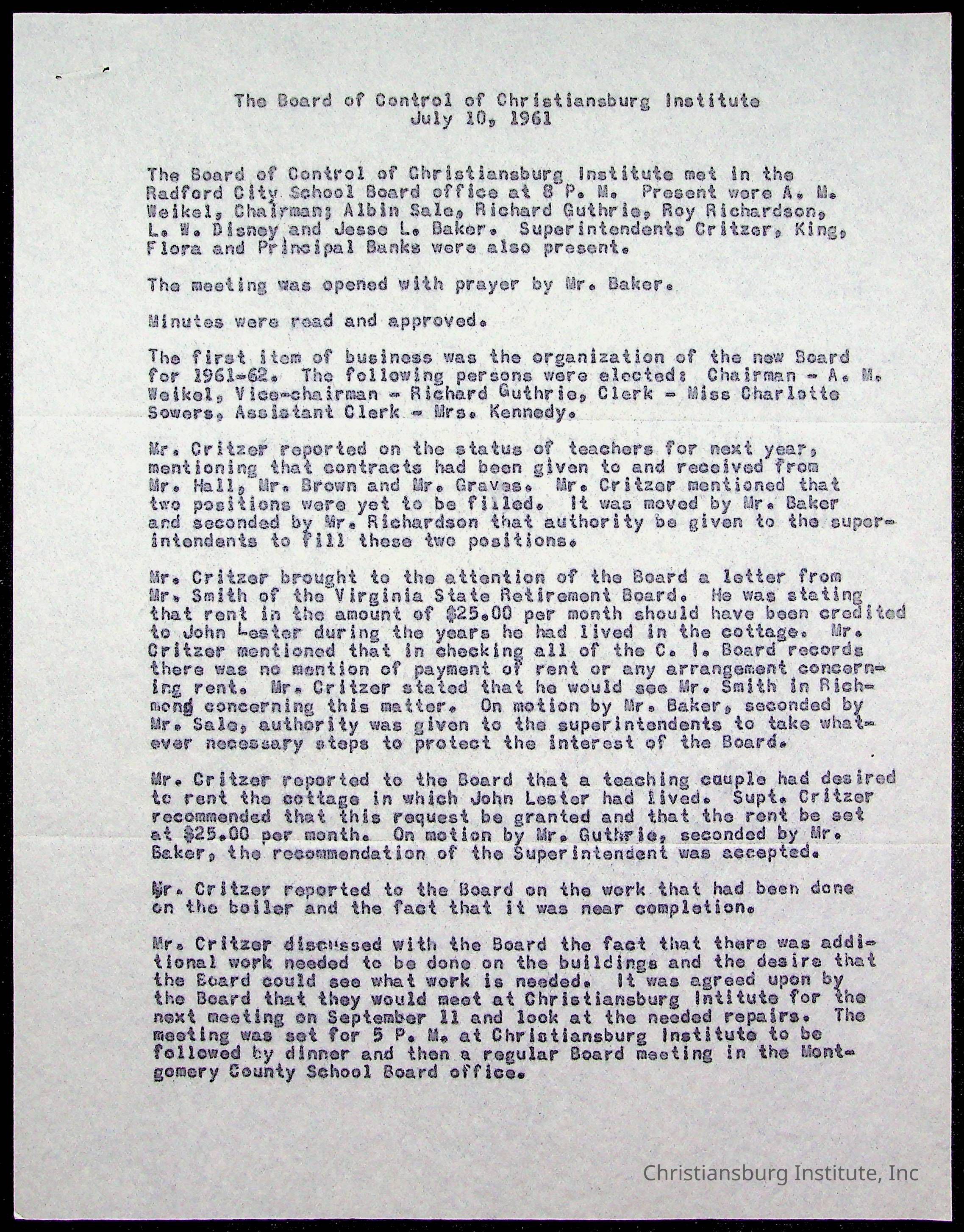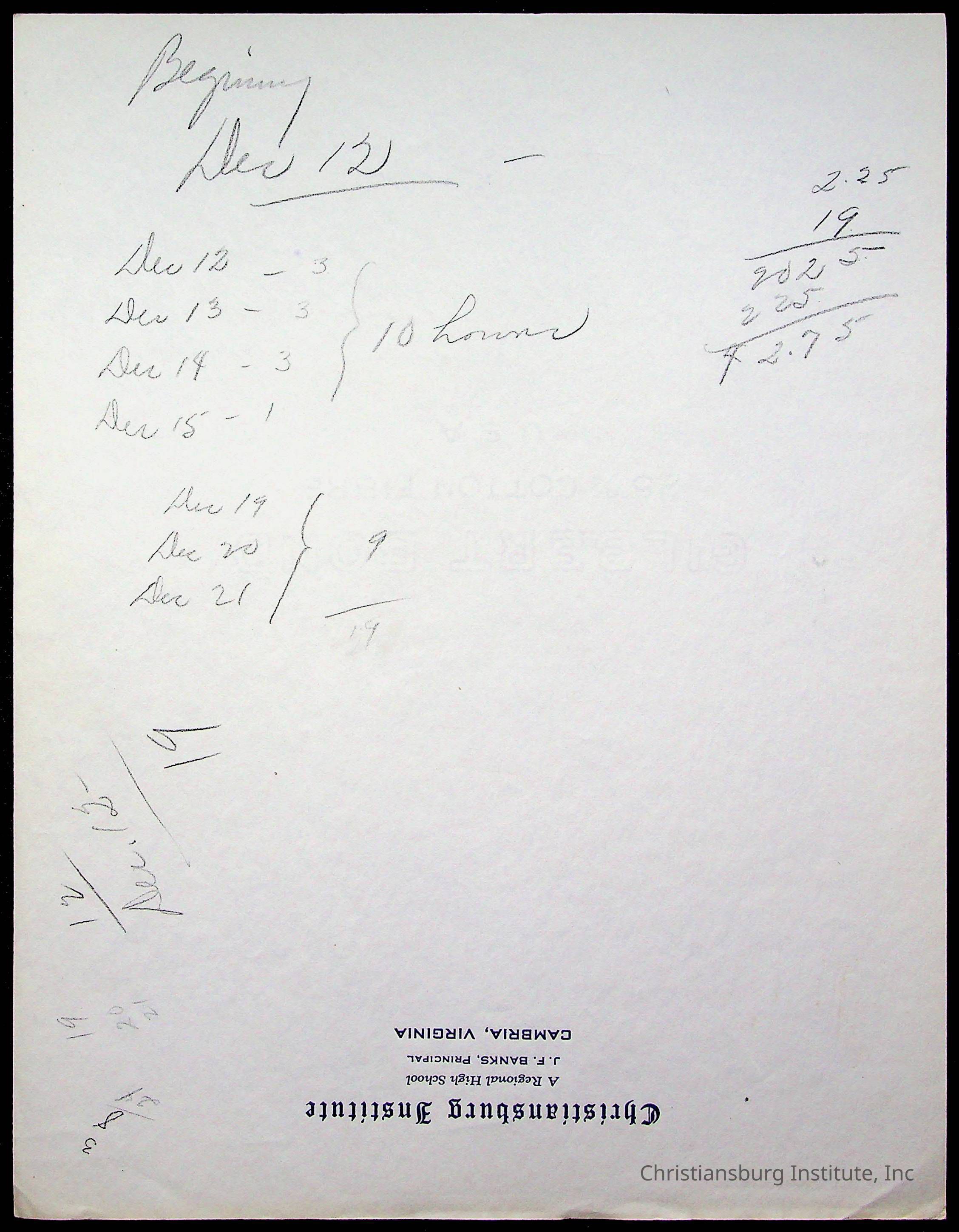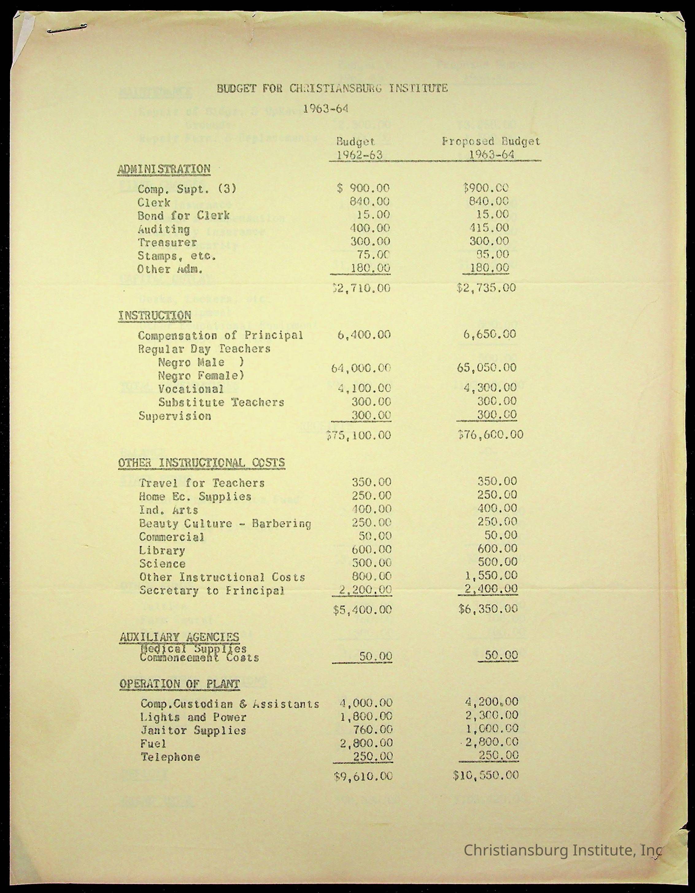 Copyright has been assigned to Christiansburg Institute Museum & Archives by Montgomery County Public Schools. For permission to publish materials created by the donor, contact CIMA@christiansburginstitute.com. Materials not created by Christiansburg Industrial Institute may still be under copyright.