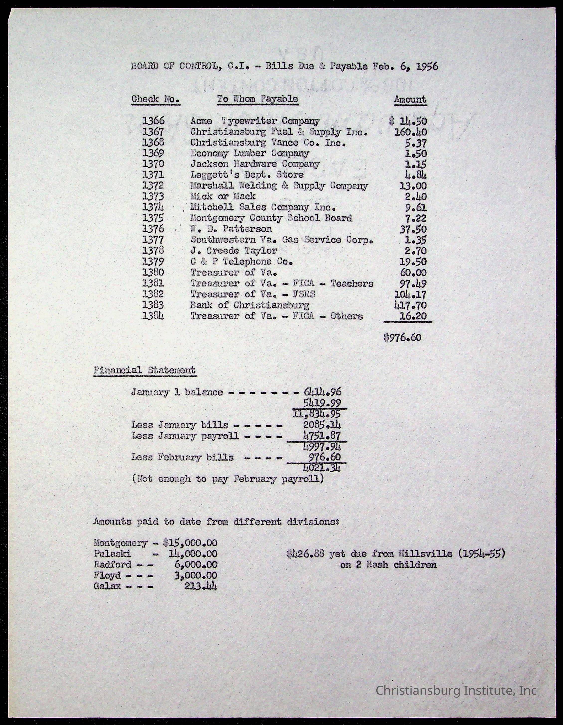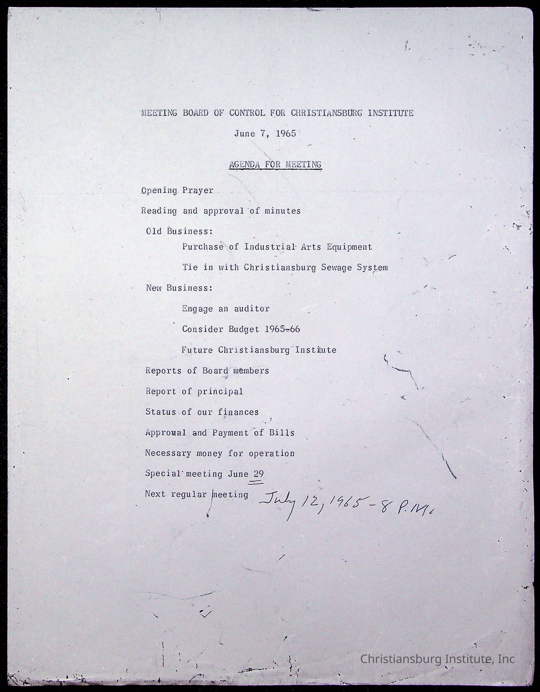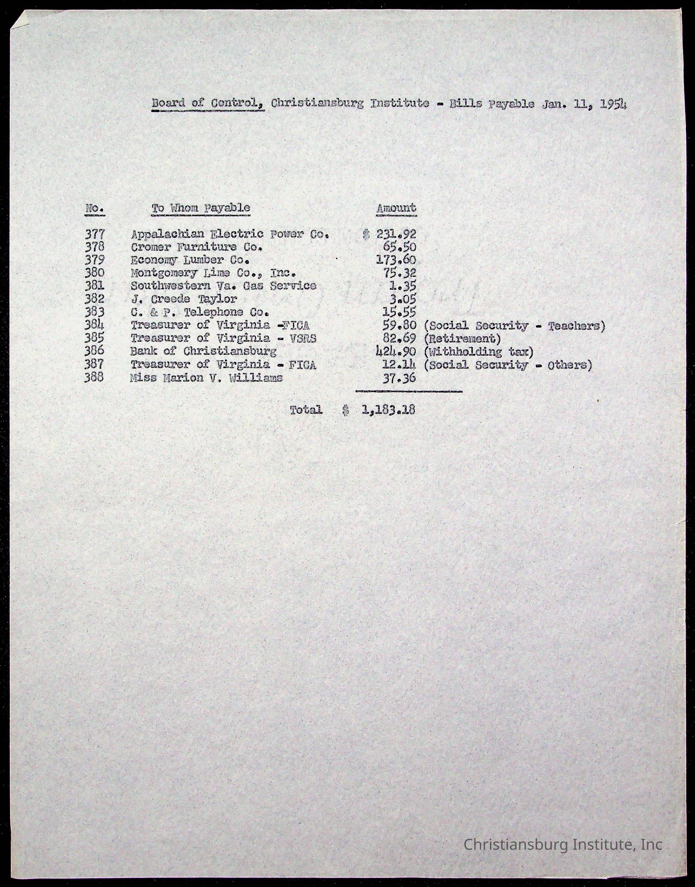 Copyright has been assigned to Christiansburg Institute Museum & Archives by Montgomery County Public Schools. For permission to publish materials created by the donor, contact CIMA@christiansburginstitute.com. Materials not created by Christiansburg Industrial Institute may still be under copyright.