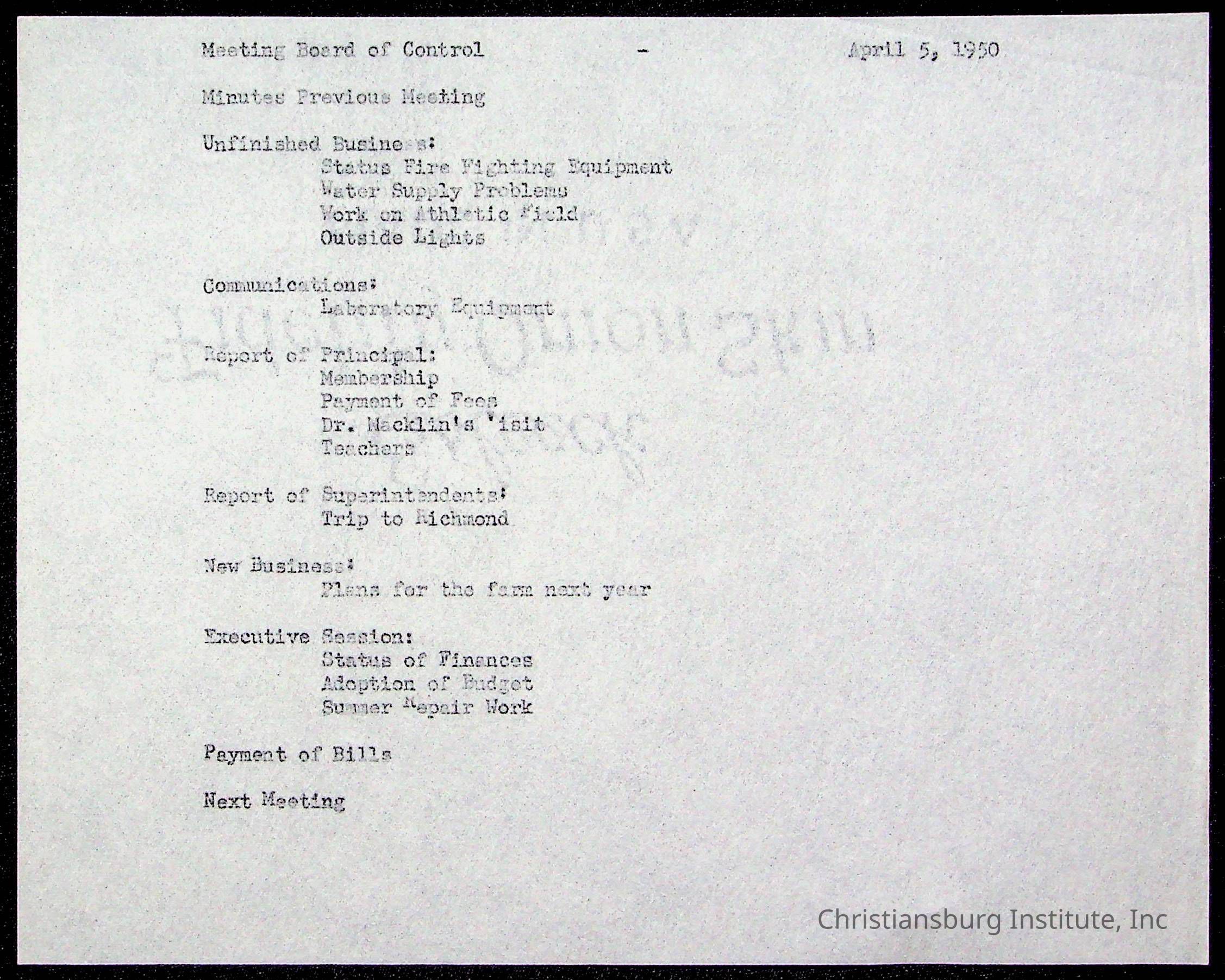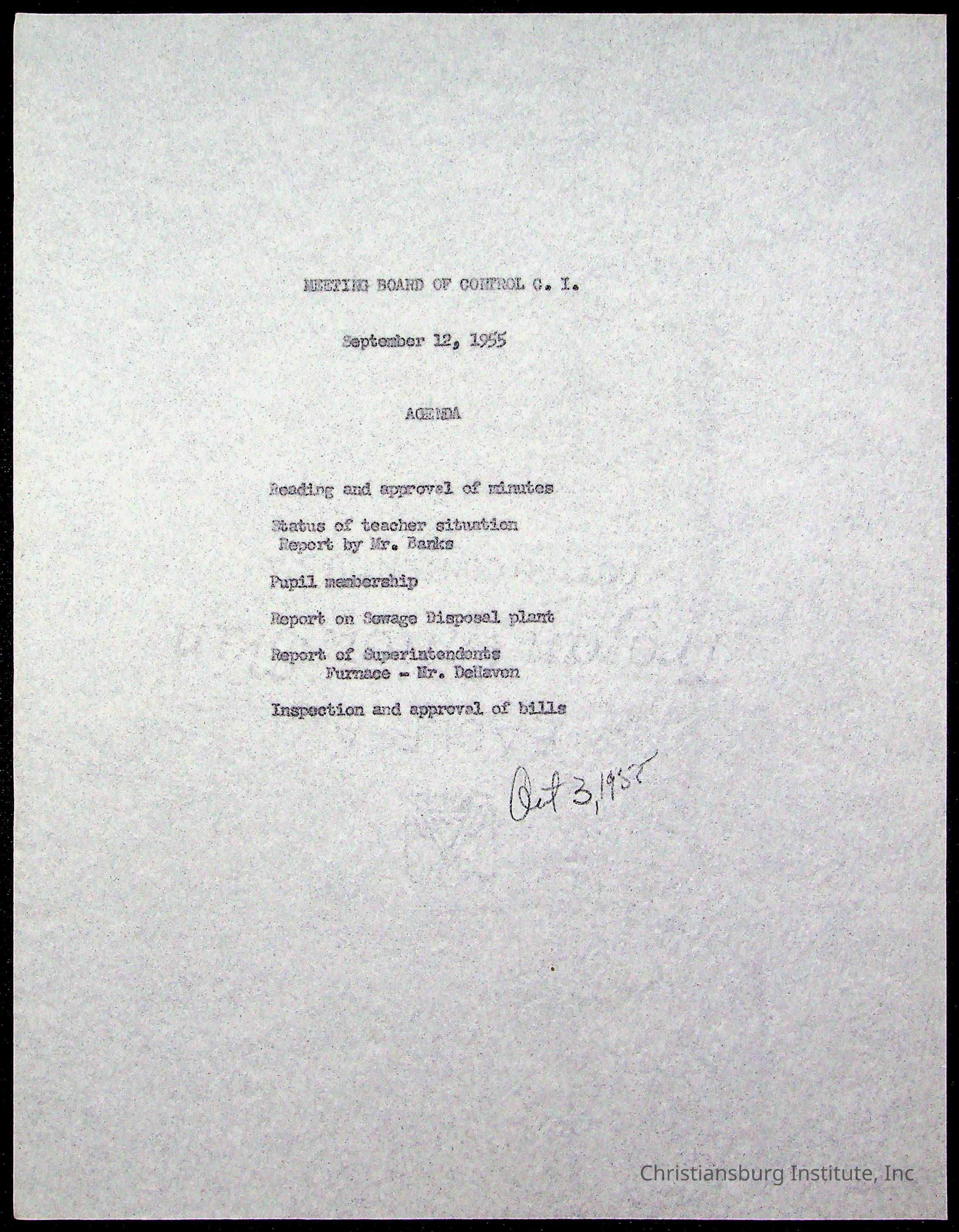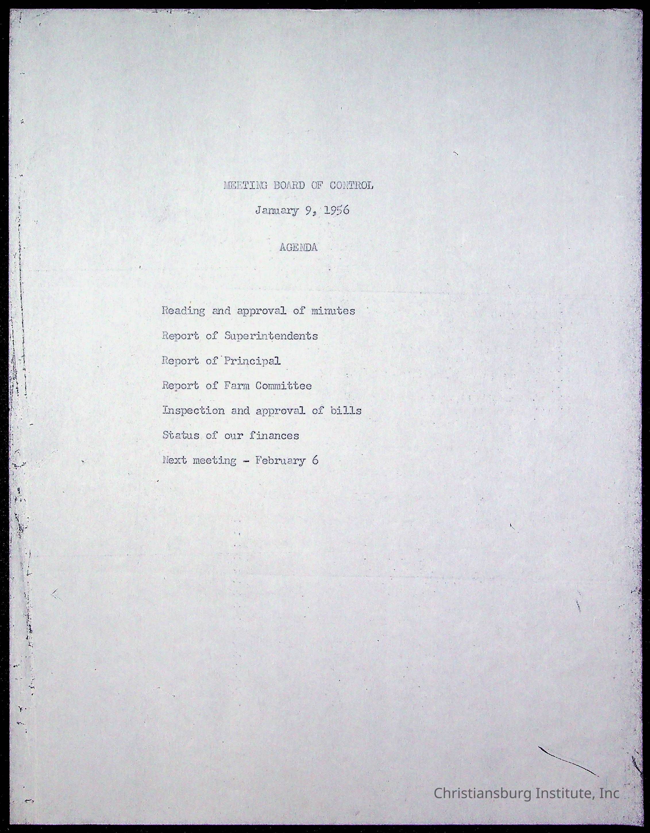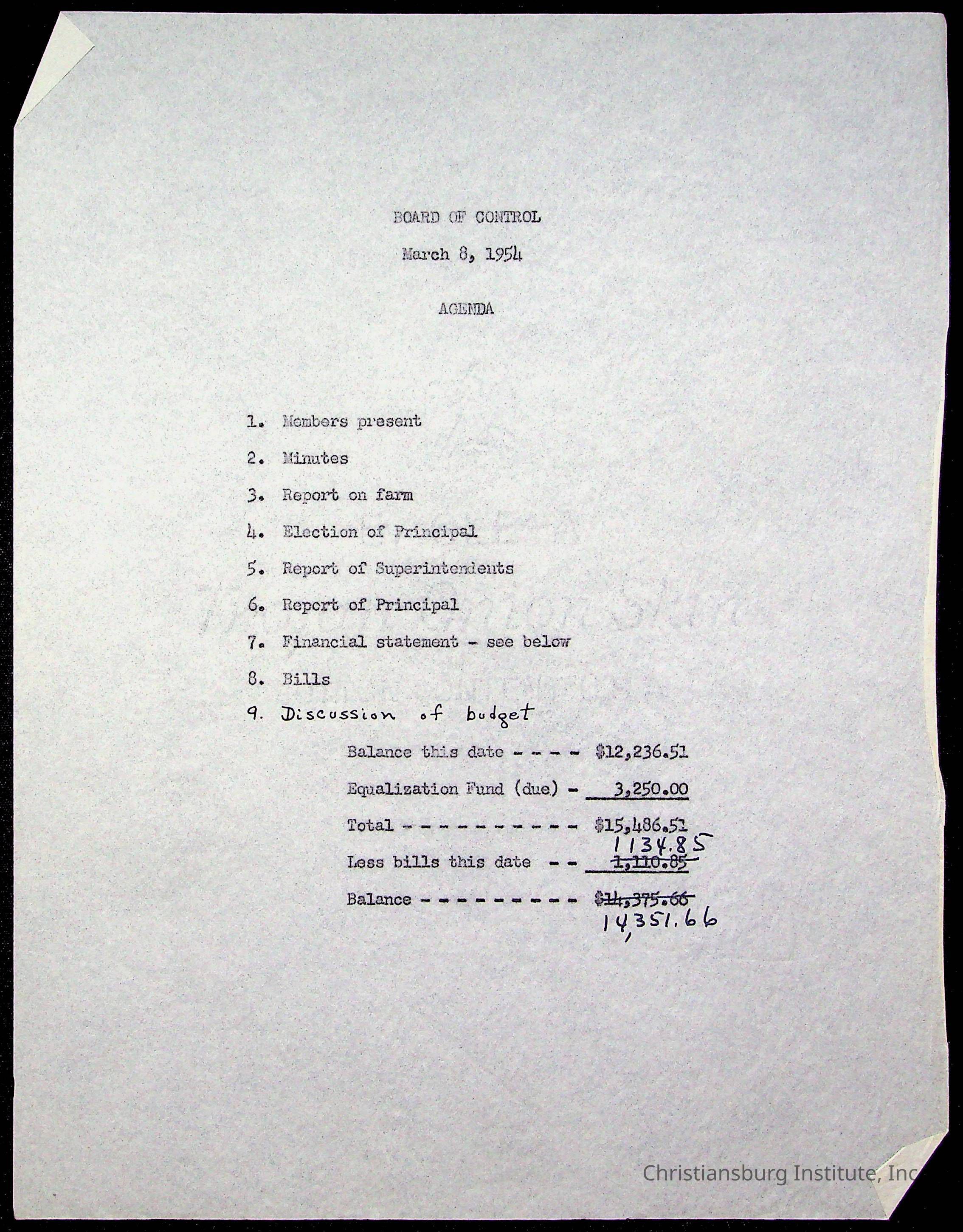 An archive of materials relating to the Board of Control for Christiansburg Institute, dated 1900s.
