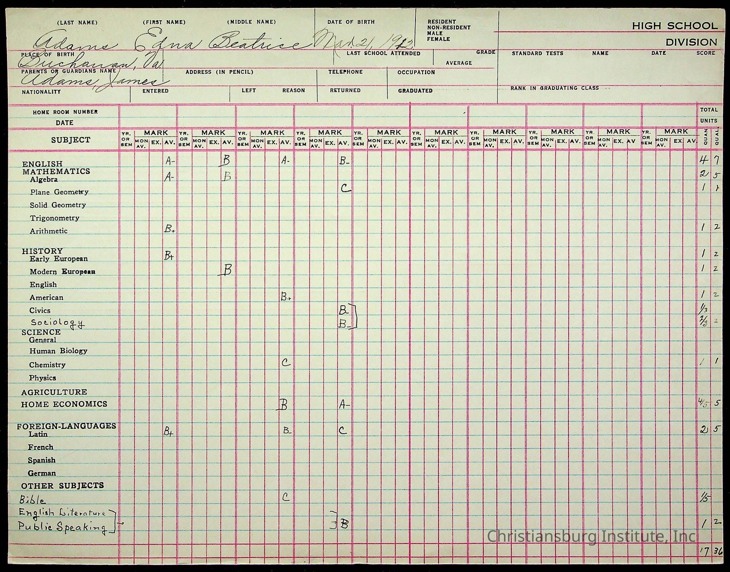 Montgomery County Public Schools, Christiansburg Institute, Adams, Edna