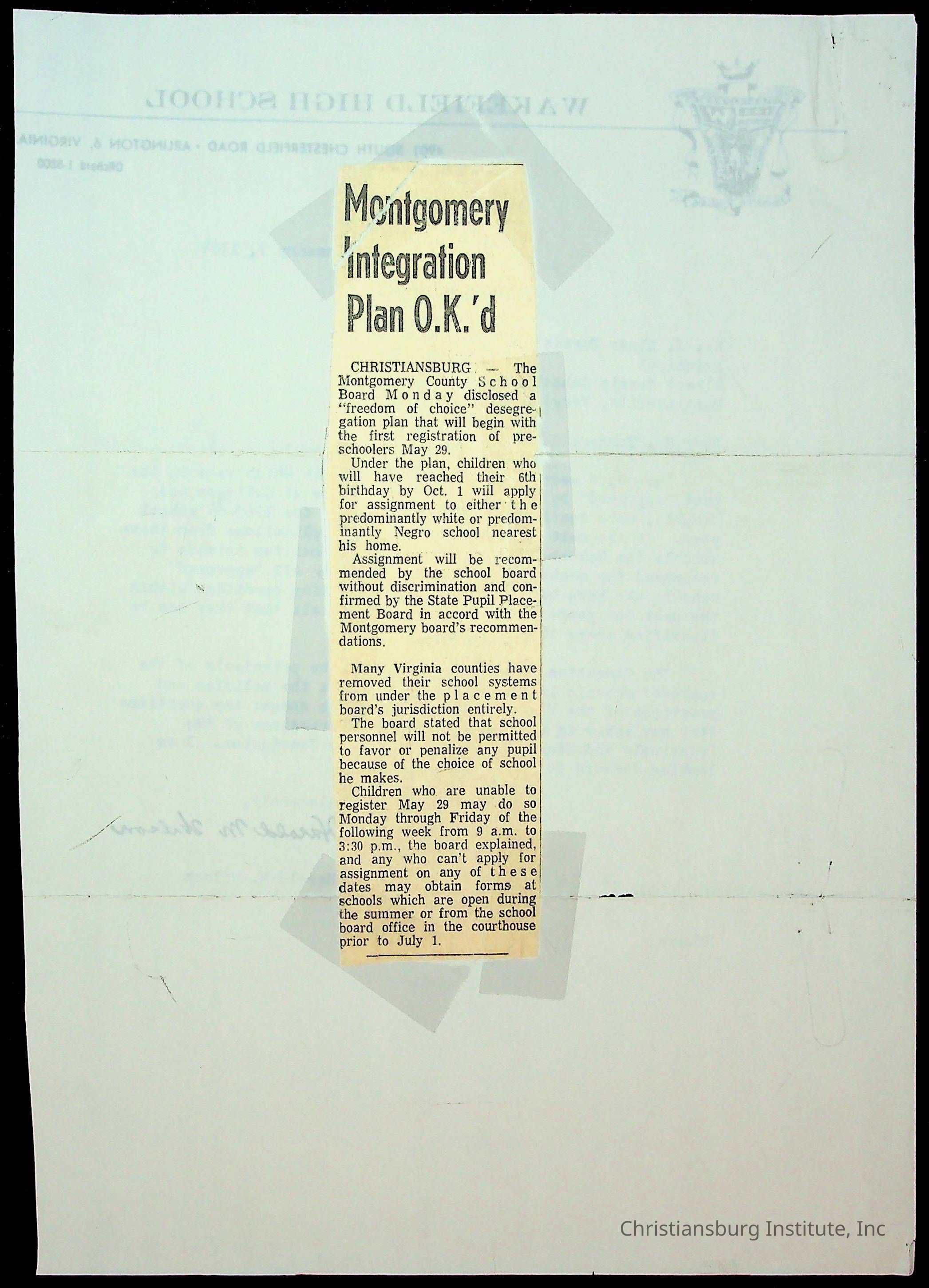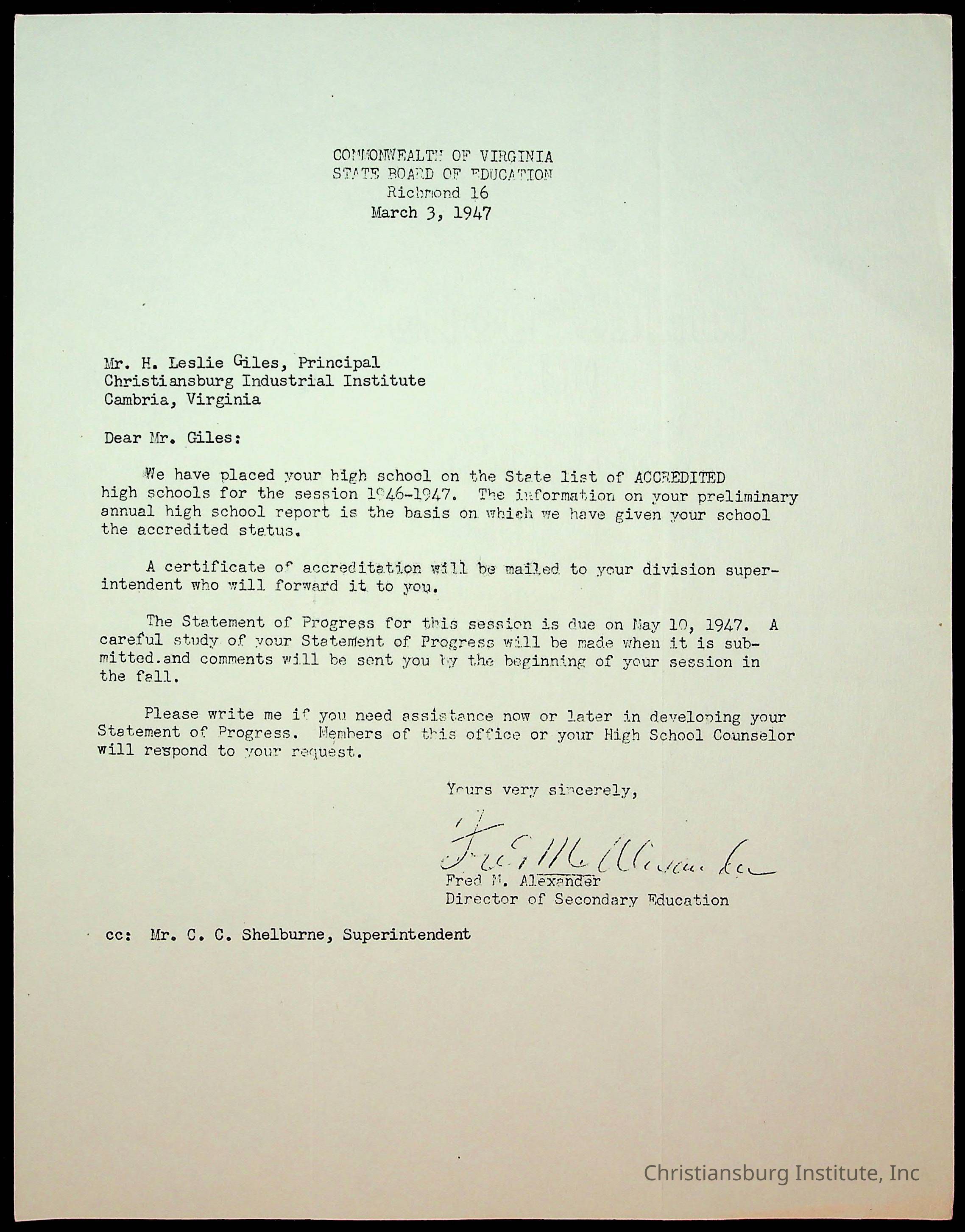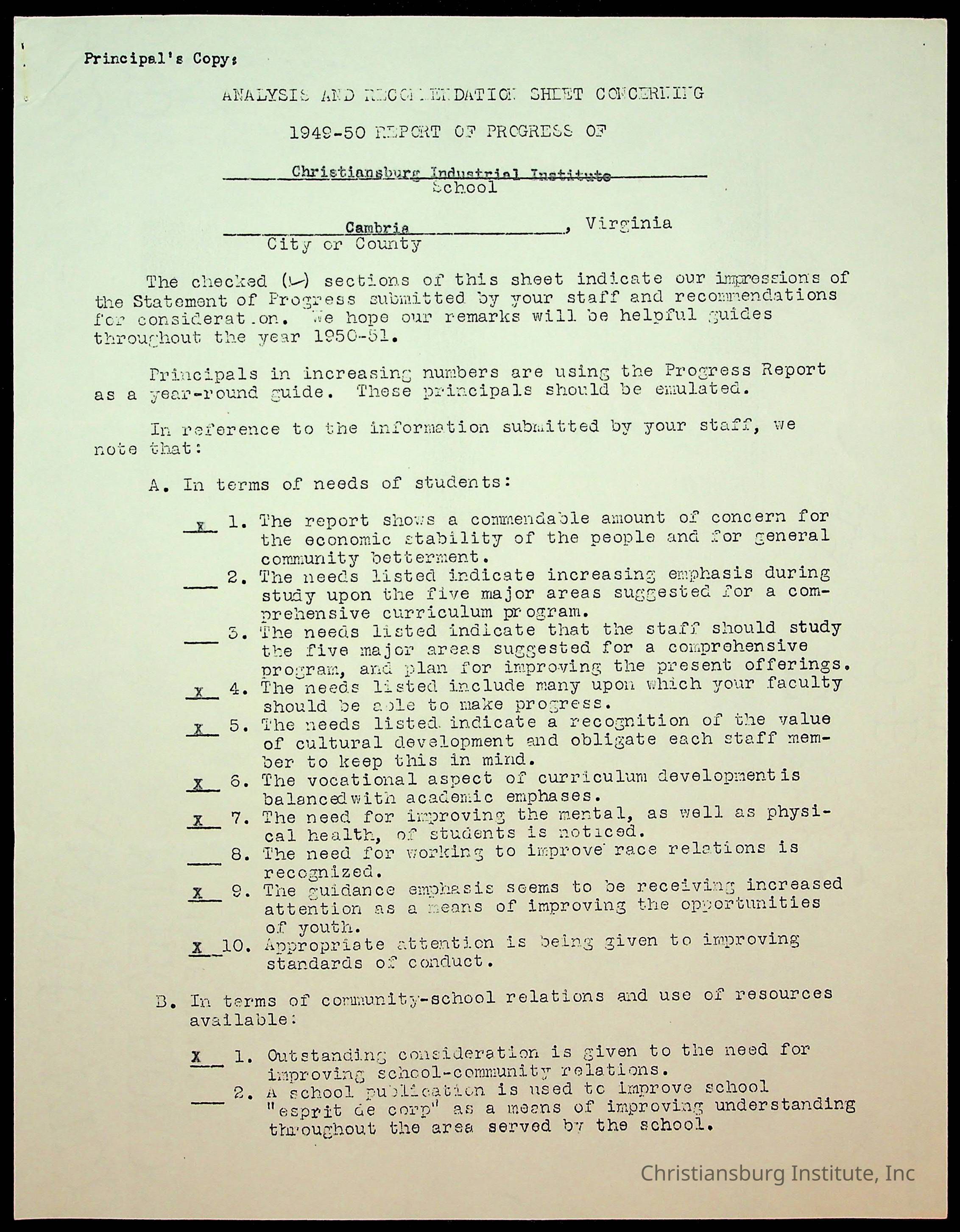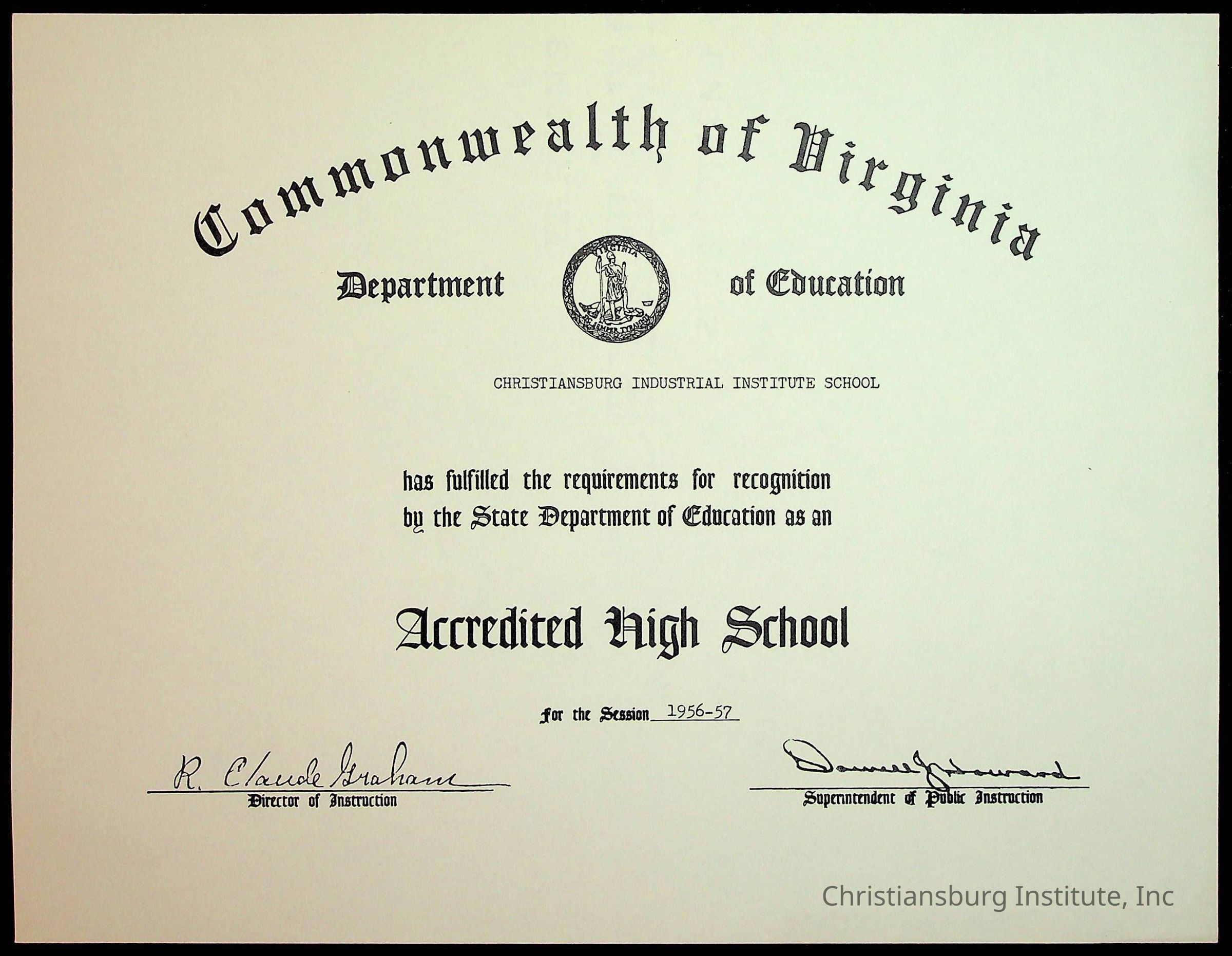 Copyright has been assigned to Christiansburg Institute Museum & Archives by Montgomery County Public Schools. For permission to publish materials created by the donor, contact CIMA@christiansburginstitute.com. Materials not created by Christiansburg Industrial Institute may still be under copyright.