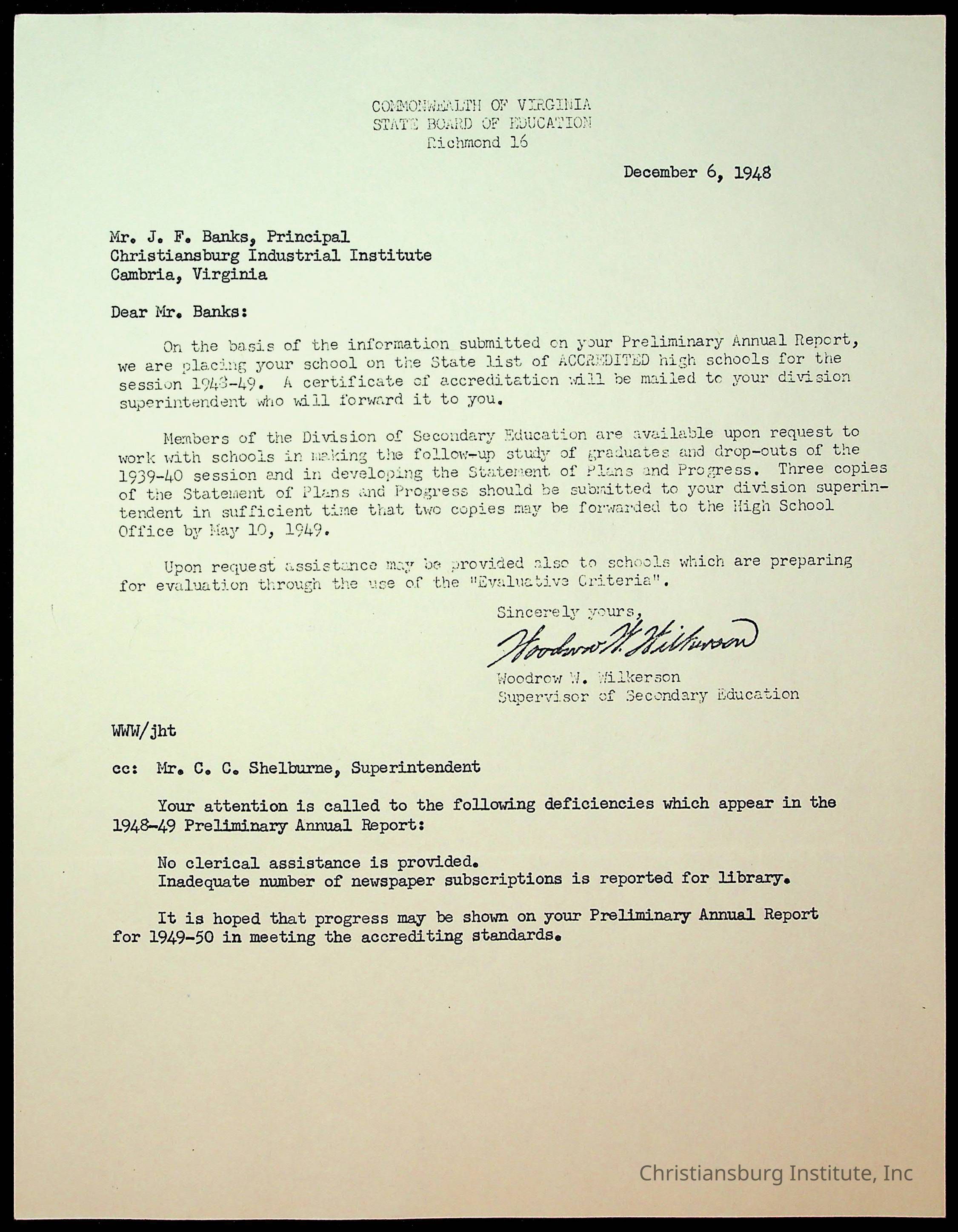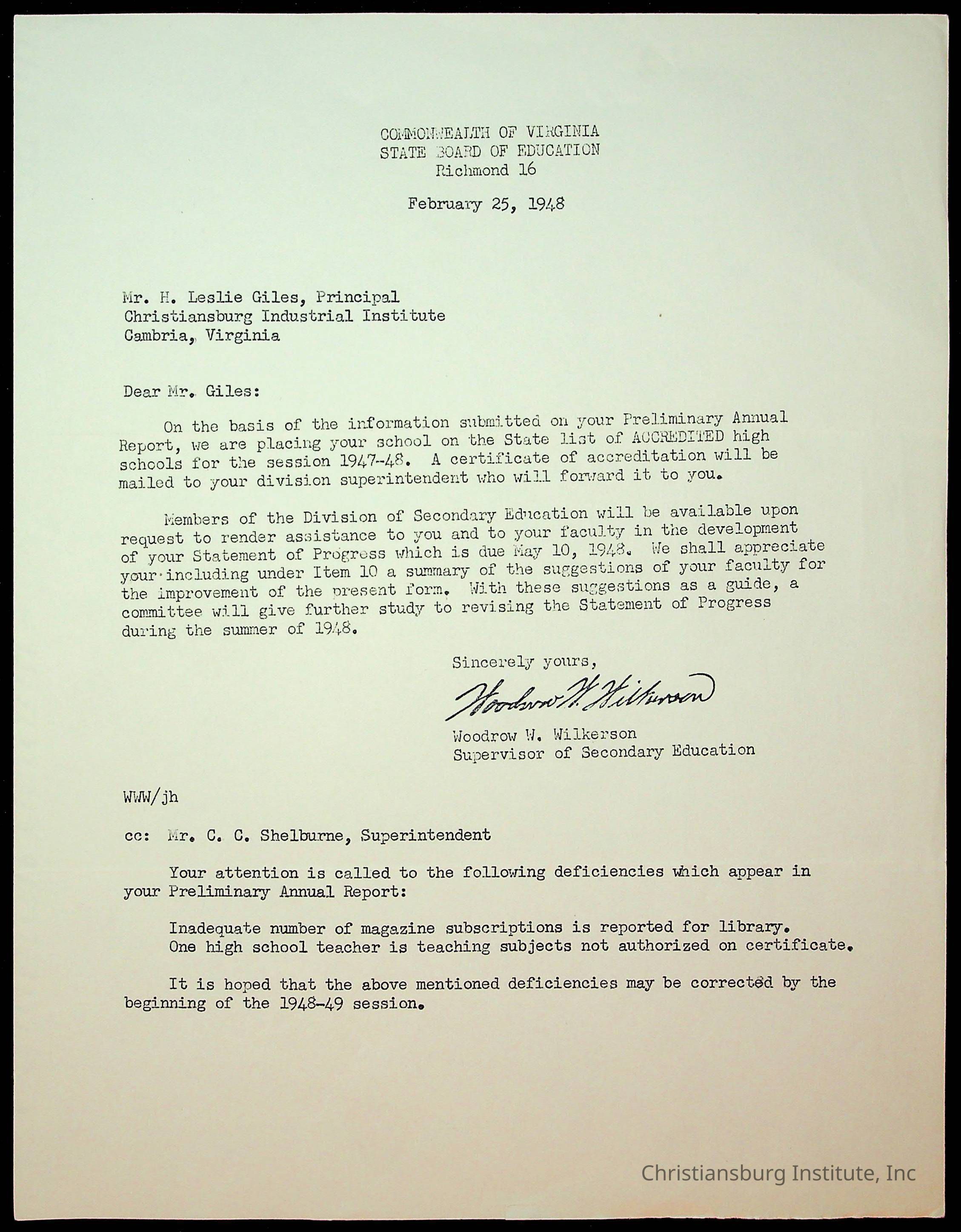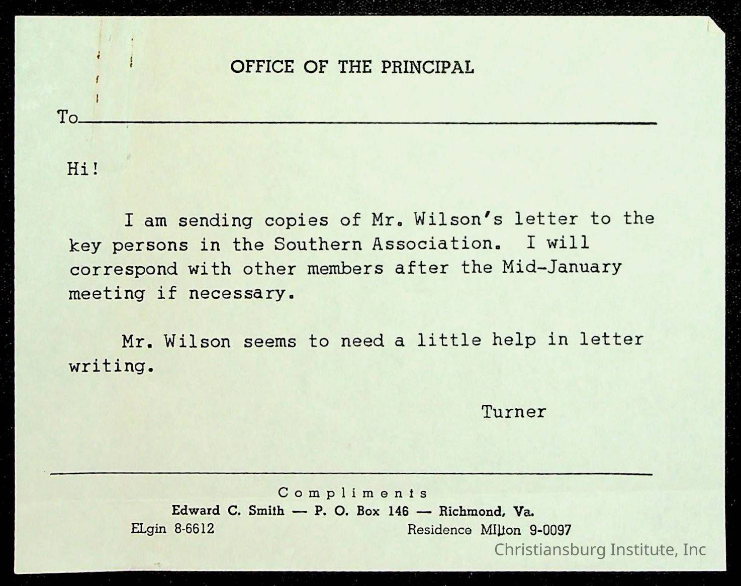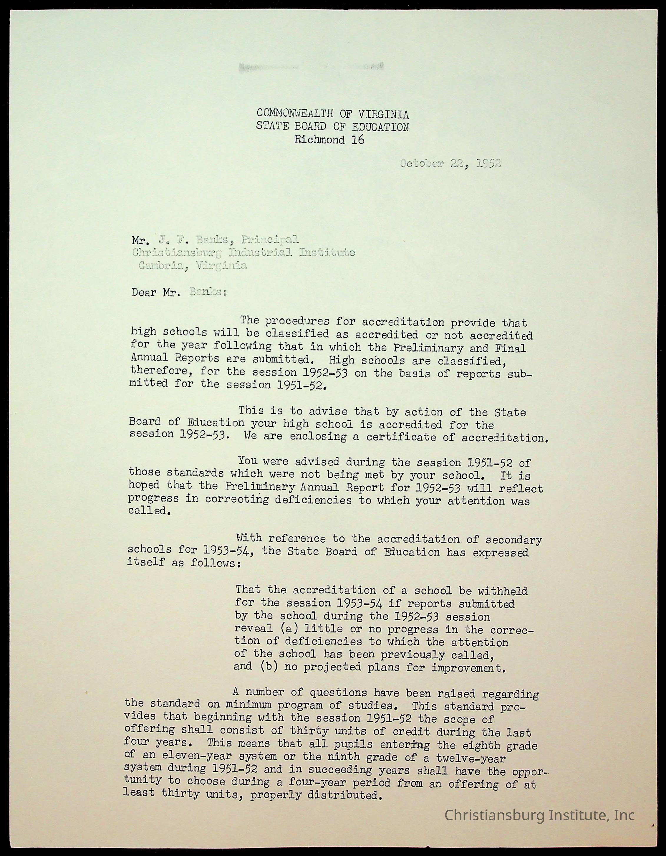 Copyright has been assigned to Christiansburg Institute Museum & Archives by Montgomery County Public Schools. For permission to publish materials created by the donor, contact CIMA@christiansburginstitute.com. Materials not created by Christiansburg Industrial Institute may still be under copyright.