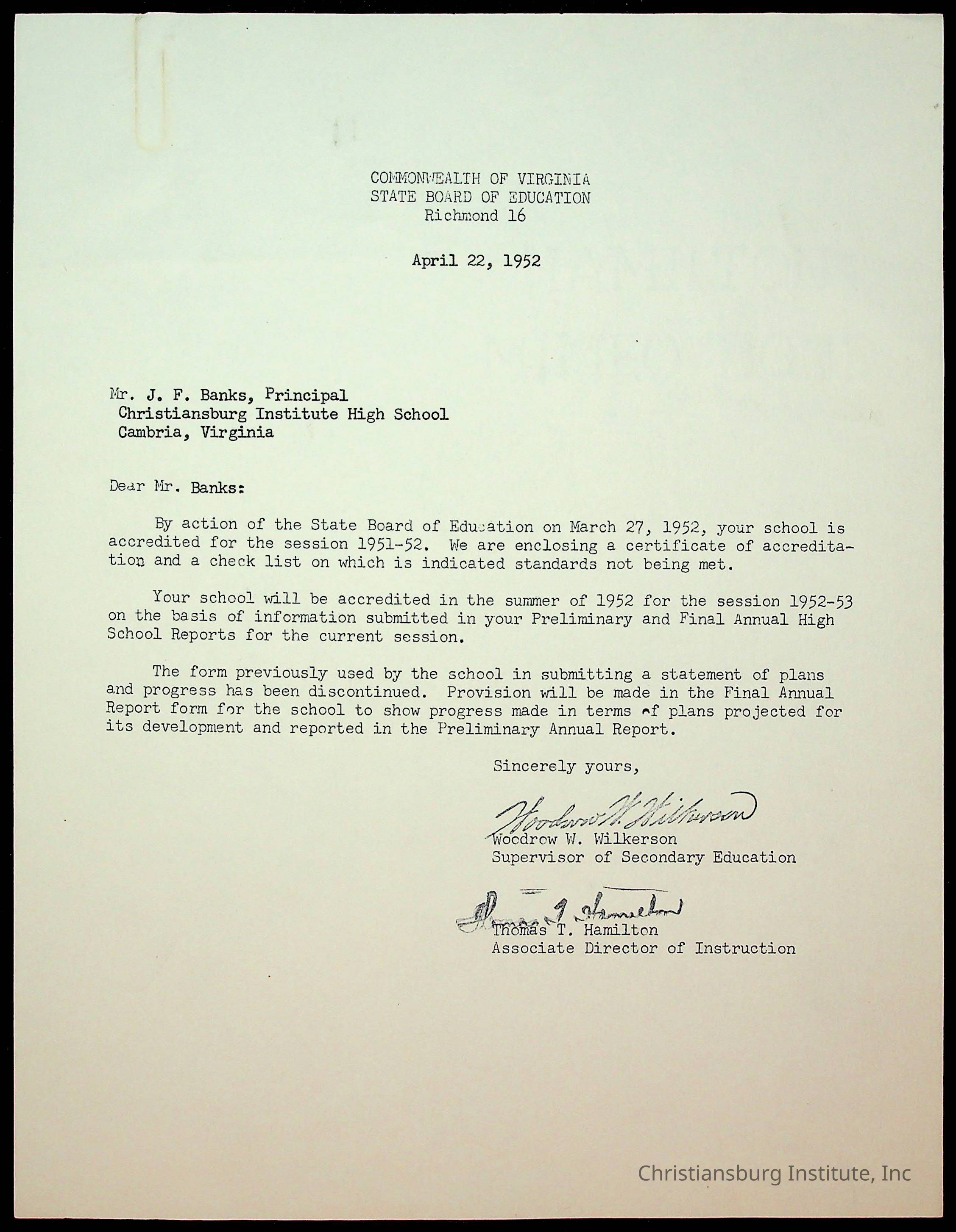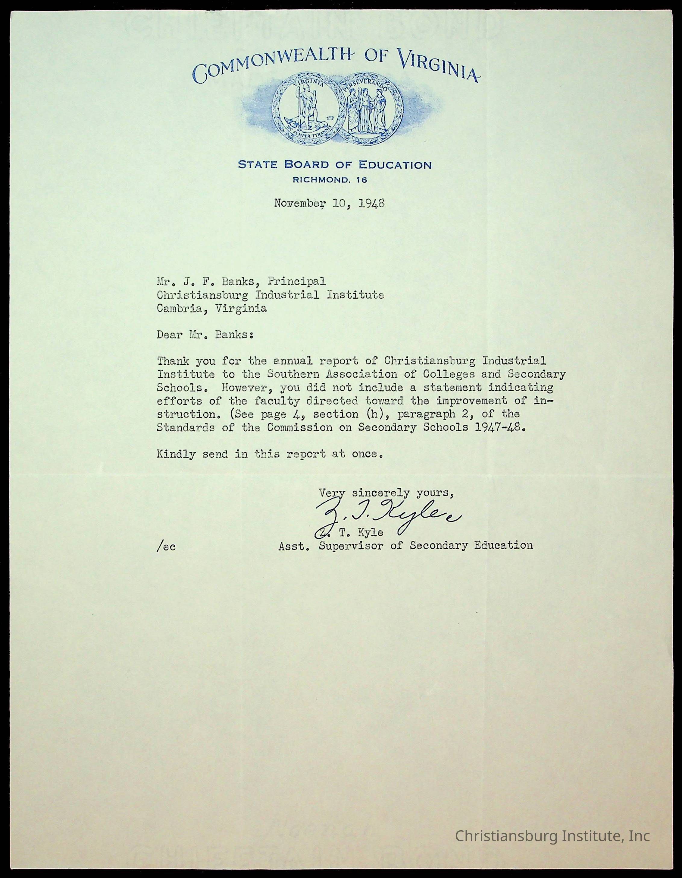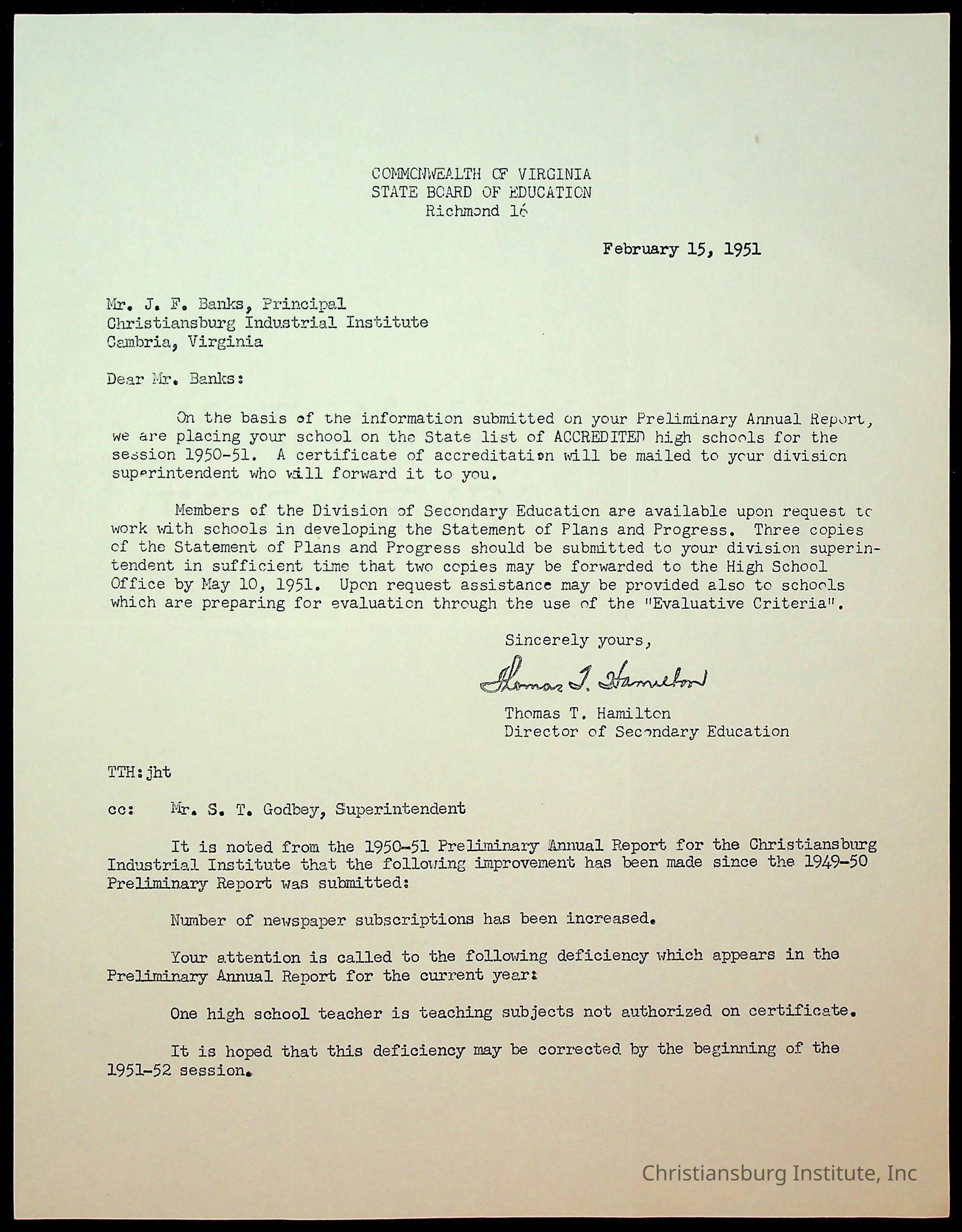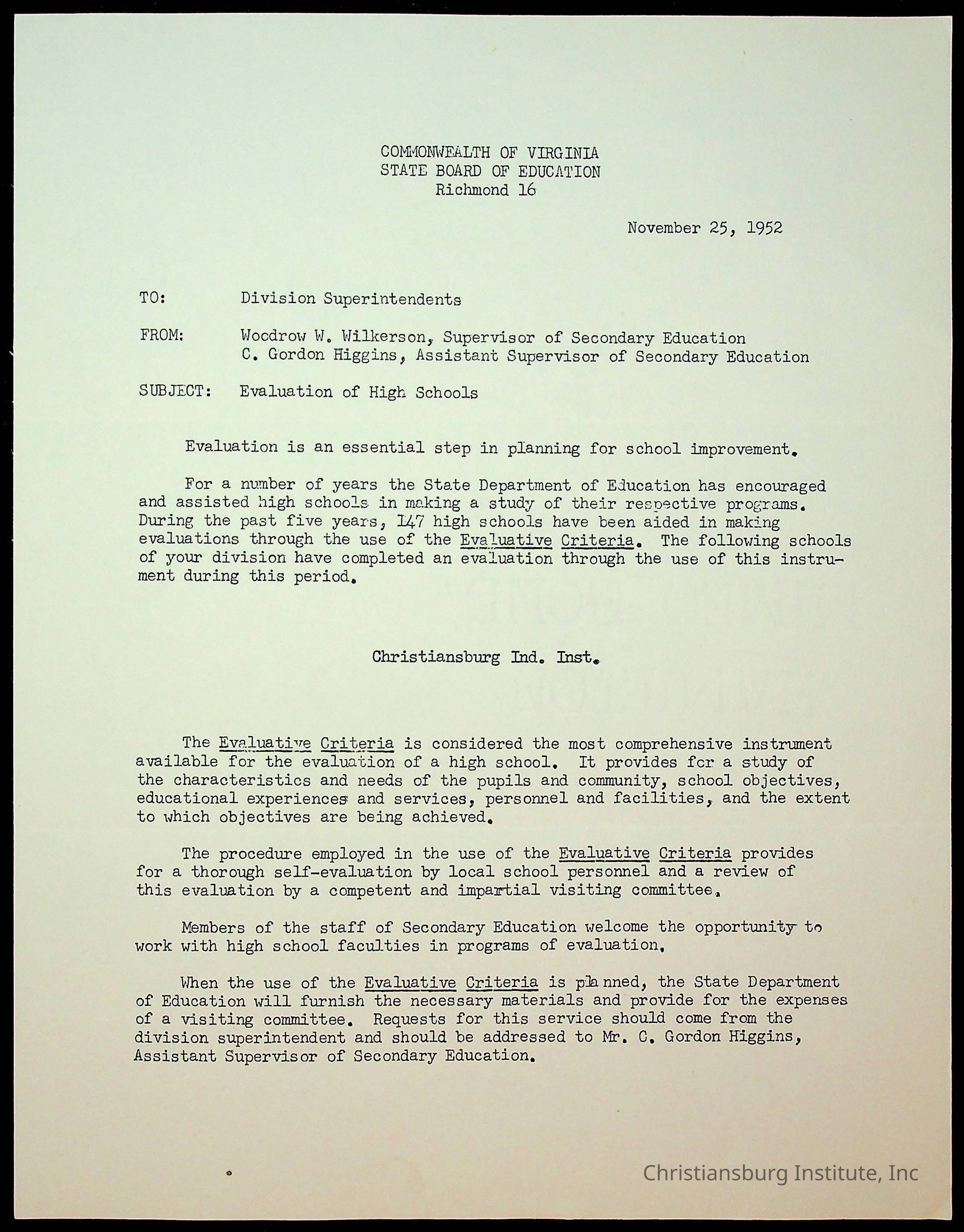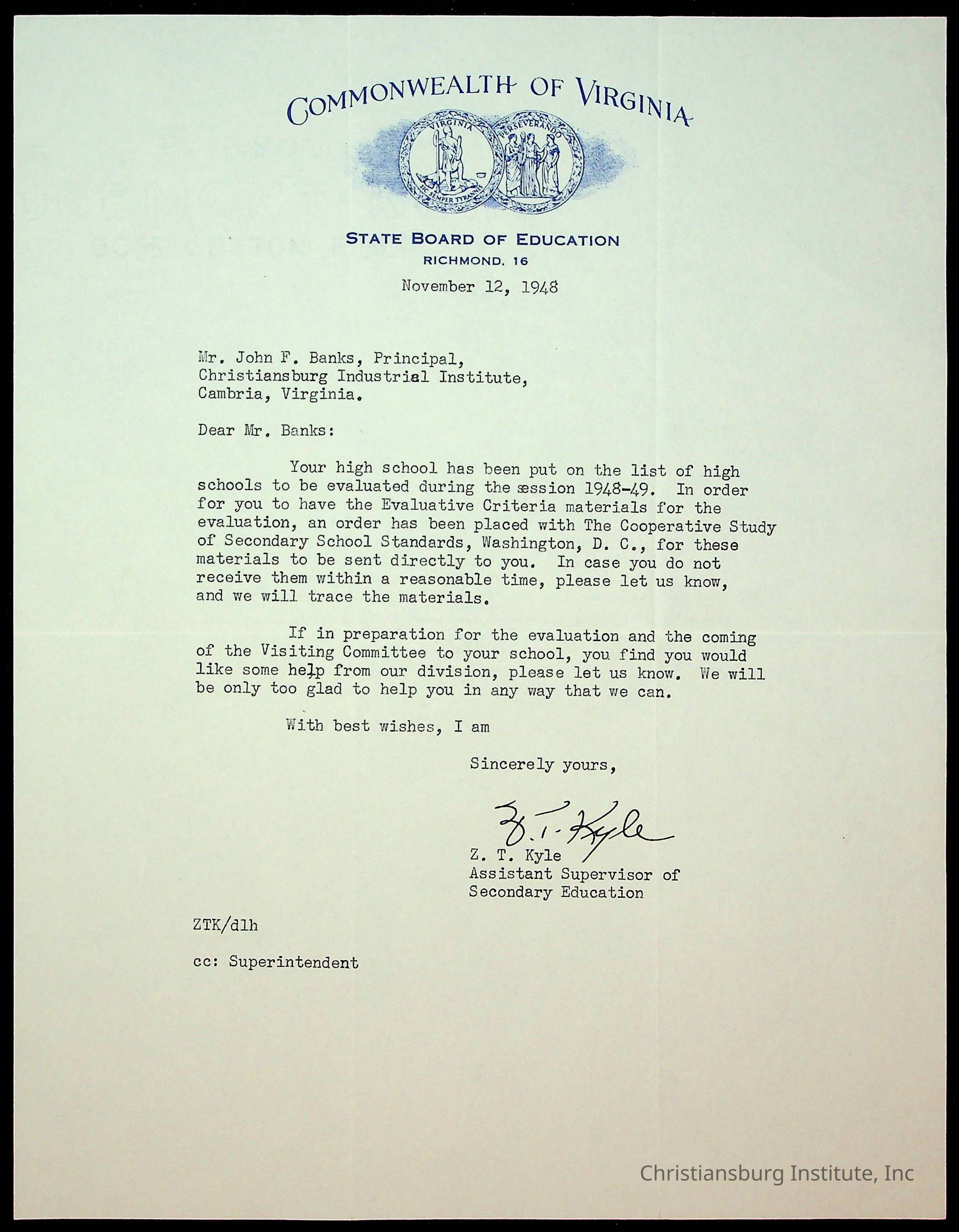 Copyright has been assigned to Christiansburg Institute Museum & Archives by Montgomery County Public Schools. For permission to publish materials created by the donor, contact CIMA@christiansburginstitute.com. Materials not created by Christiansburg Industrial Institute may still be under copyright.