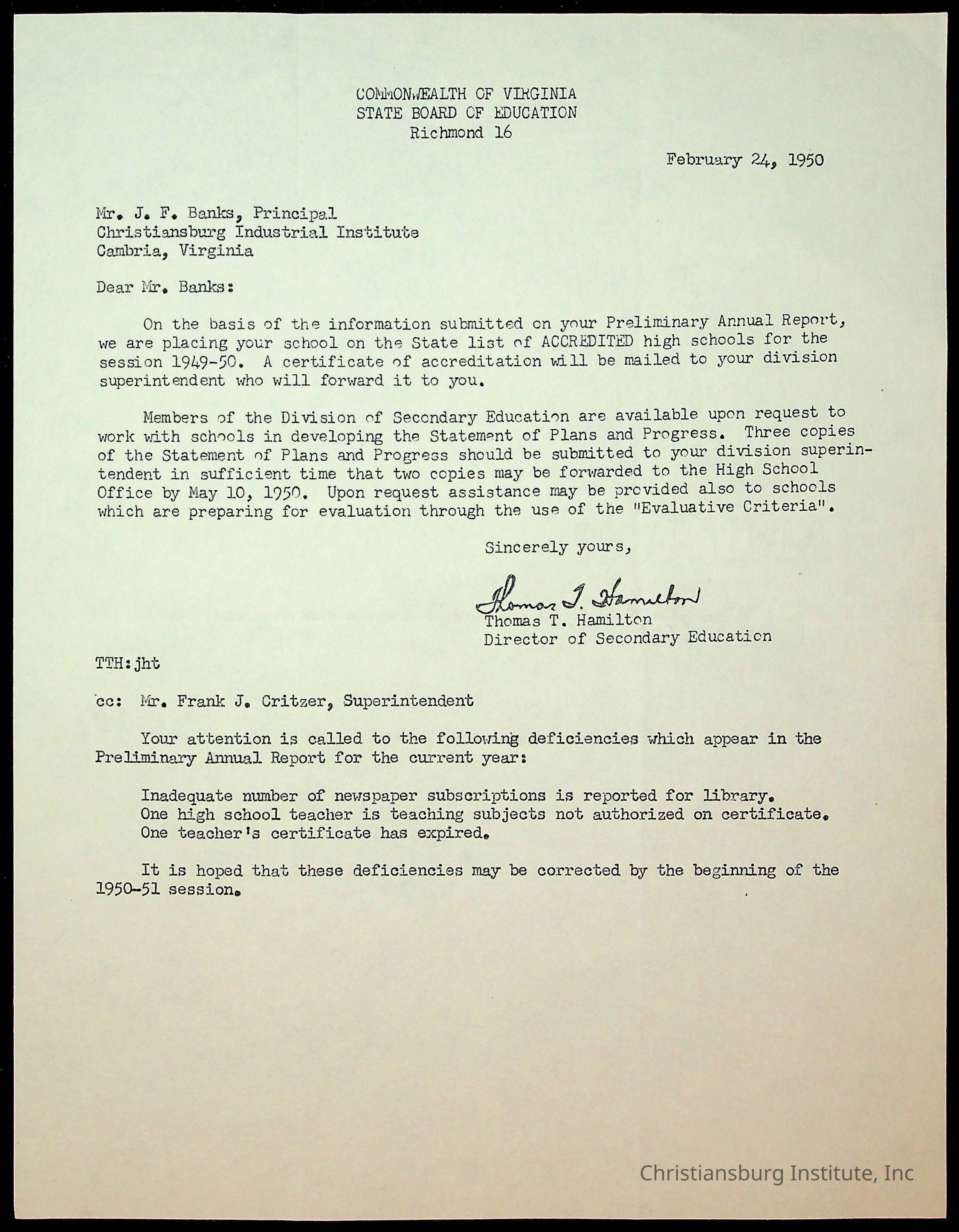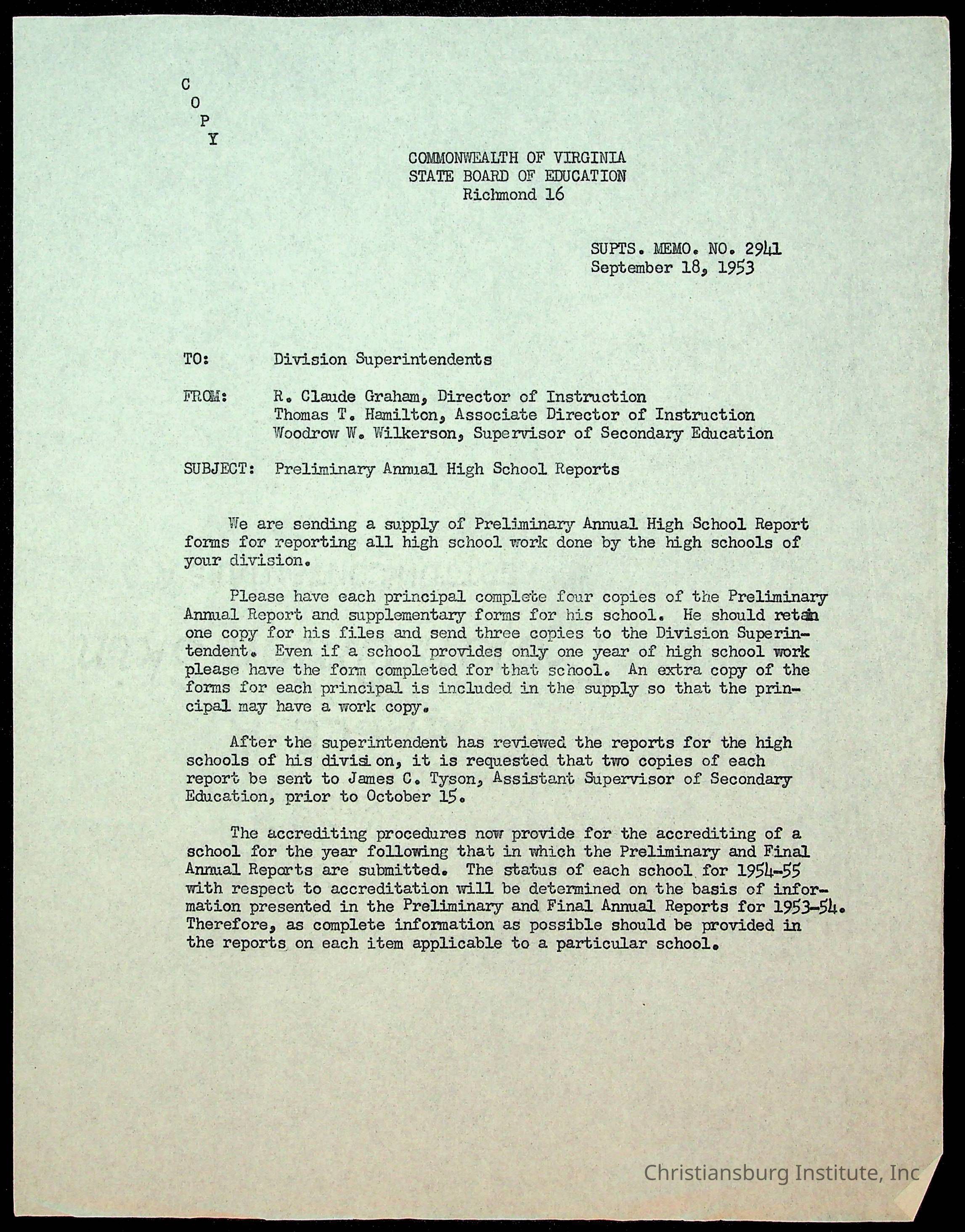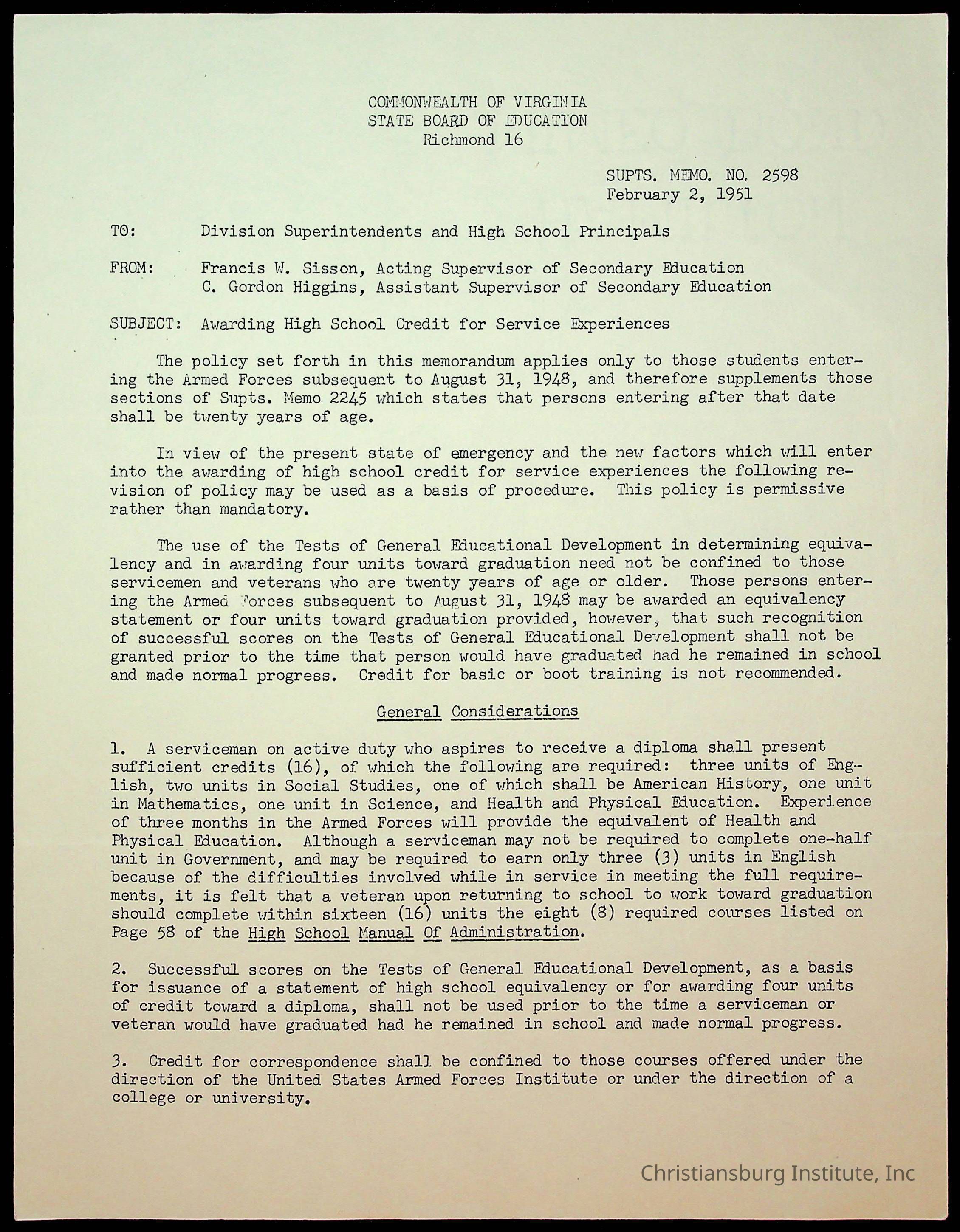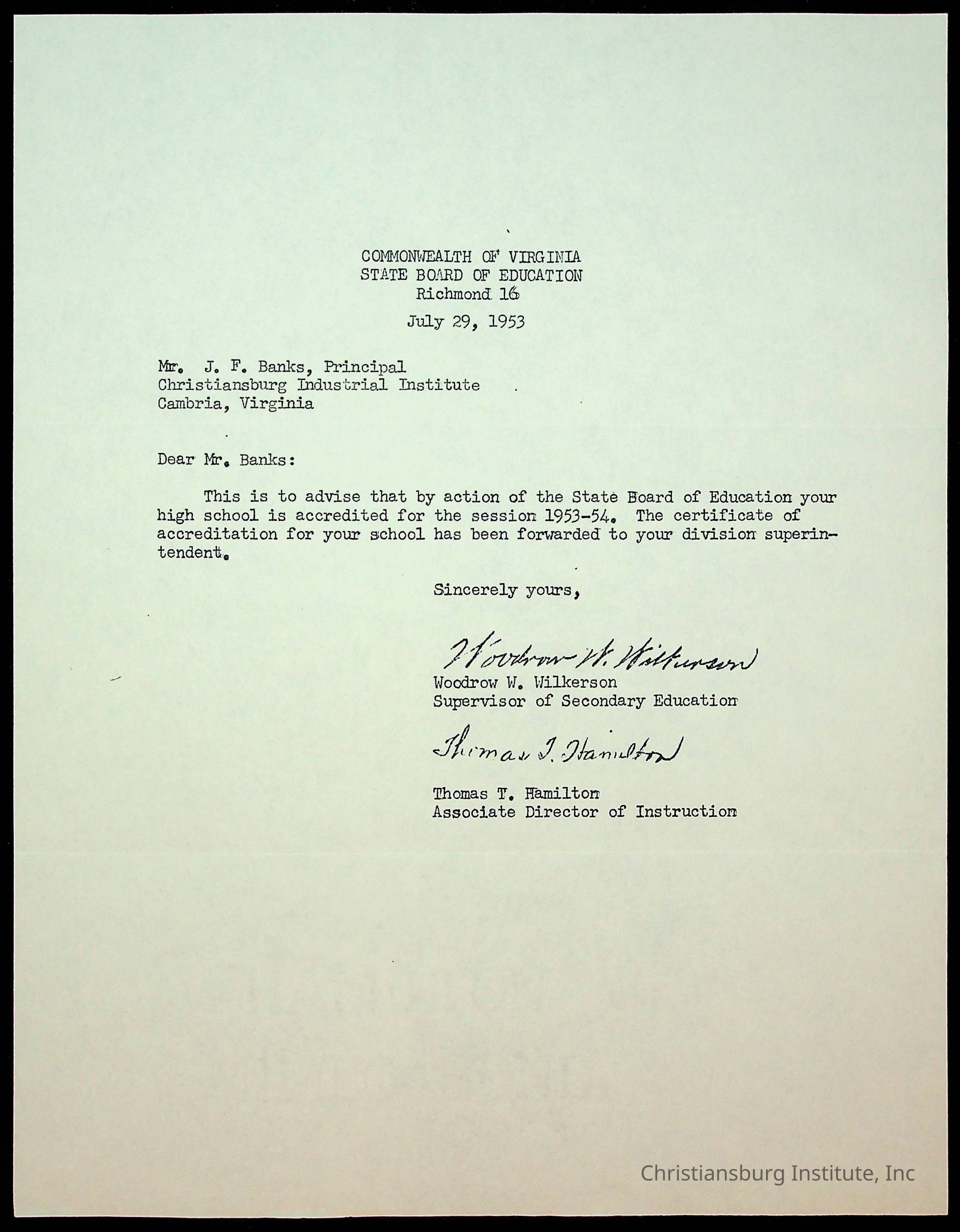 Copyright has been assigned to Christiansburg Institute Museum & Archives by Montgomery County Public Schools. For permission to publish materials created by the donor, contact CIMA@christiansburginstitute.com. Materials not created by Christiansburg Industrial Institute may still be under copyright.