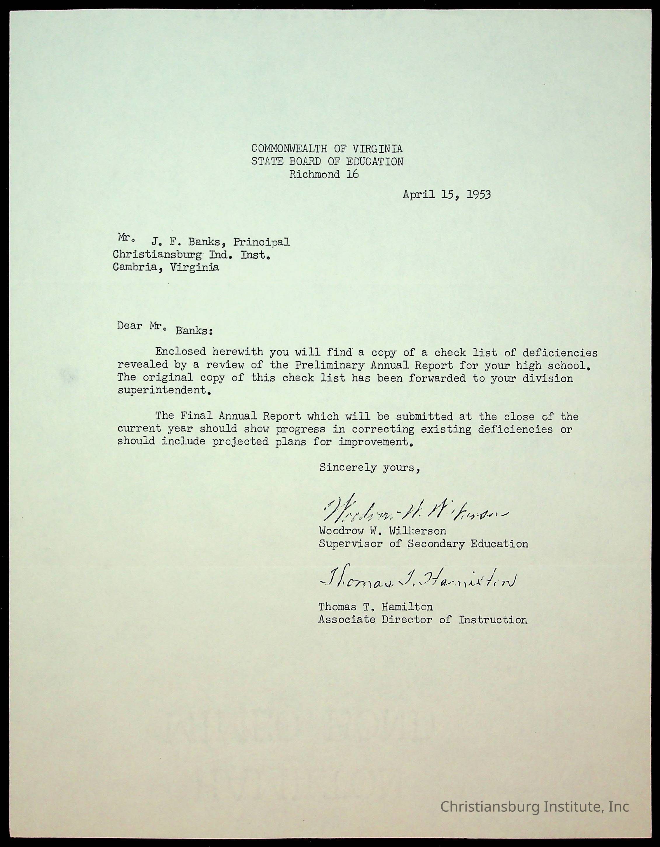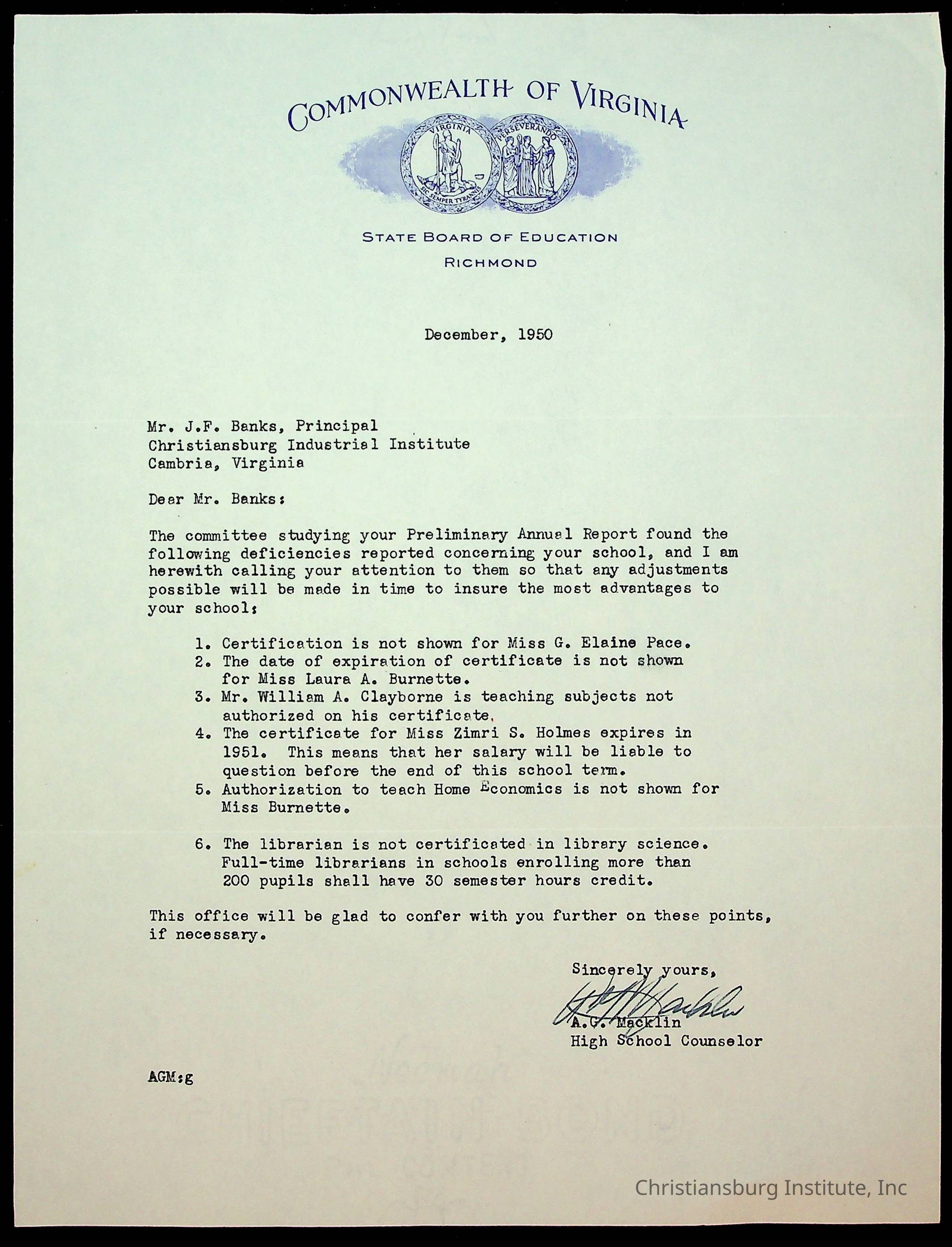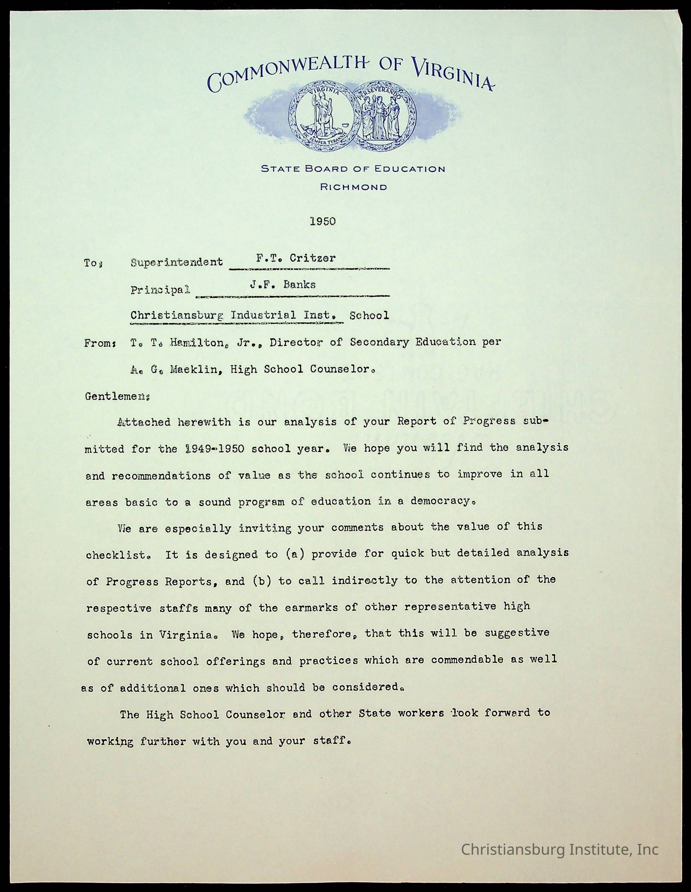 Christiansburg Institute, King, E. L., Montgomery County School Board, Banks, John F., Commonwealth of Virginia