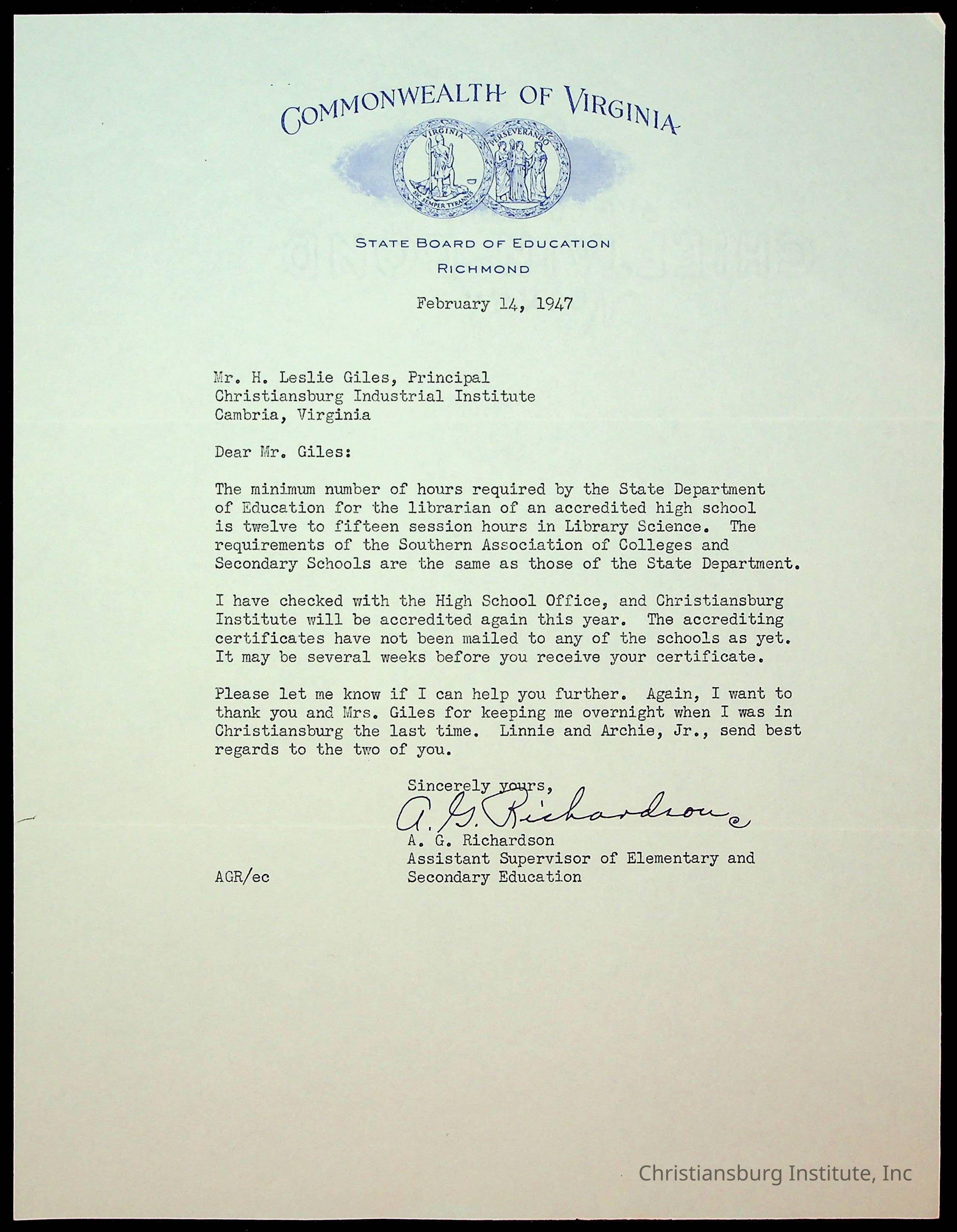 Christiansburg Institute Administrative Records Collection