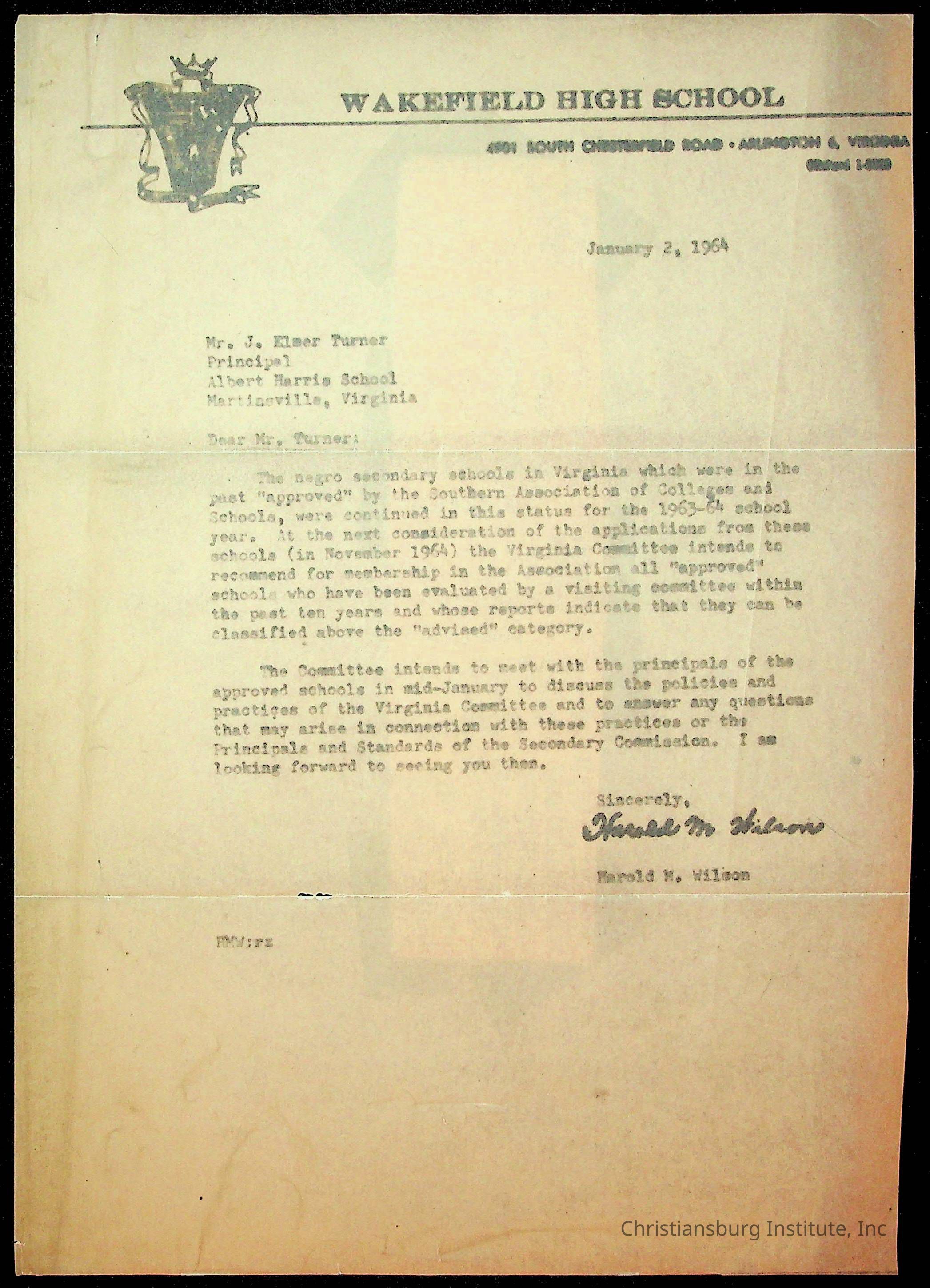The second folder of an archive of administrative correspondence with people associated with Christiansburg Institute, dated 1959-1965.