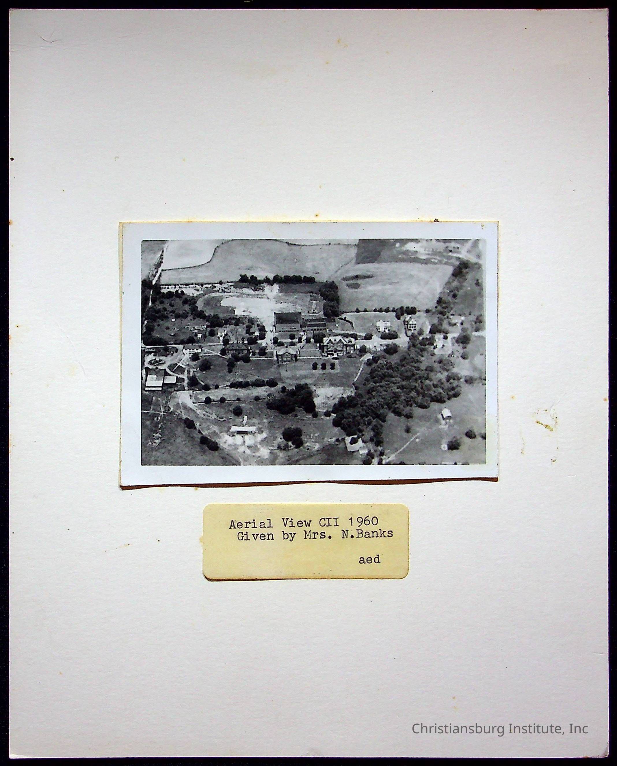 A photograph of an aerial view of Christiansburg Institute dated 1960.Collection