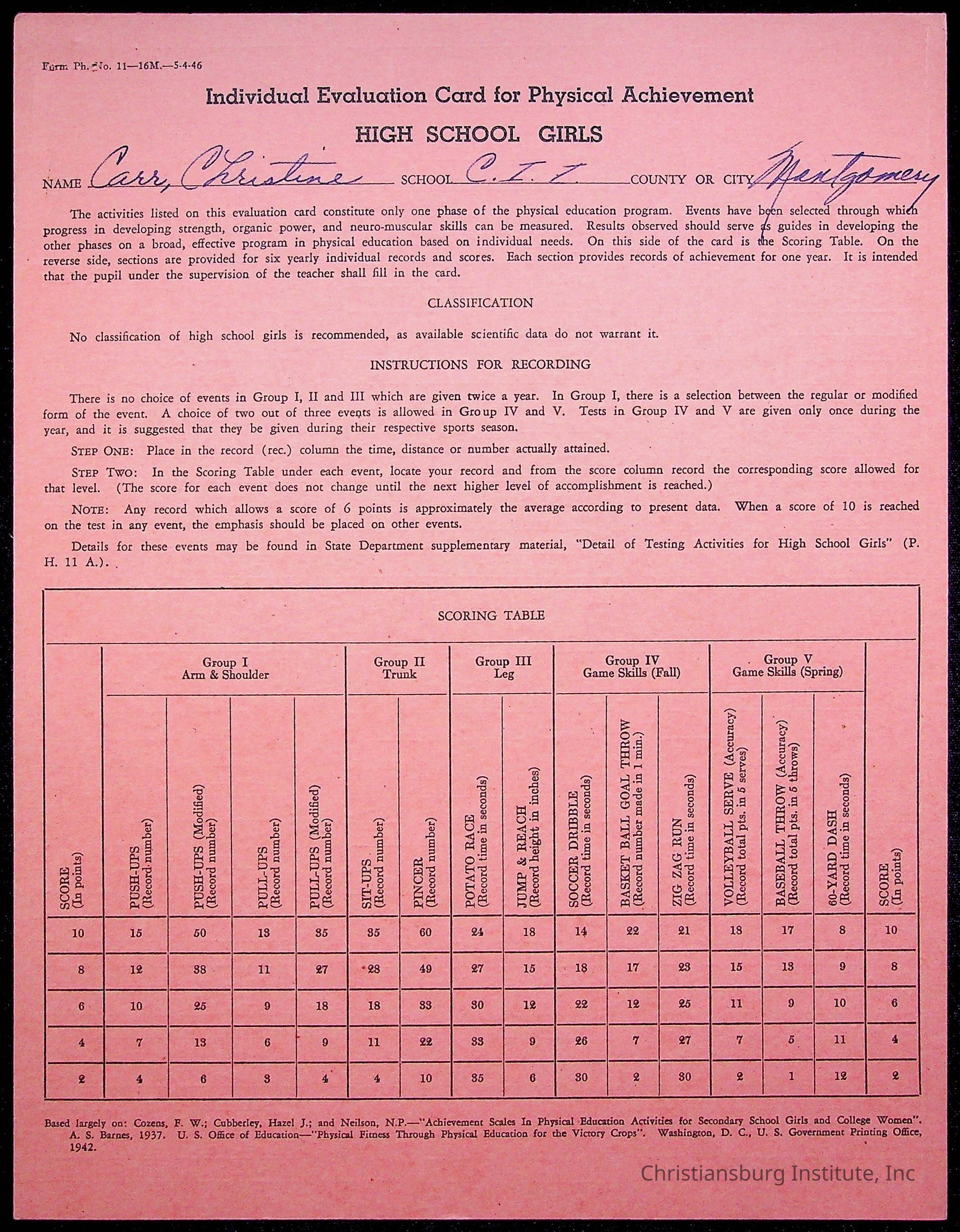 Copyright has been assigned to Christiansburg Institute Museum & Archives by Montgomery County Public Schools. For permission to publish materials created by the donor, contact CIMA@christiansburginstitute.com. Materials not created by Christiansburg Industrial Institute may still be under copyright.